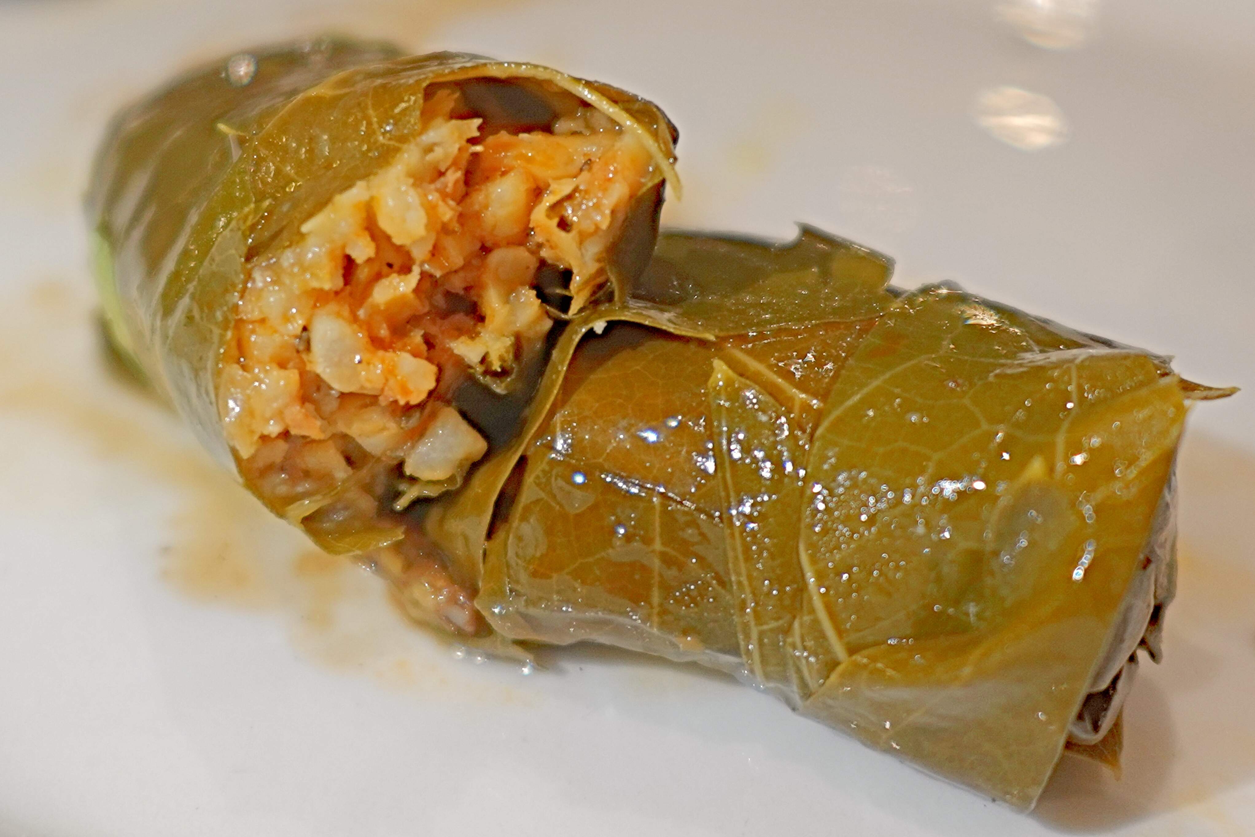 Warak Enab - grape leaf rolls with rice-lemon juice stuffing, called dolma in Turkish cooking, and dolmades in Greek.