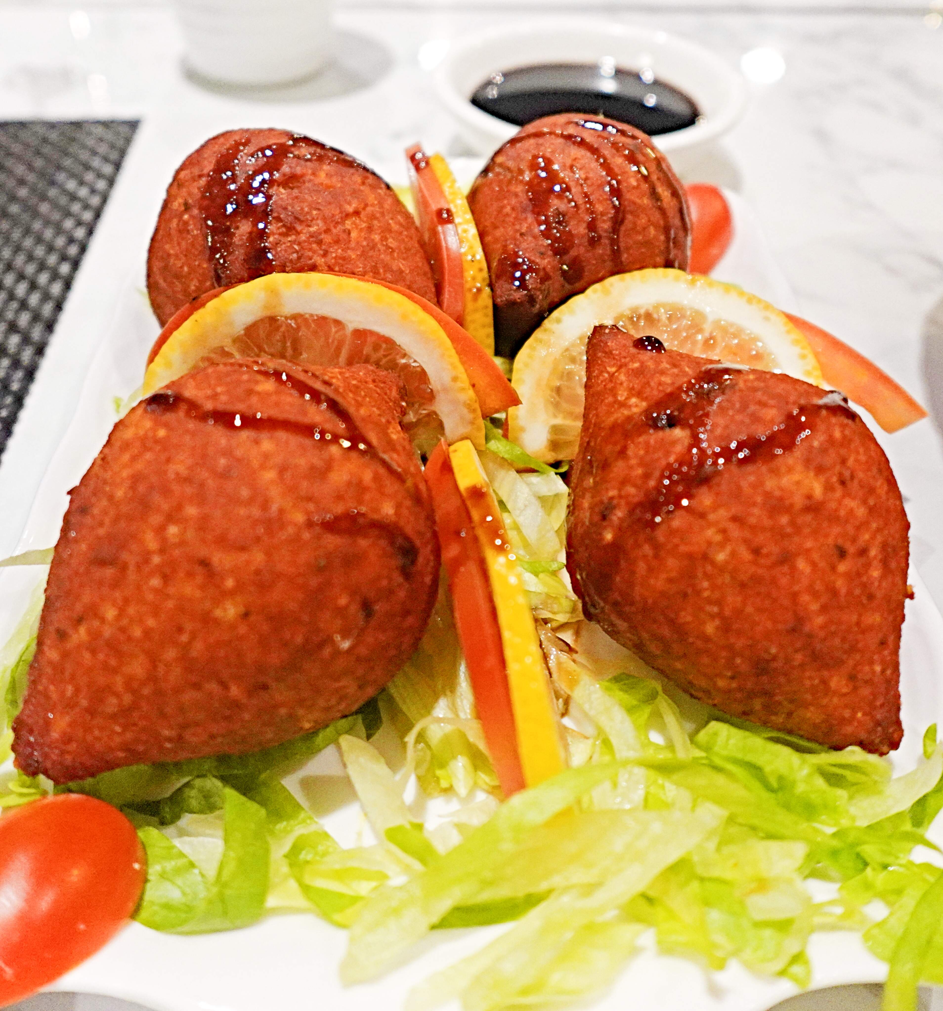 Kibbeh - the national dish of Lebanon and Syria, and renowned throughout the Levant, Middle East, and Mediterranean. It consists of dumplings made from fine bulgur wheat, onions, and seasoned with cinnamon, allspice, and cumin. The mixture is commonly stuffed with minced finely-ground lamb-meat, shaped into croquettes, and deep-fried.