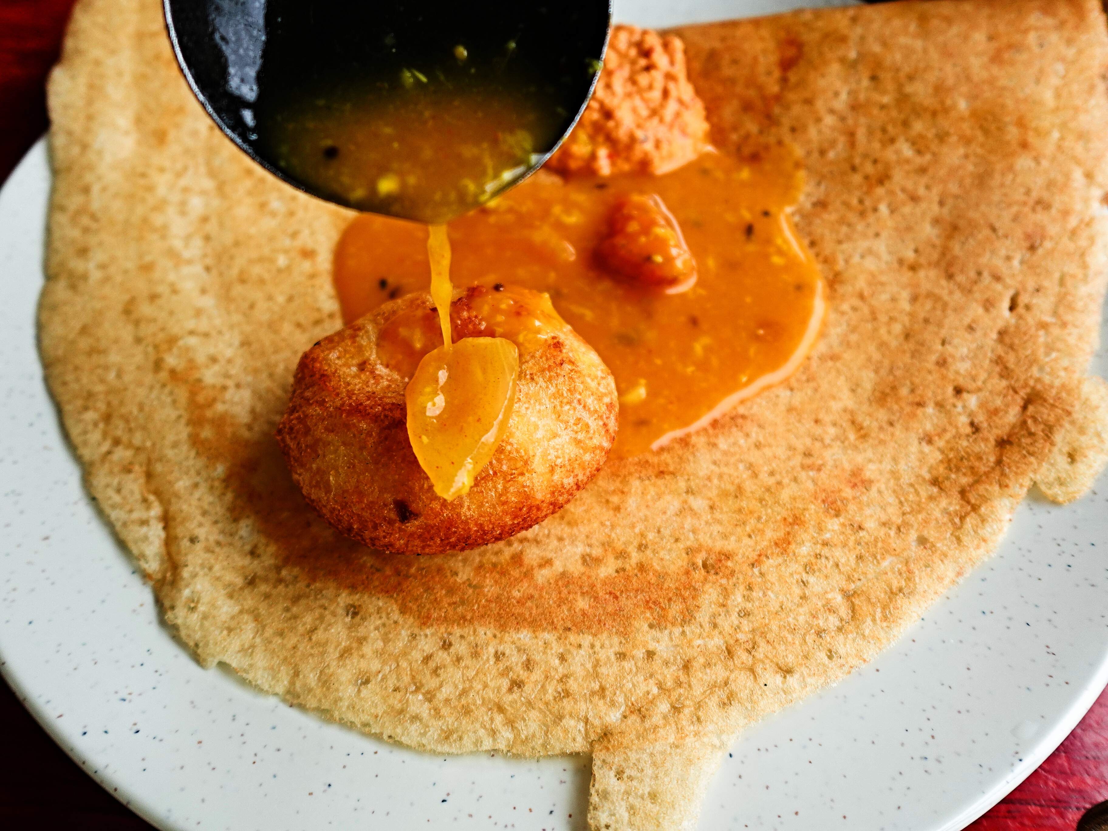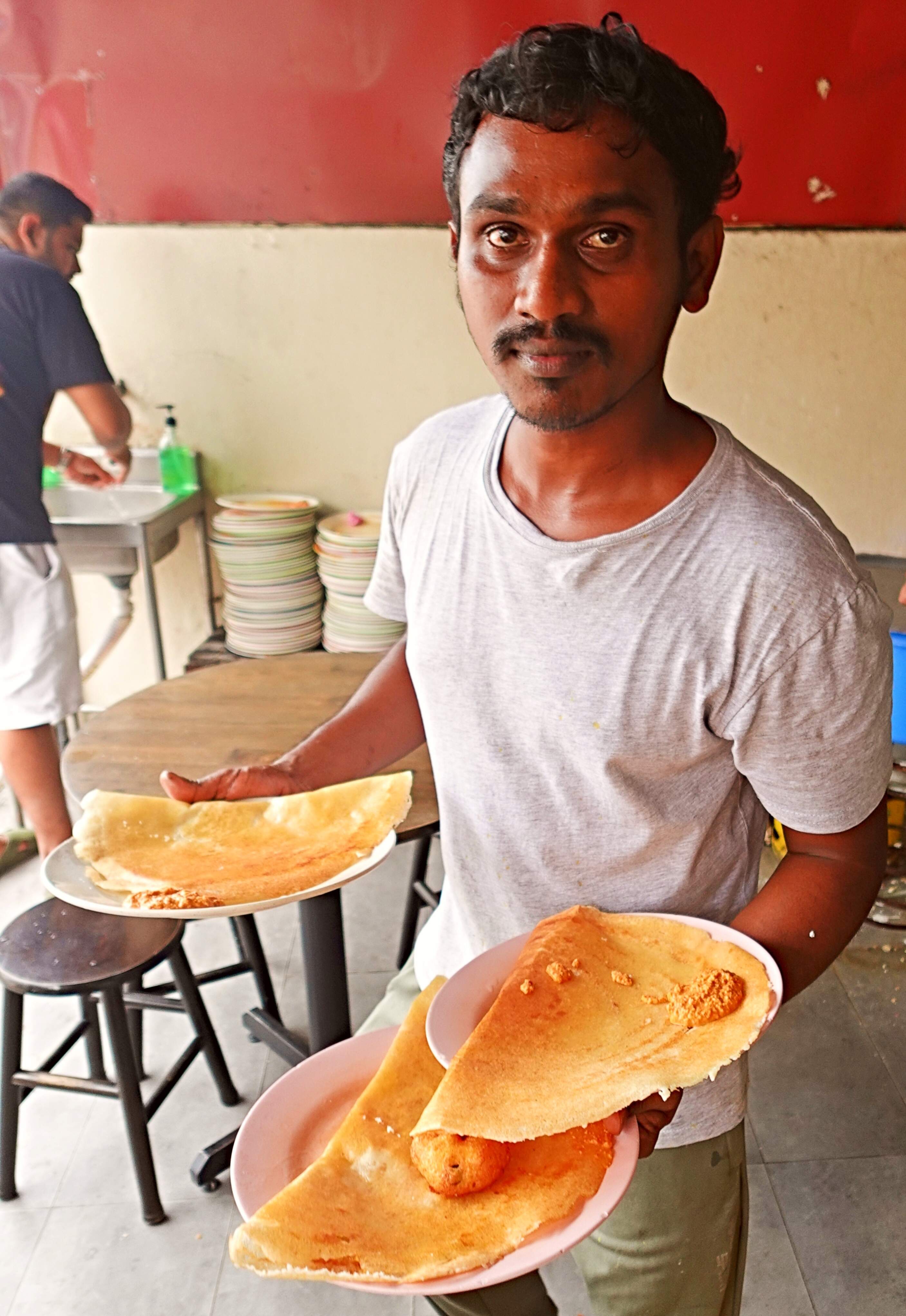 Michael and Devi Cafeβs claim-to-fame is their spongey-soft, moist thosai, served with a dollop red chili-tinged kara-chutney, and lightly spiced sambhar gravy. Also, donβt muss their incredibly light, crisp, golden-fried π·π’π₯π’πͺ as well. Best ever.