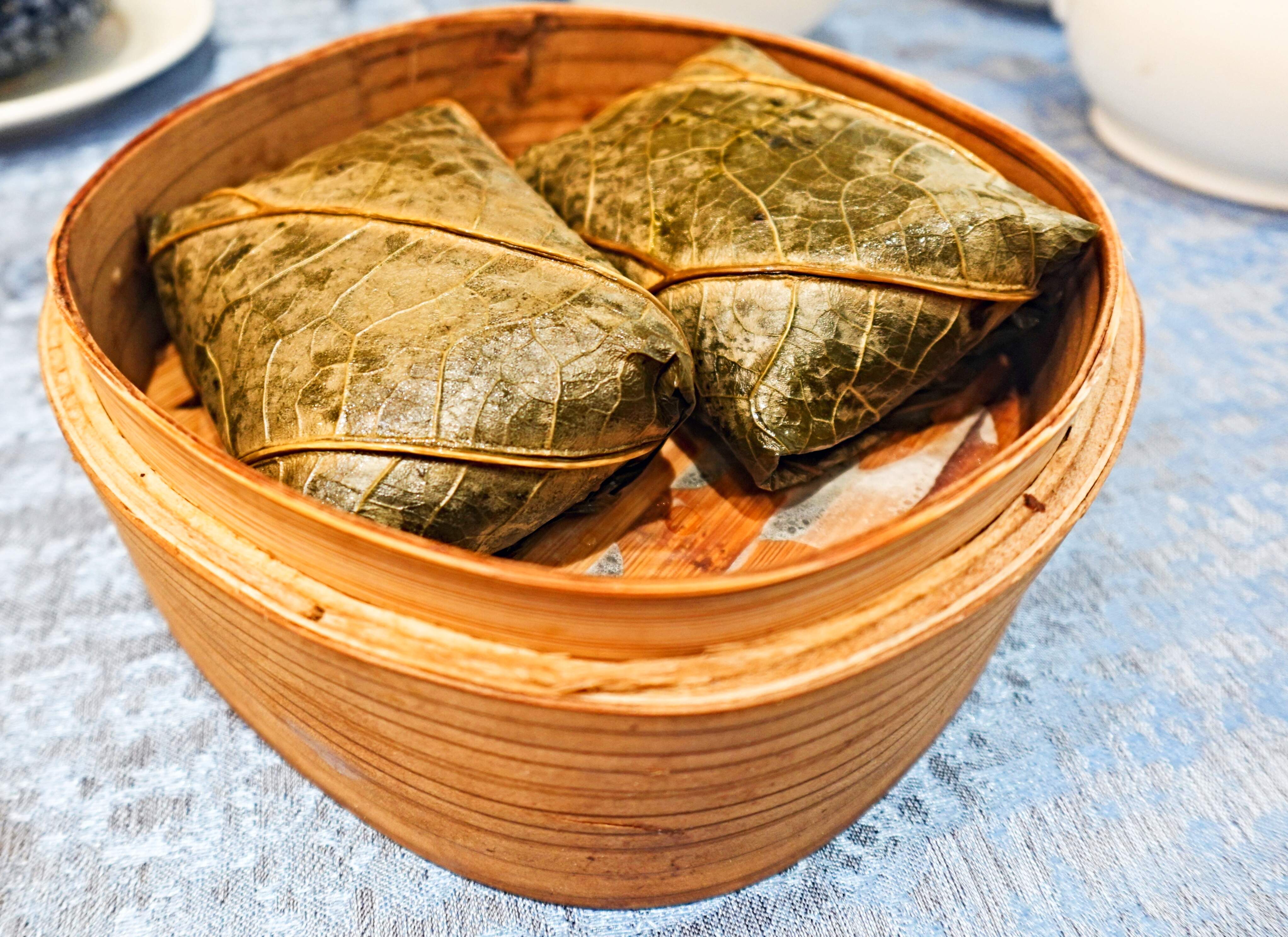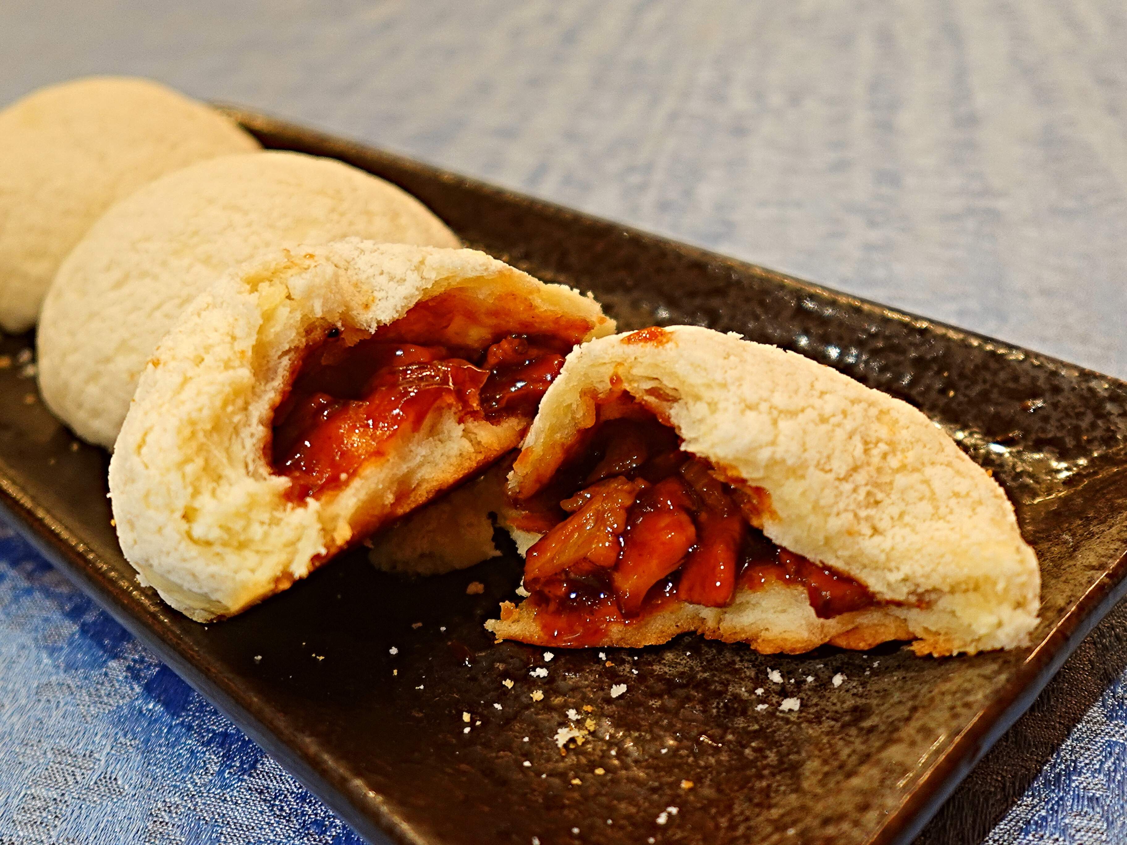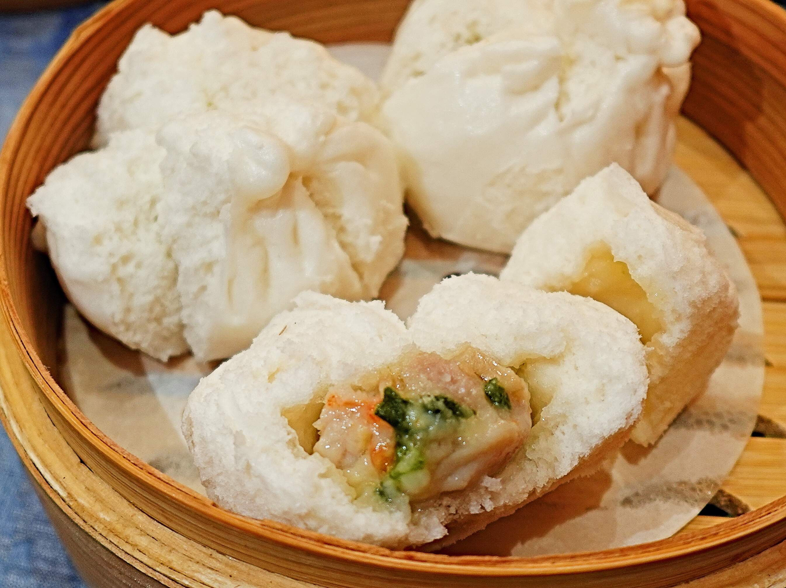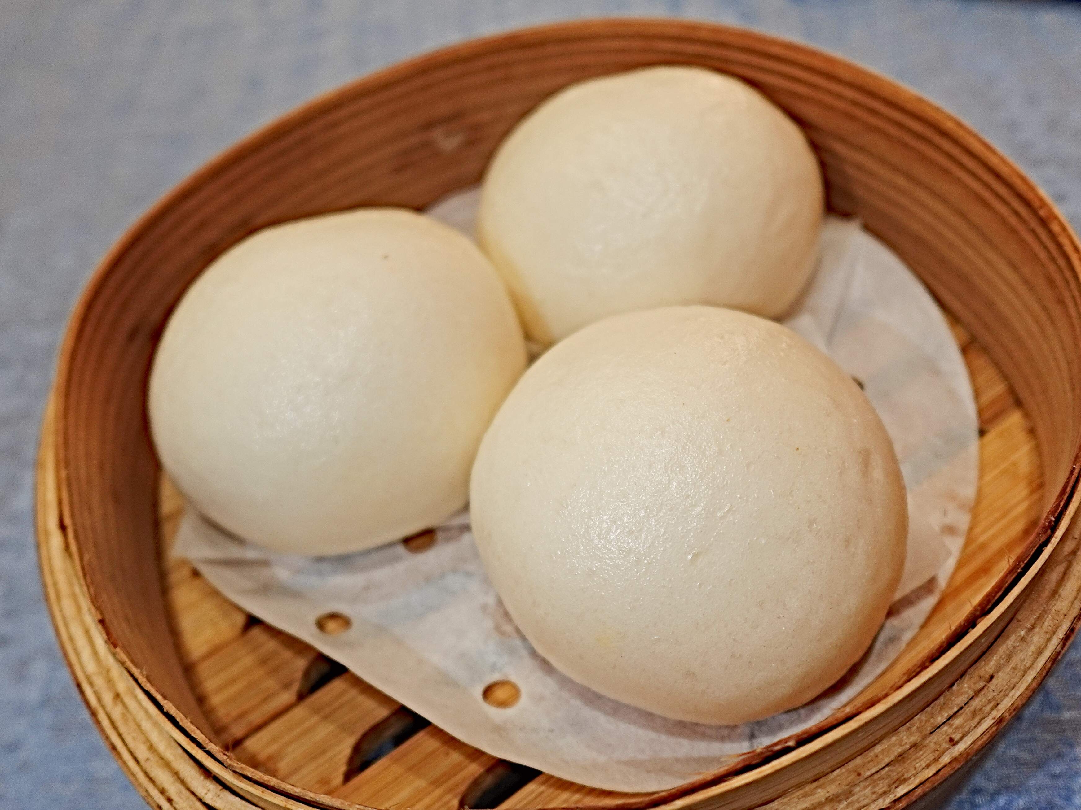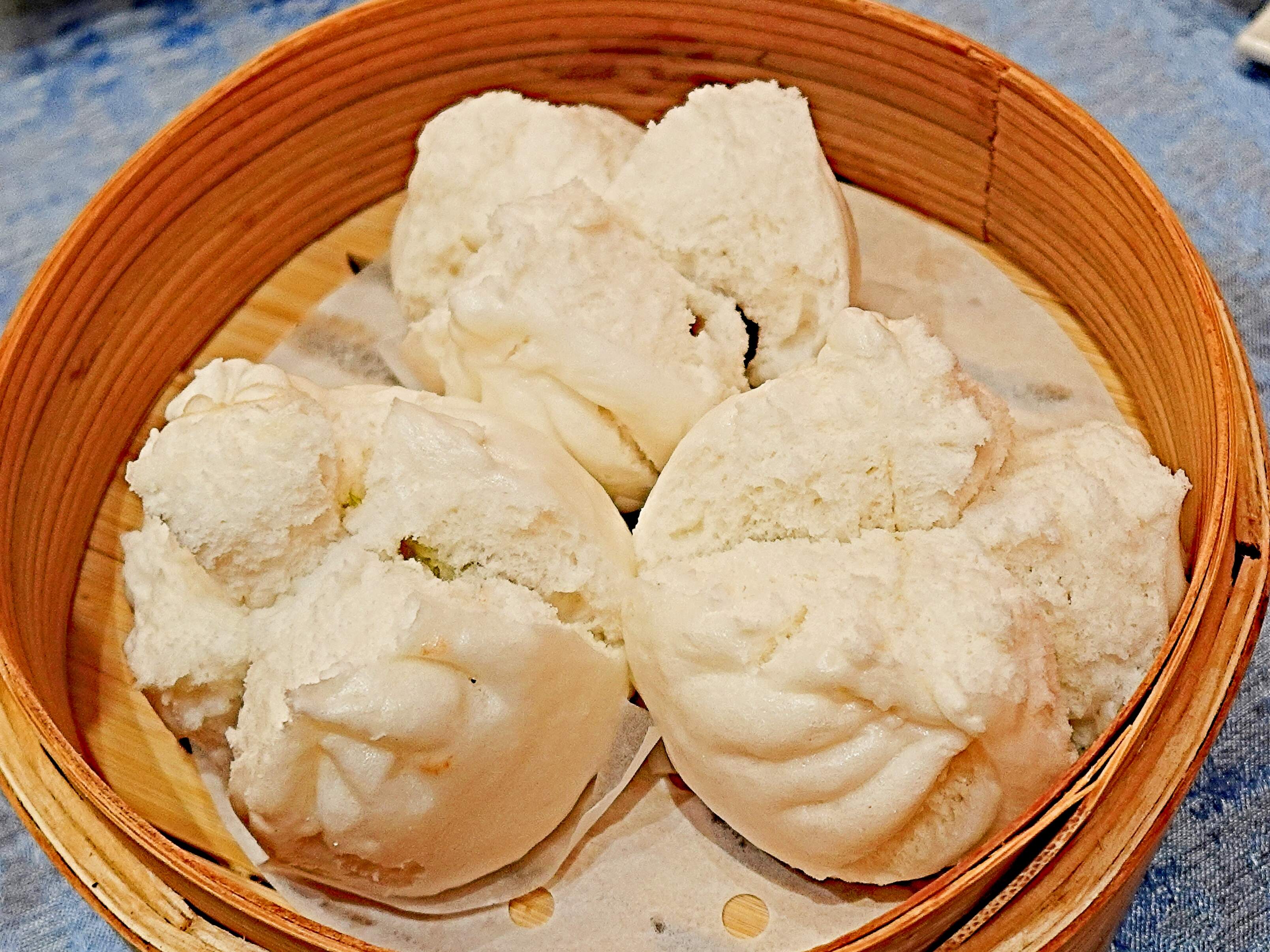 ) - steamed bao with ginger-flavored, minced chicken-meat filling.