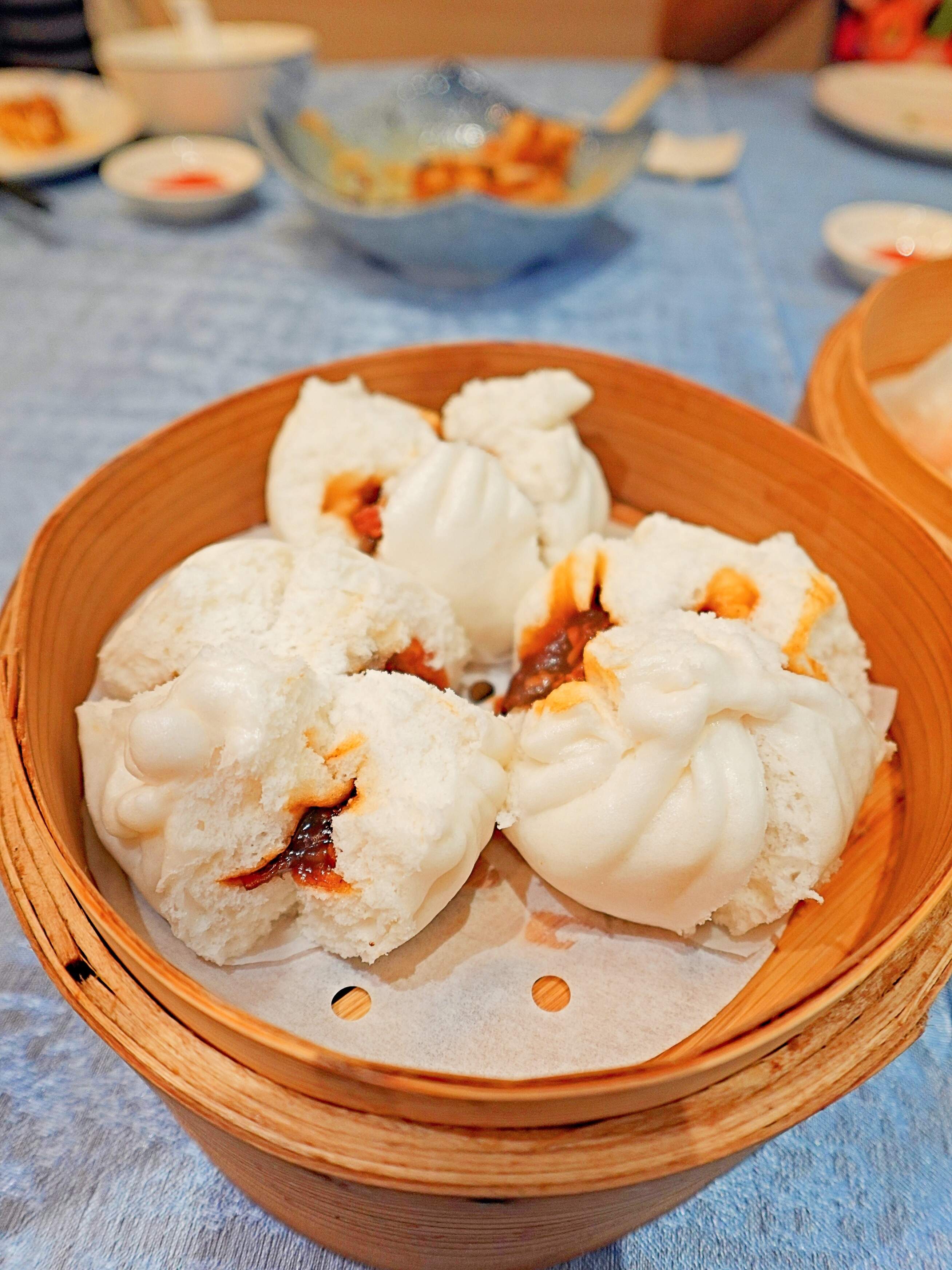 ) - Cantonese-style steamed buns with caramelised BBQ pork filling.