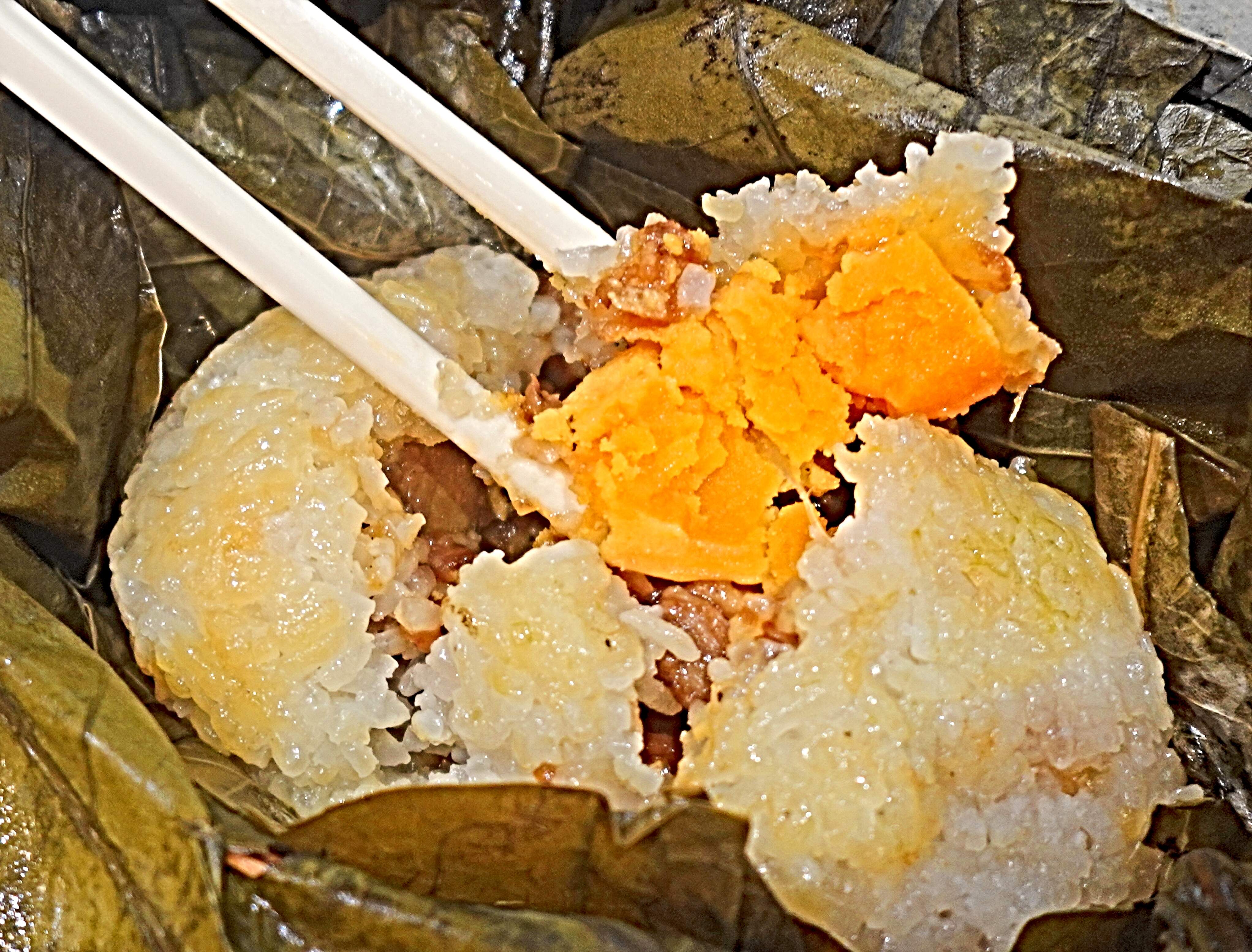 ๐๐ฐ ๐ฎ๐ข๐ช ๐จ๐ข๐ช ( ็ณฏ็ฑณ้) - glutinous rice filled with chicken, Chinese mushrooms, Chinese sausage, and salted egg-yolk.