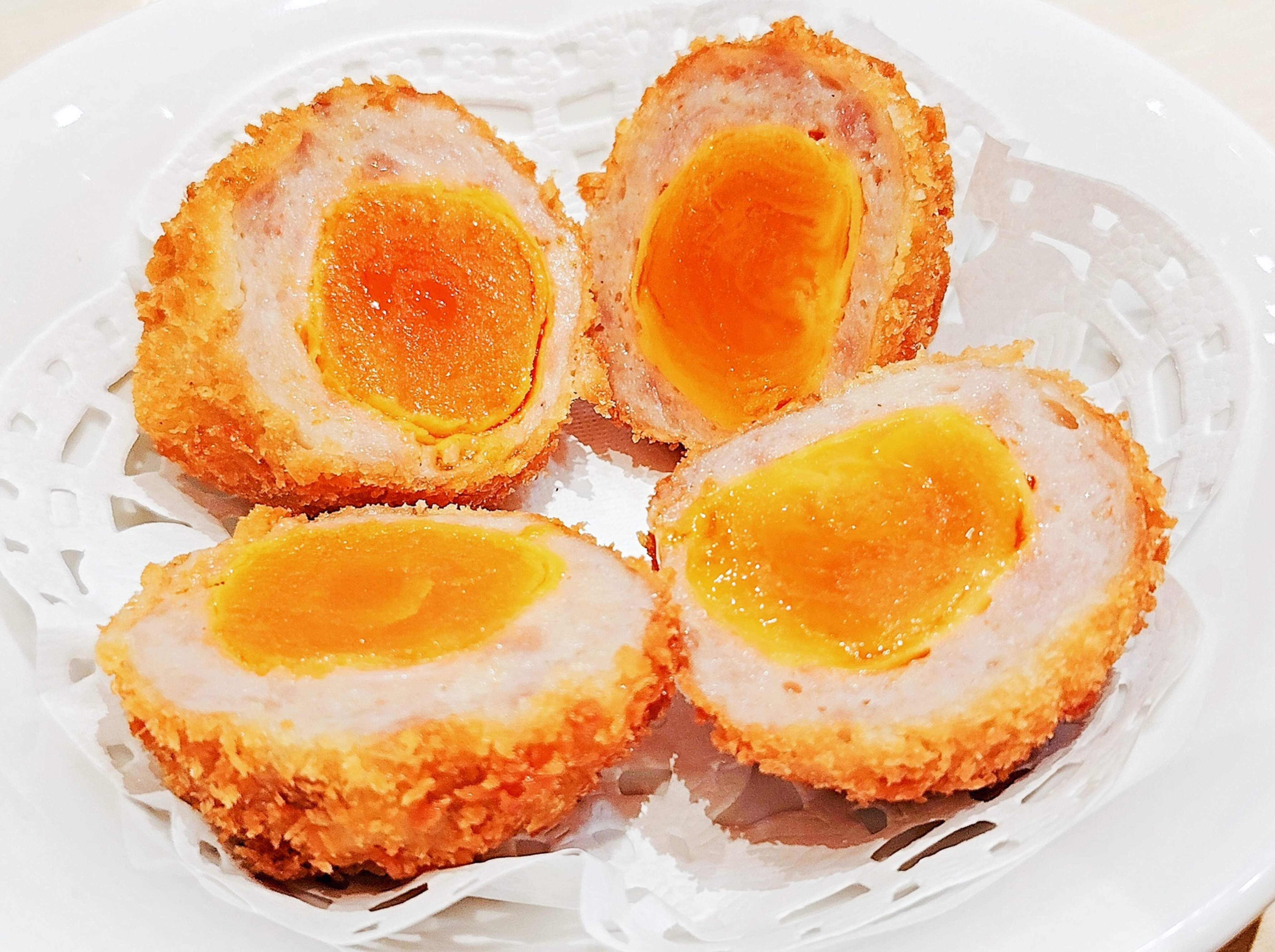 Golden-fried glutinous rice flour dumplings with meat centres.