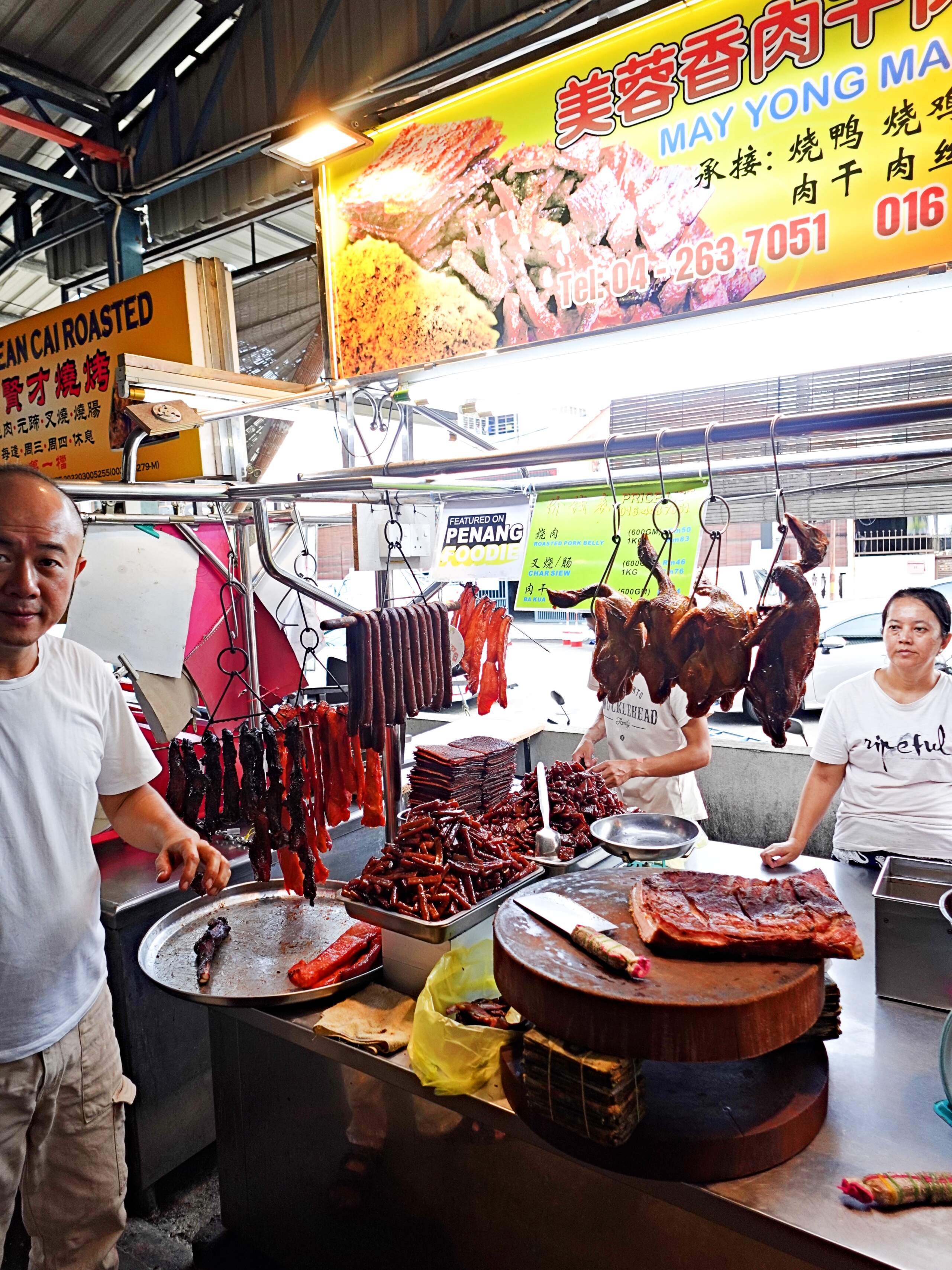 We then visited the row of Cantonese-style roast pork (siew yoke) and caramelised BBQ pork (char-siu) stalls at the market end of the food court building. 6 competing stalls, side-by-side.