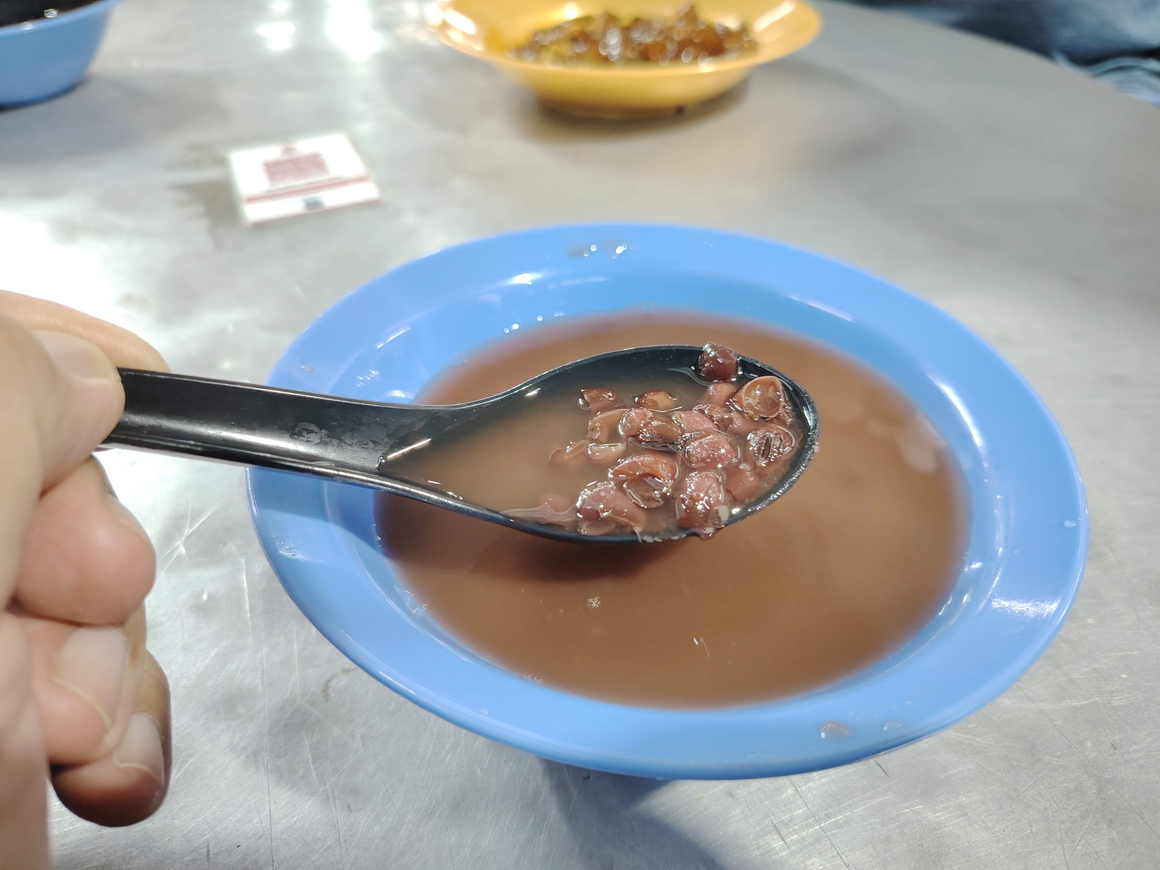 Ladling out the red bean soup (𝘢𝘯𝘨 𝘵𝘢𝘶 𝘵𝘩’𝘯𝘨) at the Cecil Street Market Fried Sago & Tong Sui.