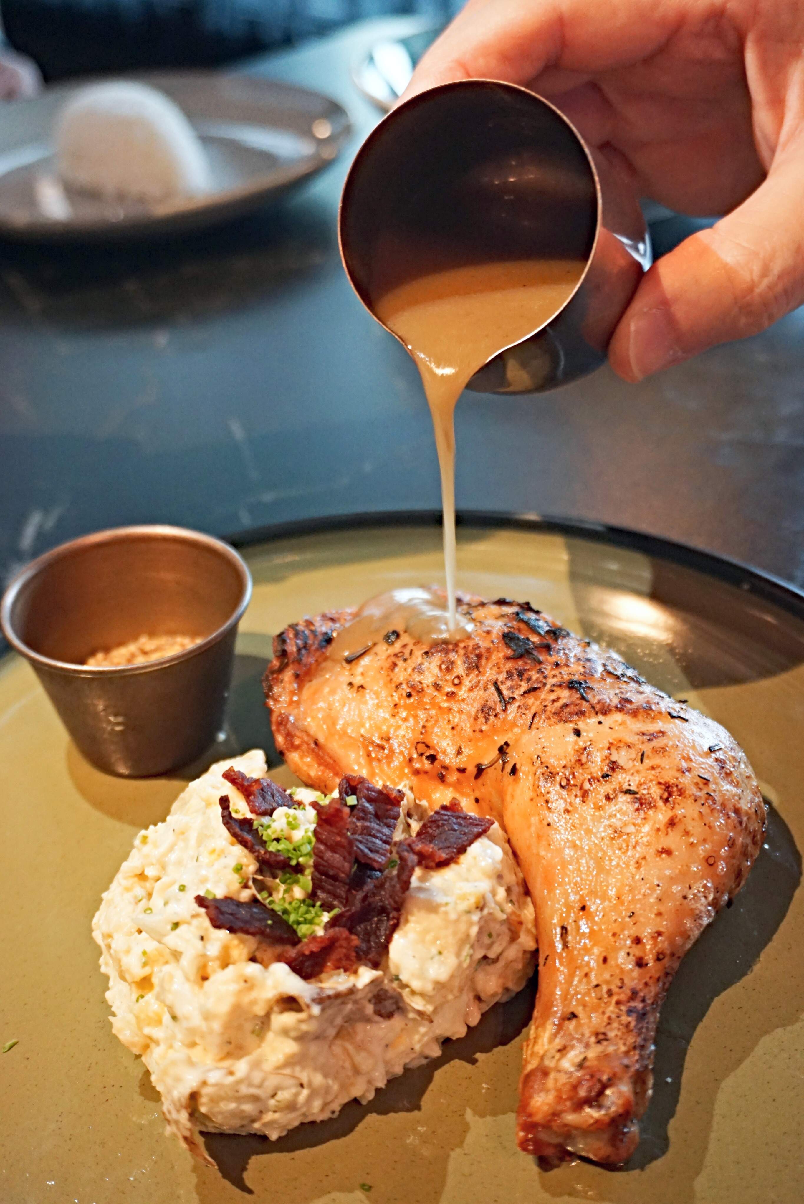 ๐๐ฐ๐ข๐ด๐ต๐ฆ๐ฅ ๐ธ๐ฉ๐ฐ๐ญ๐ฆ ๐ค๐ฉ๐ช๐ค๐ฌ๐ฆ๐ฏ ๐ญ๐ฆ๐จ - potato salad, grain mustard and cep butter. Very good, but the serving size was way too small, even for the Asian appetites here.