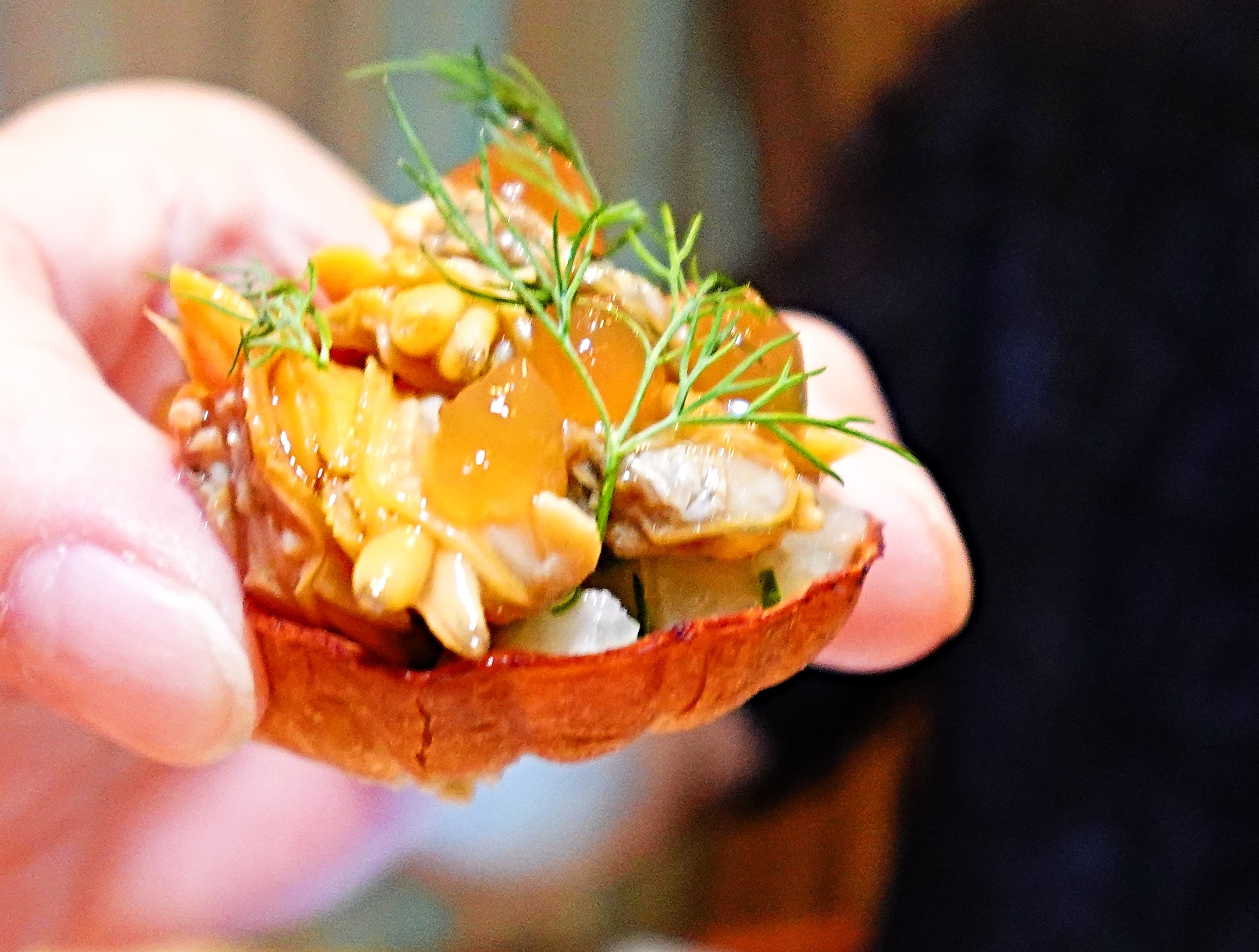 - Clam, Jicama, Burdock - lightly-stewed clam meat, grated jicama and burdock, all ensconced in a delicate pastry shell: shades of Penang kueh pie tee.