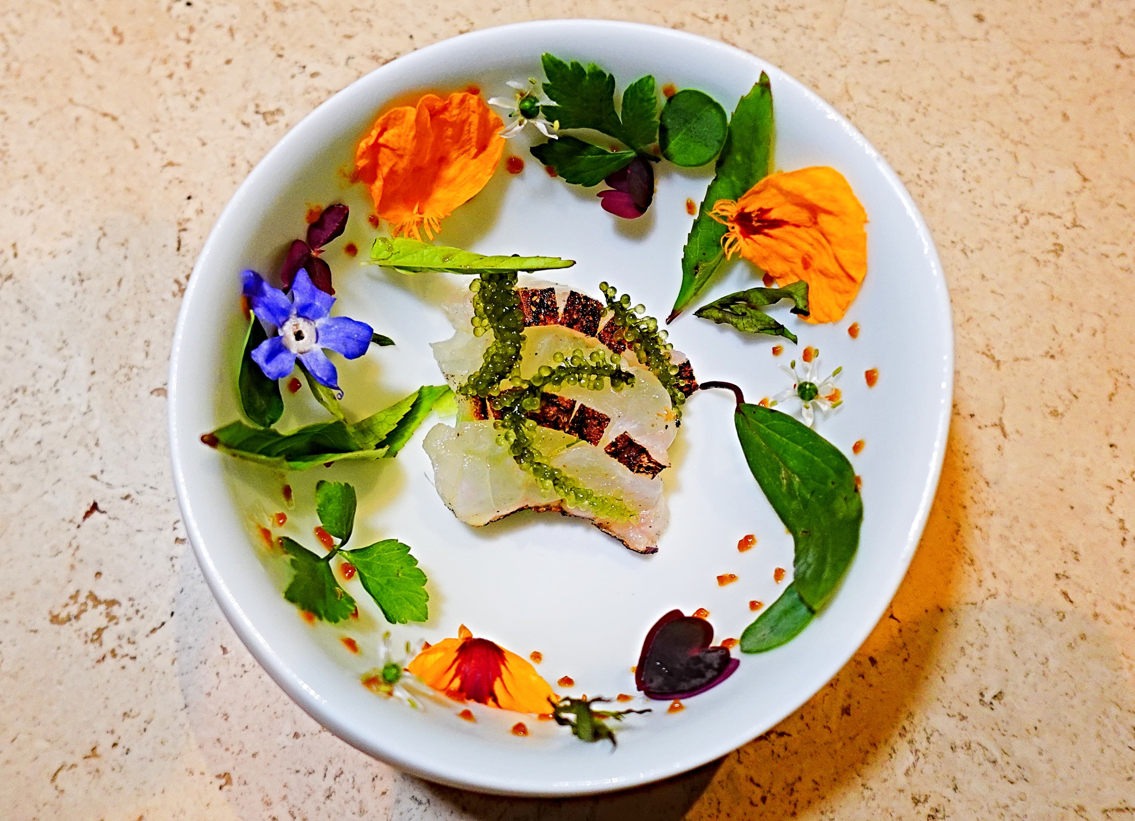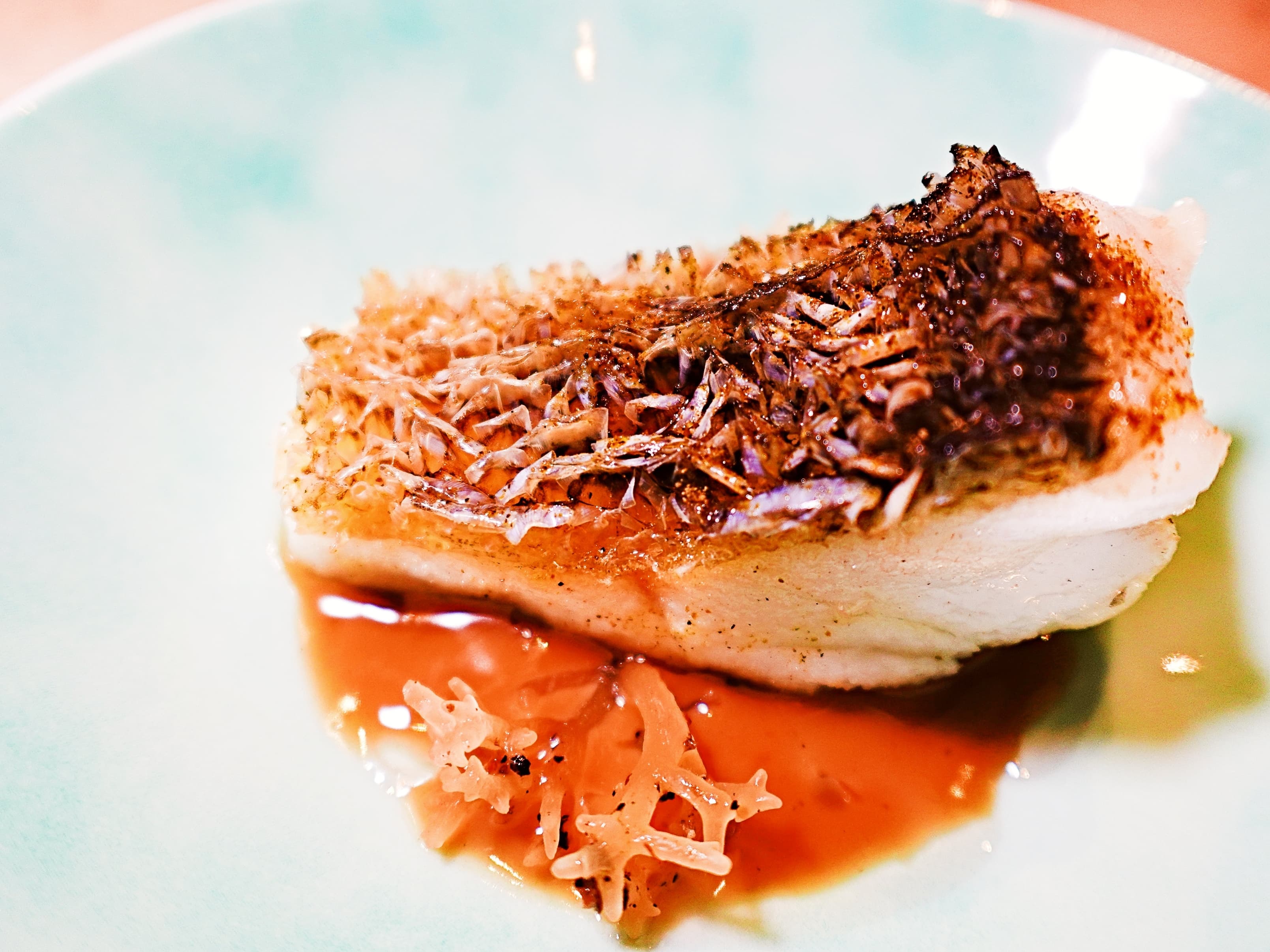 - Marbled Goby, Green Peppercorn, Hot & Sour Celtuce. Local Soon Hock, fried till scales are crisp, with marinated Eucheuma seaweed and celtuce confit.