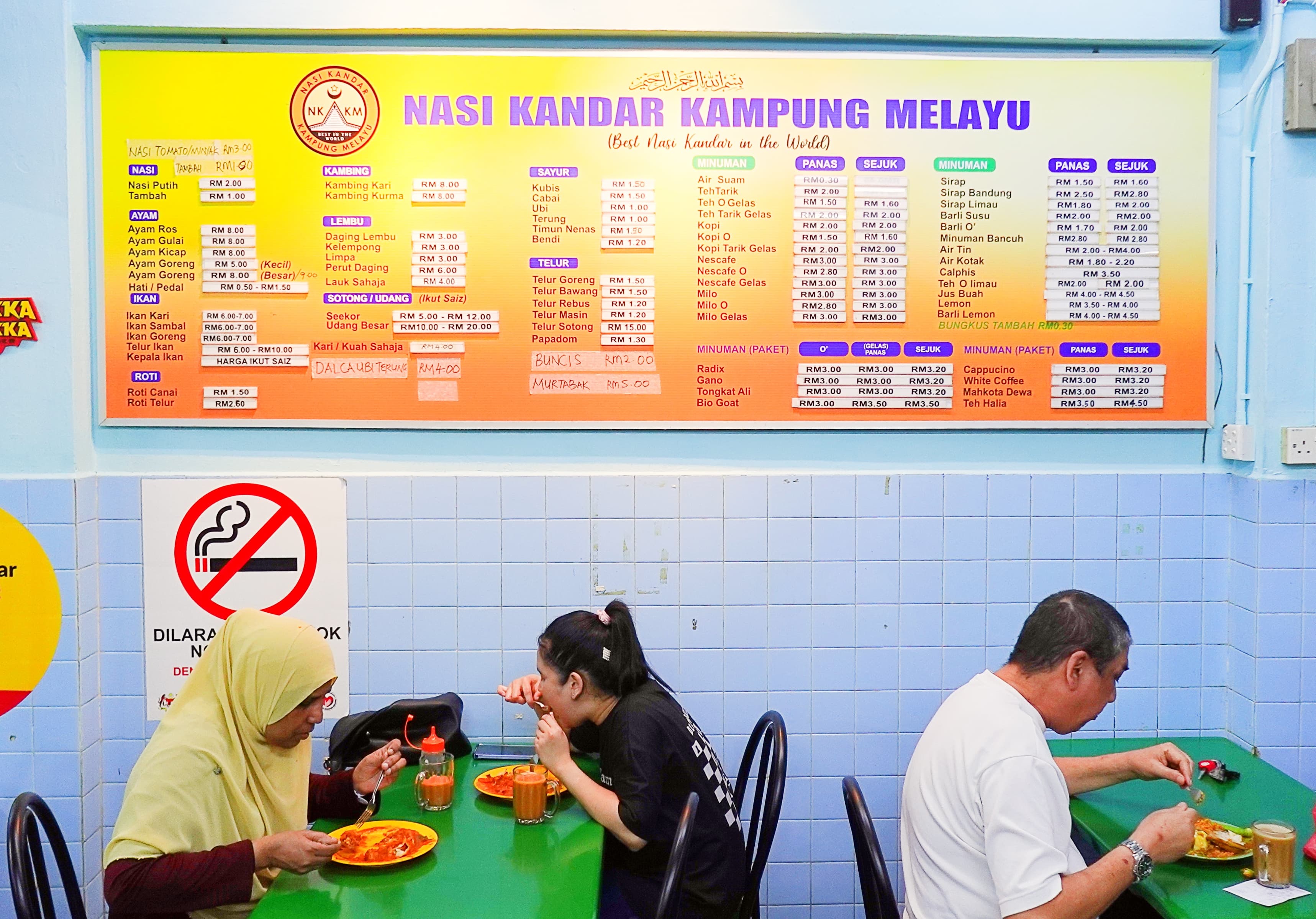 Business was brisk, as his mainly Malay clientele adore highly spiced, strongly aromatic Tamil-Muslim curries. Eventually, he bought over the whole coffeeshop and gave his eatery the now-famous moniker - Nasi Kandar Kampung Melayu. Abdul Razak’s son, Abdul Nazer, is the present owner, assisted by his wife, Zainab Mohd Eusoff.