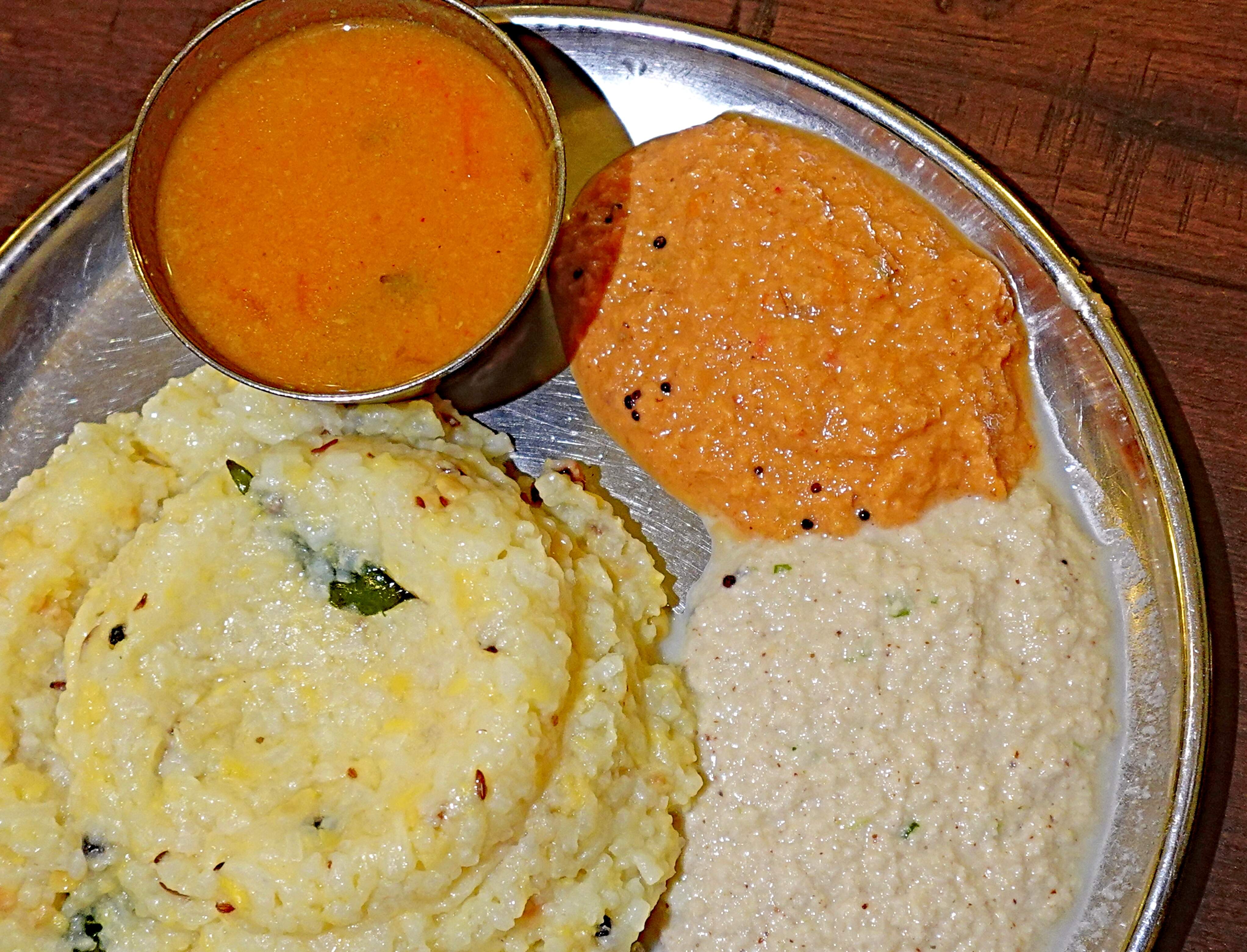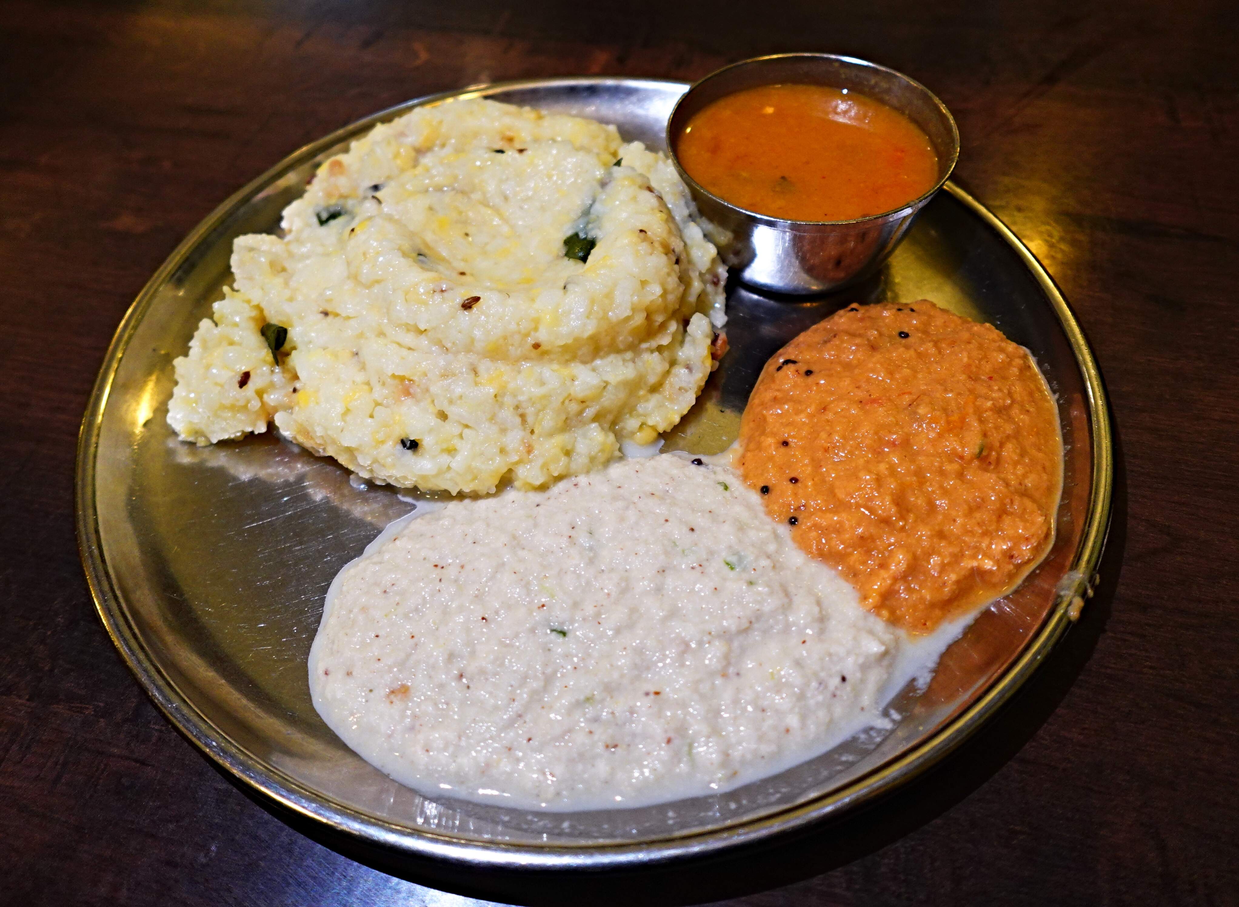 - ๐๐ฐ๐ฏ๐จ๐ข๐ญ - utterly addictive spiced, mashed rice. Itโs gingery, savory, intoxicatingly flavorsome. The accompanying coconut chutneys and sambhar merely provide delectable variances in the flavors of this innocuous-looking, polenta-like mound of deliciousness.