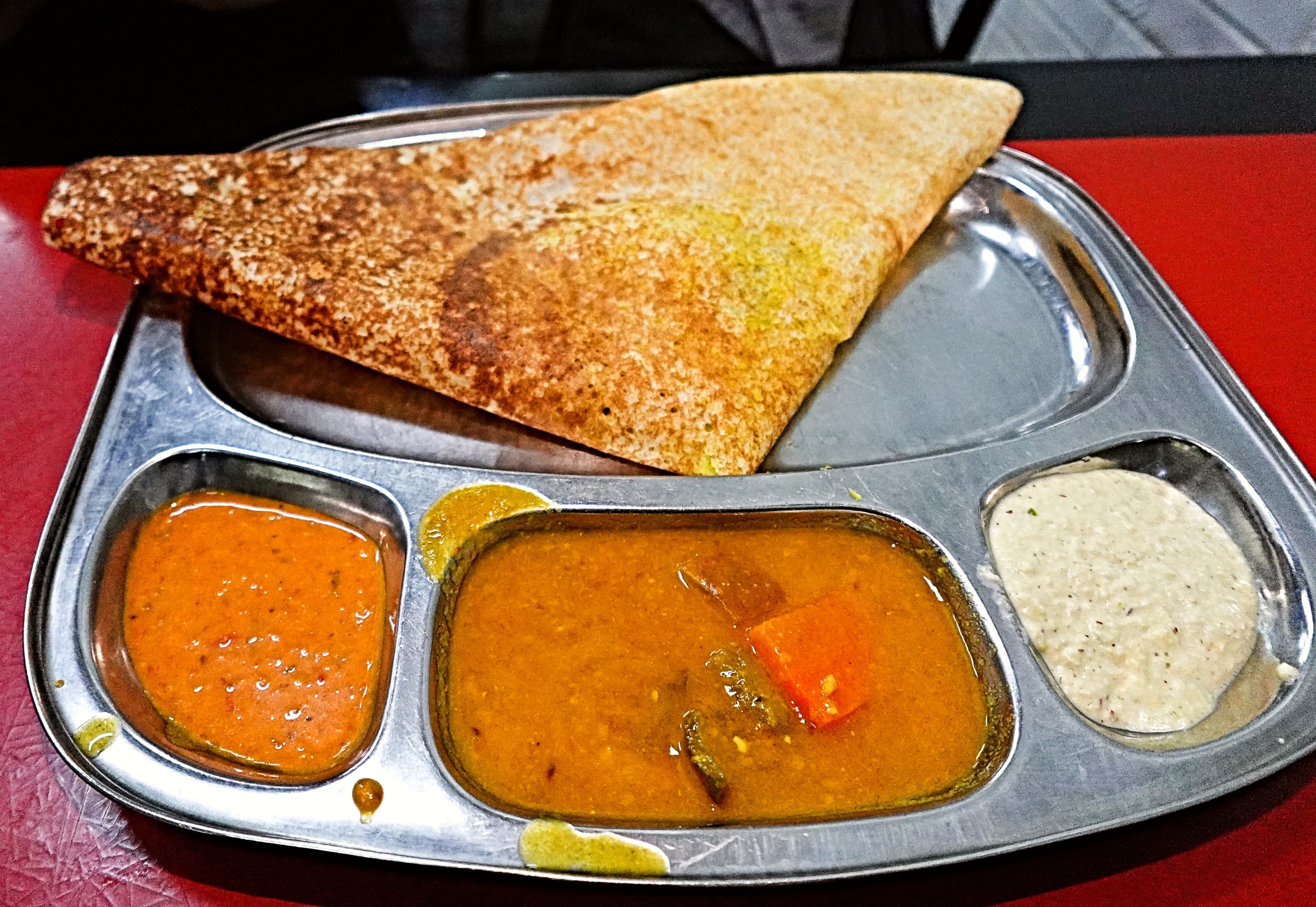 - The must-have masala thosai, with spiced potato filling, and served with a very tasty sambhar, perfectly-executed white coconut chutney and chili-spiked kara-chutney. Sheer perfection.
