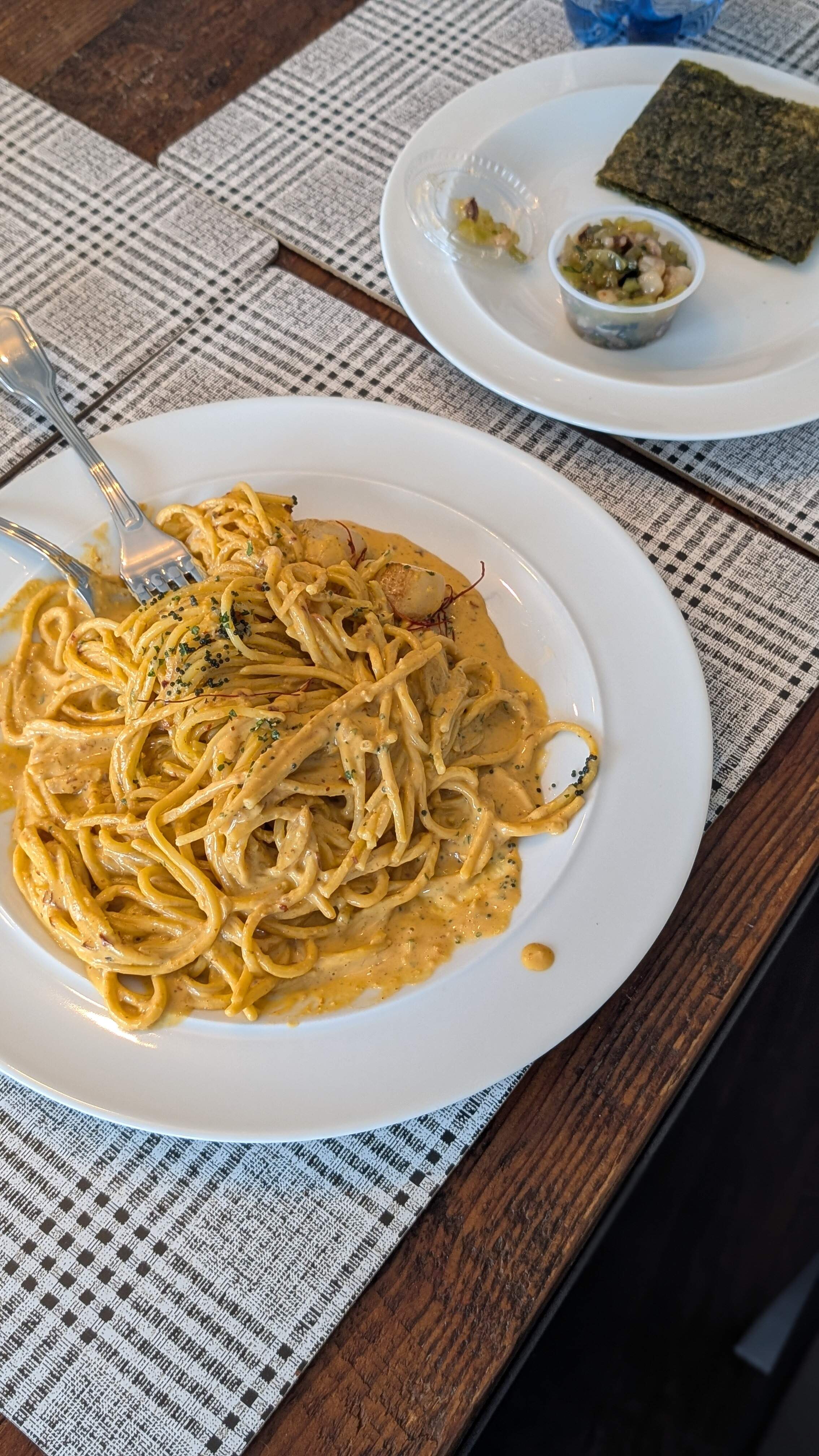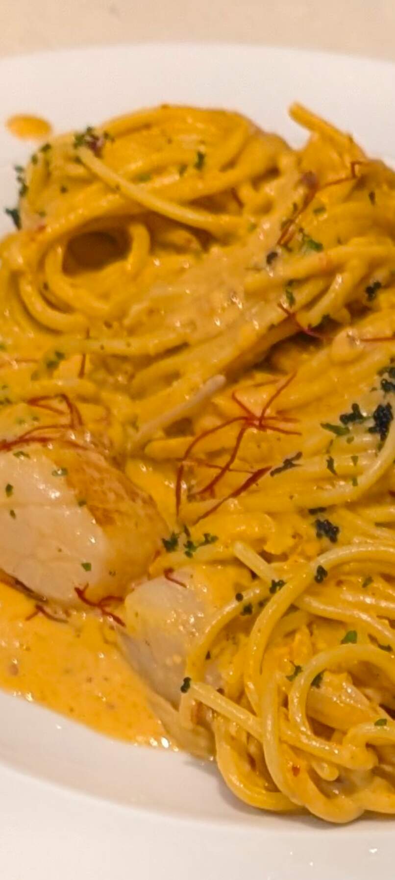 Uni and scallops spaghetti I was looking forward to this dish. The sauce is quite rich as expected and I think even had strings of saffron on top? Had a little bit of bitter finish IMO