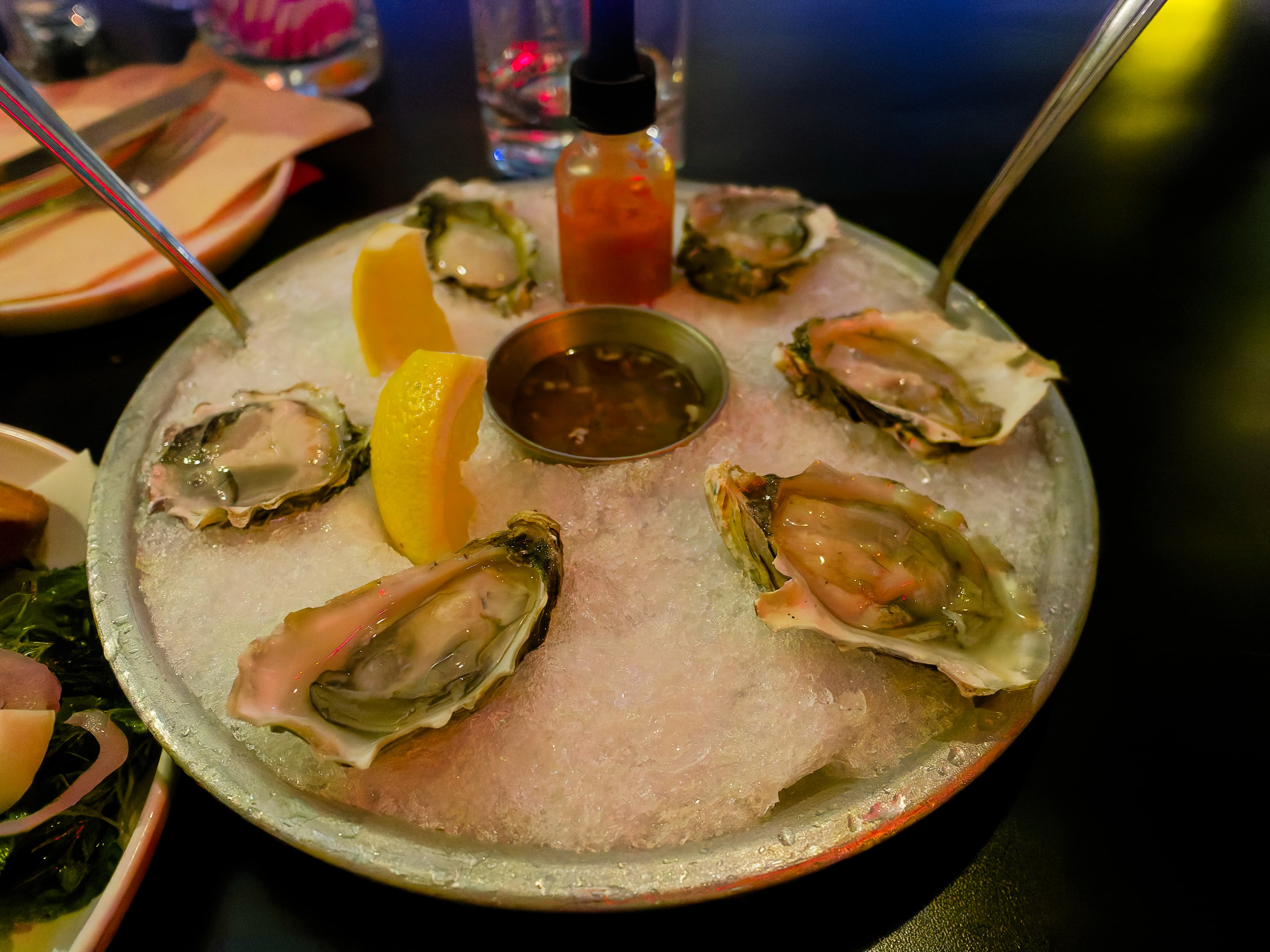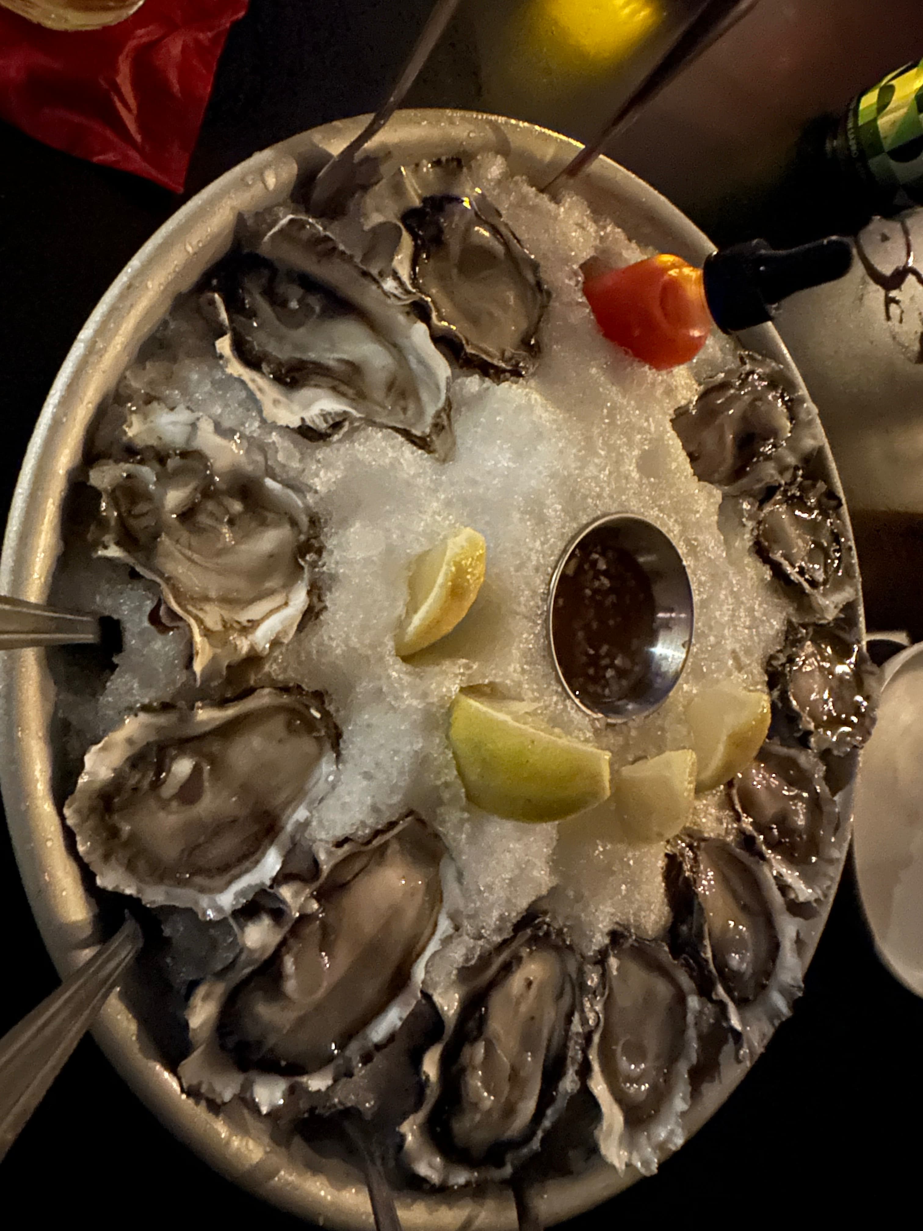 I also had some Oysters, broiled with escargot butter (six for $25). I had arrived just a bit too early for their “Oyster Jubilee” which is between 10pm and 1am - you get six more oysters during the Jubilee! I forgot to write down what type of oysters they were, but they are the same as the ones served raw. This was very good. The oysters were plump and just cooked, with an escargot butter that had green herbs.