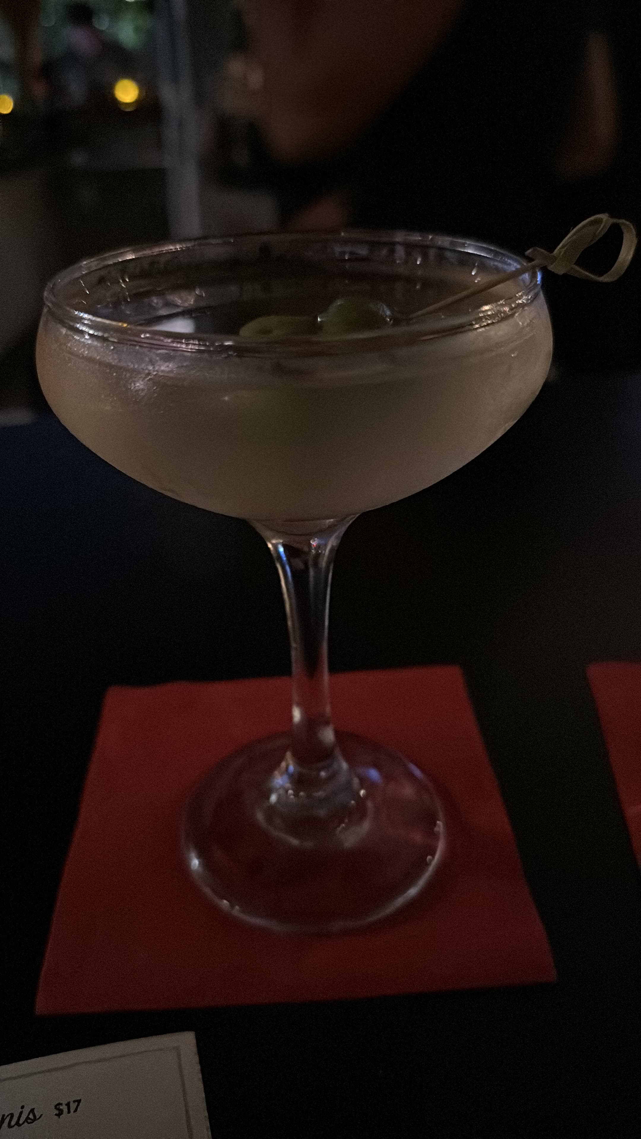 To drink I also had a Dirty Junipero Martini ($17), which has Junipero Gin, dry vermouth, and olive juice, with a couple of olives as garnish. It was a good Martini and quite dirty.