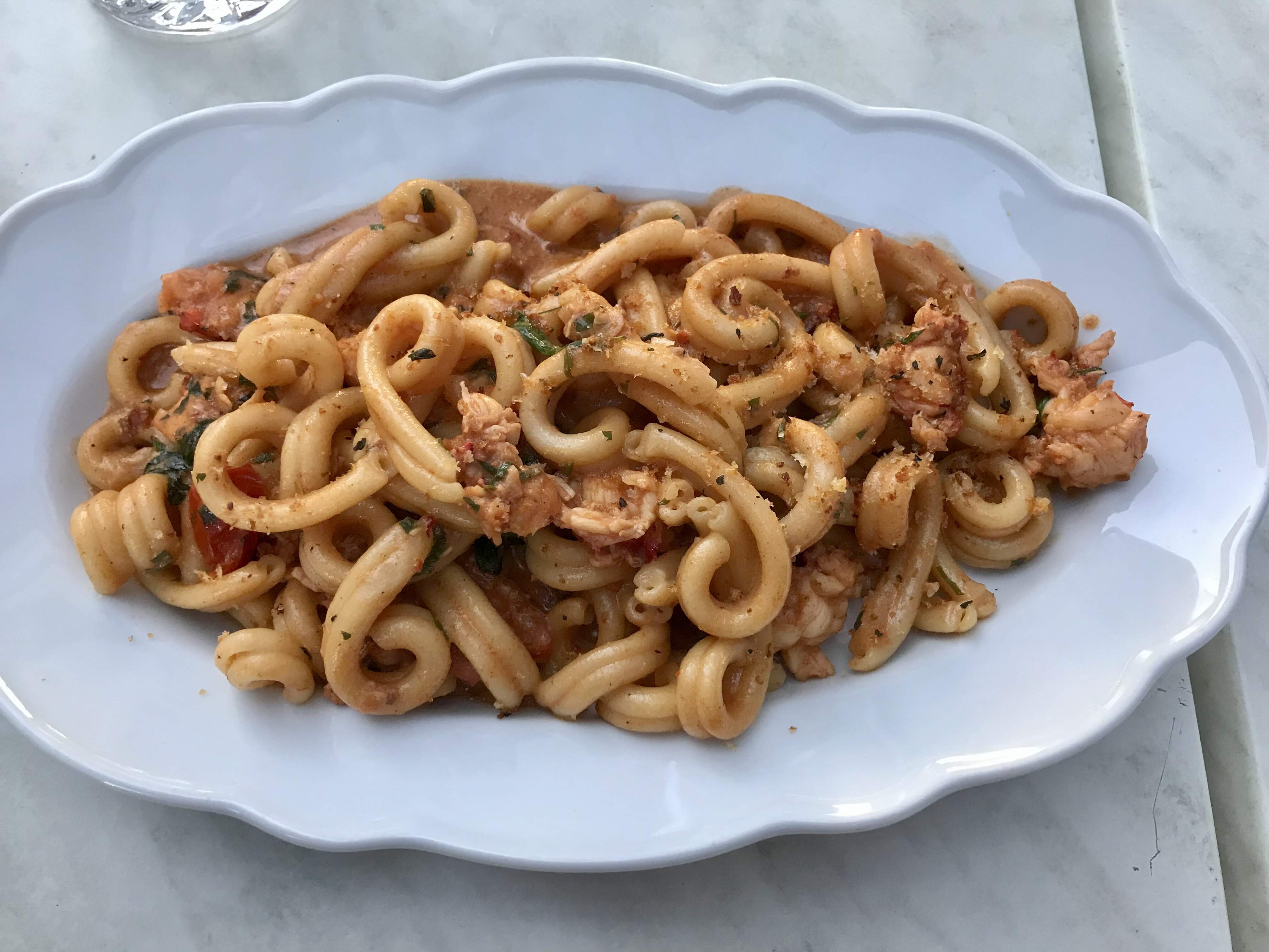 We decided to skip the antipasti and headed straight into two pastas. First was Lobster Casarecce, featuring Nova Scotia lobster, mascarpone, pomodoro naturale, garlic, chili, fresh basil, parsley, and panegrattato. The sauce was delicious and the pasta was nicely al dente, but the lobster was horribly overcooked.