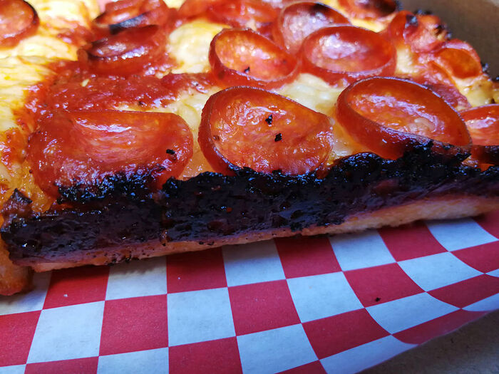 But the star on their menu is their incomparable Pepperoni Pizza (Detroit-Style), which was the lightest, crispest Pepperoni Pizza square we tried on this journey.