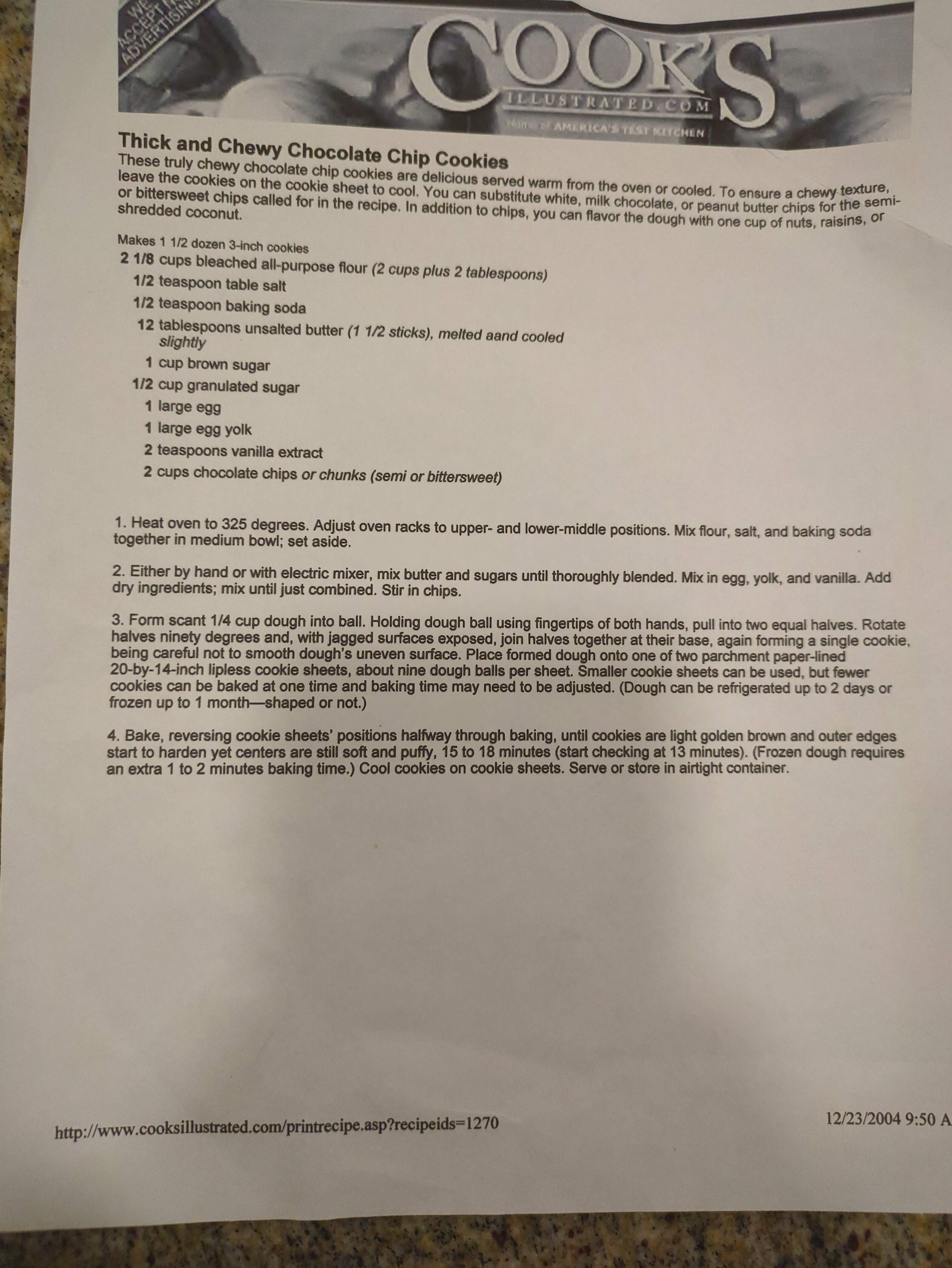 “I got permission from Deborah at Cook’s Illustrated to share the recipe here, so please do give it a try. I think that you’ll enjoy this version of the perfect chocolate chip cookie as much as we did.”