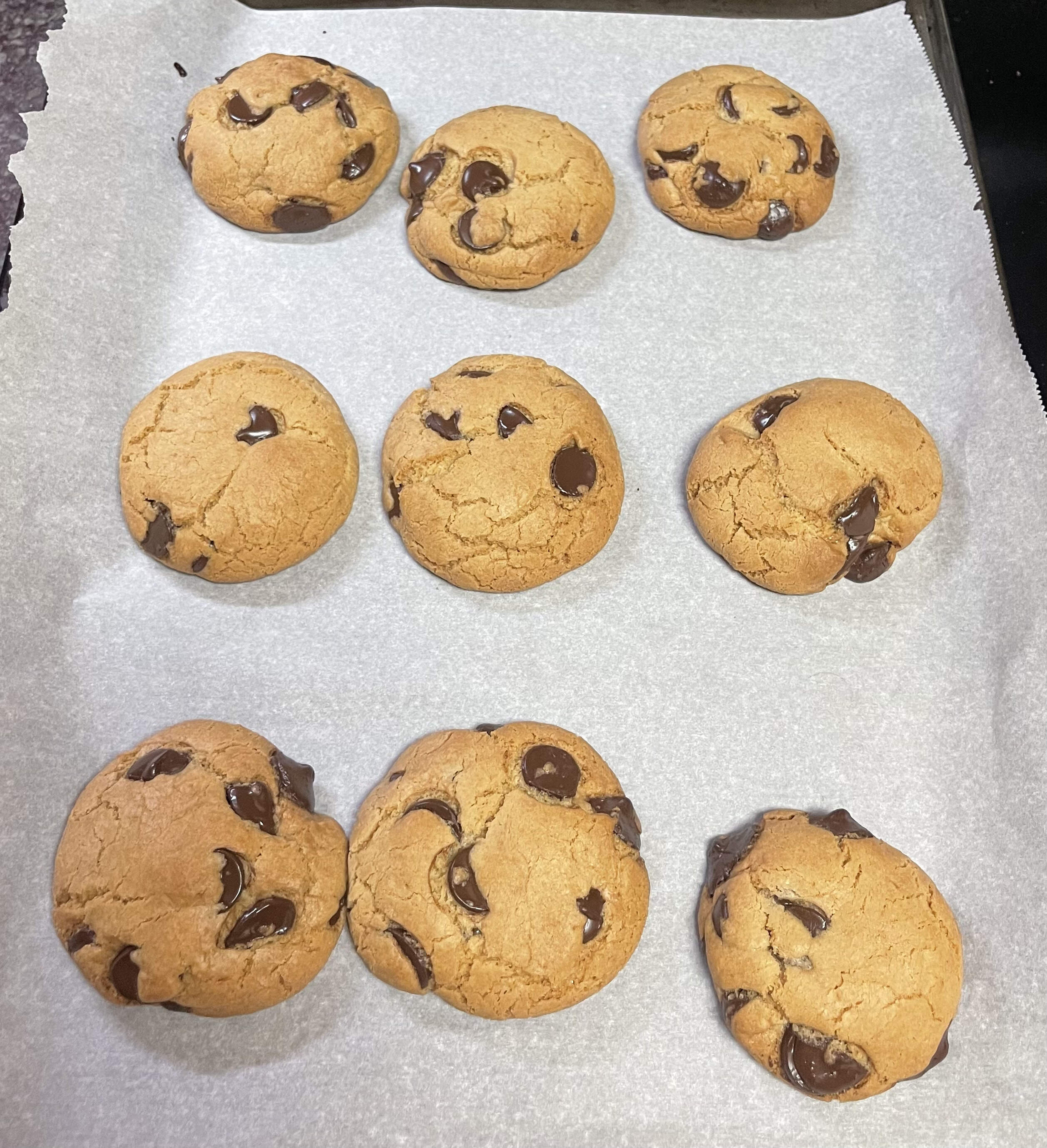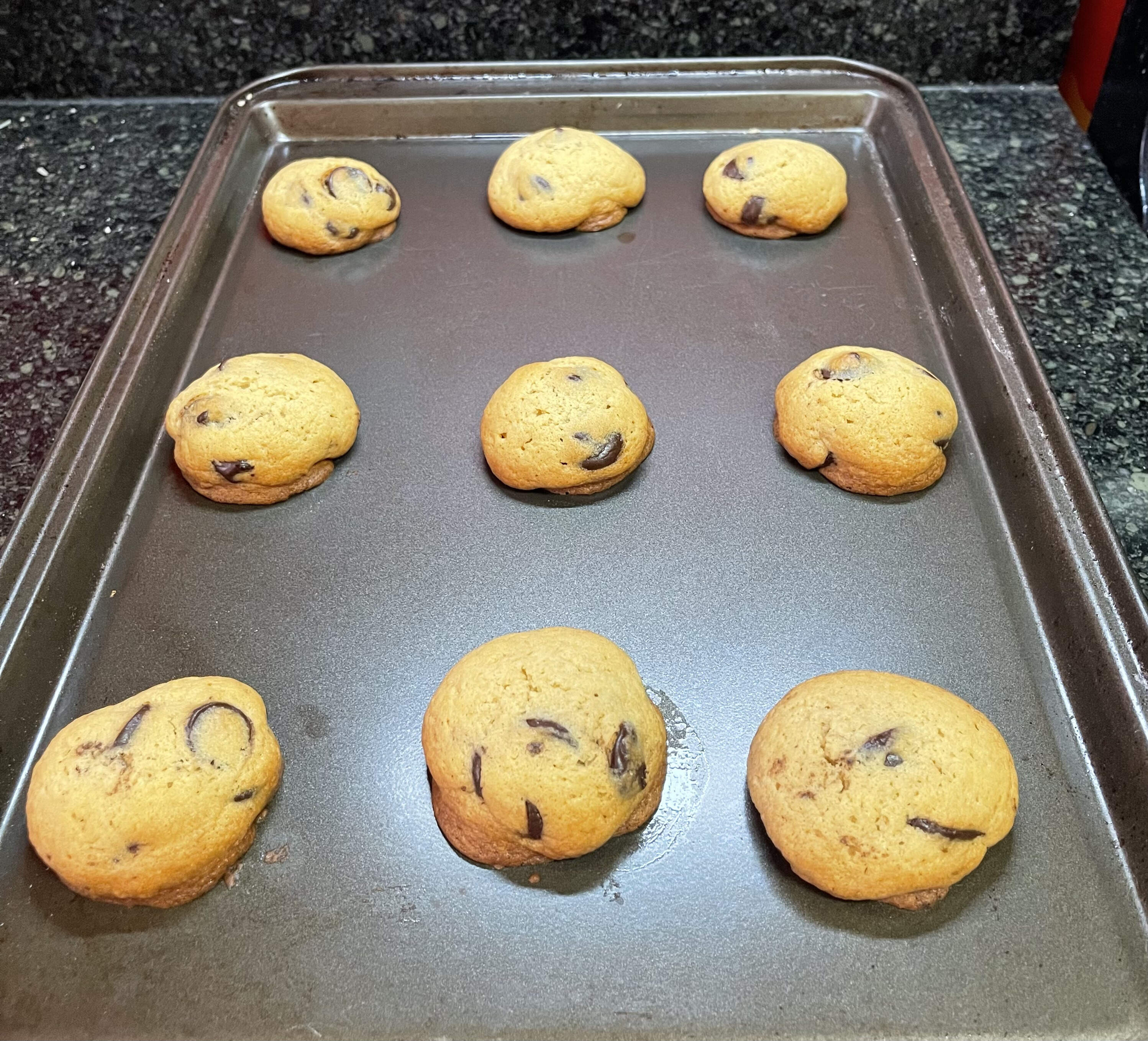 Both of your batches look a little bit puffy, especially the Tollhouse batch, which appears to puff out in the middle, wider than the bottoms. Not sure if that’s what you’re going for, but I believe this happens if the cookies set early – so I wonder if your oven might be running a bit too hot.
