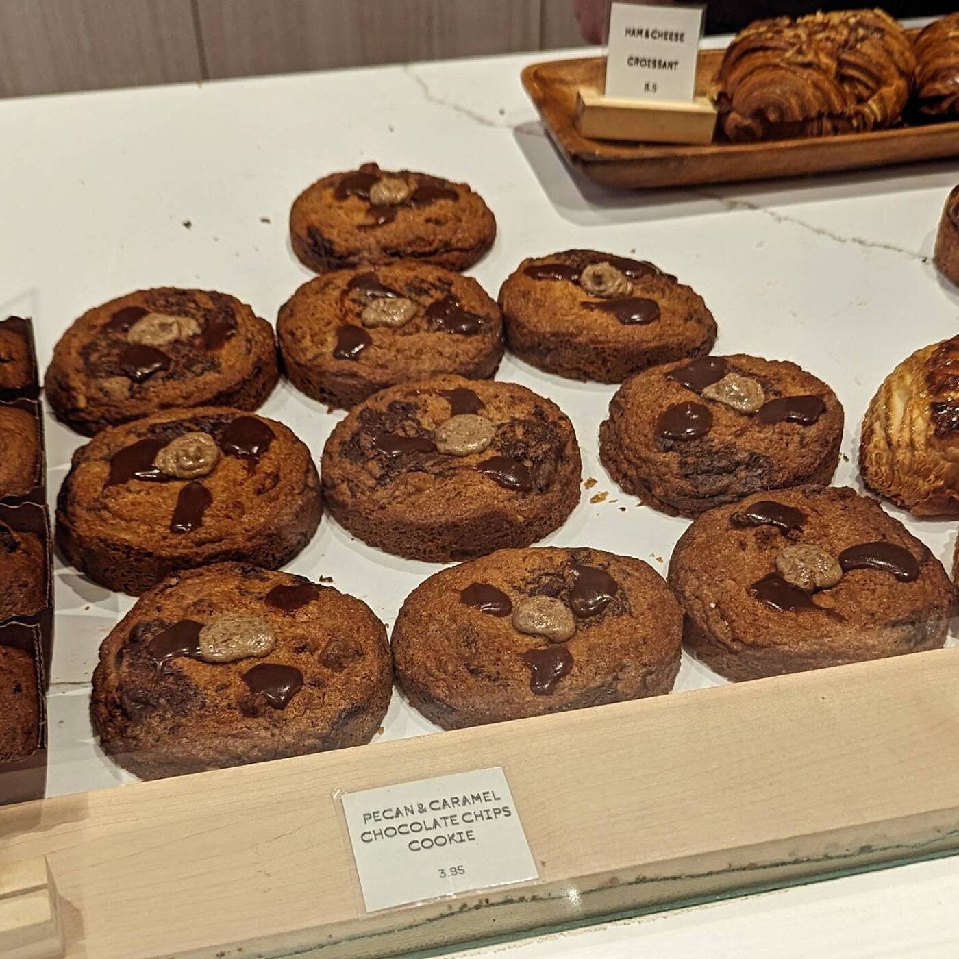 My favourite type of chocolate chip cookie is a flatter, crispy and chewy chocolate chip cookie, as well as this pecan caramel chocolate chip cookie from Bakery Pompette in Toronto.
