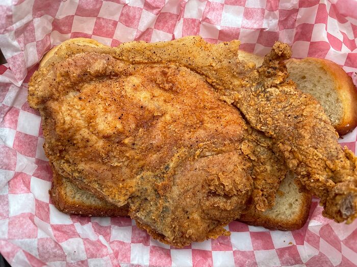 This isn’t a pork tenderloin sandwich, but the porkchop sandwich at Del’s in Somers Montana is pretty darned good. Same concept, just a cheaper cut of pork that they run through a tenderizing machine which makes it a lot easier to eat while not impacting the flavor, plus it makes it extend out both sides of the sandwich. I really like this sandwich! I usually get two meals out of it.