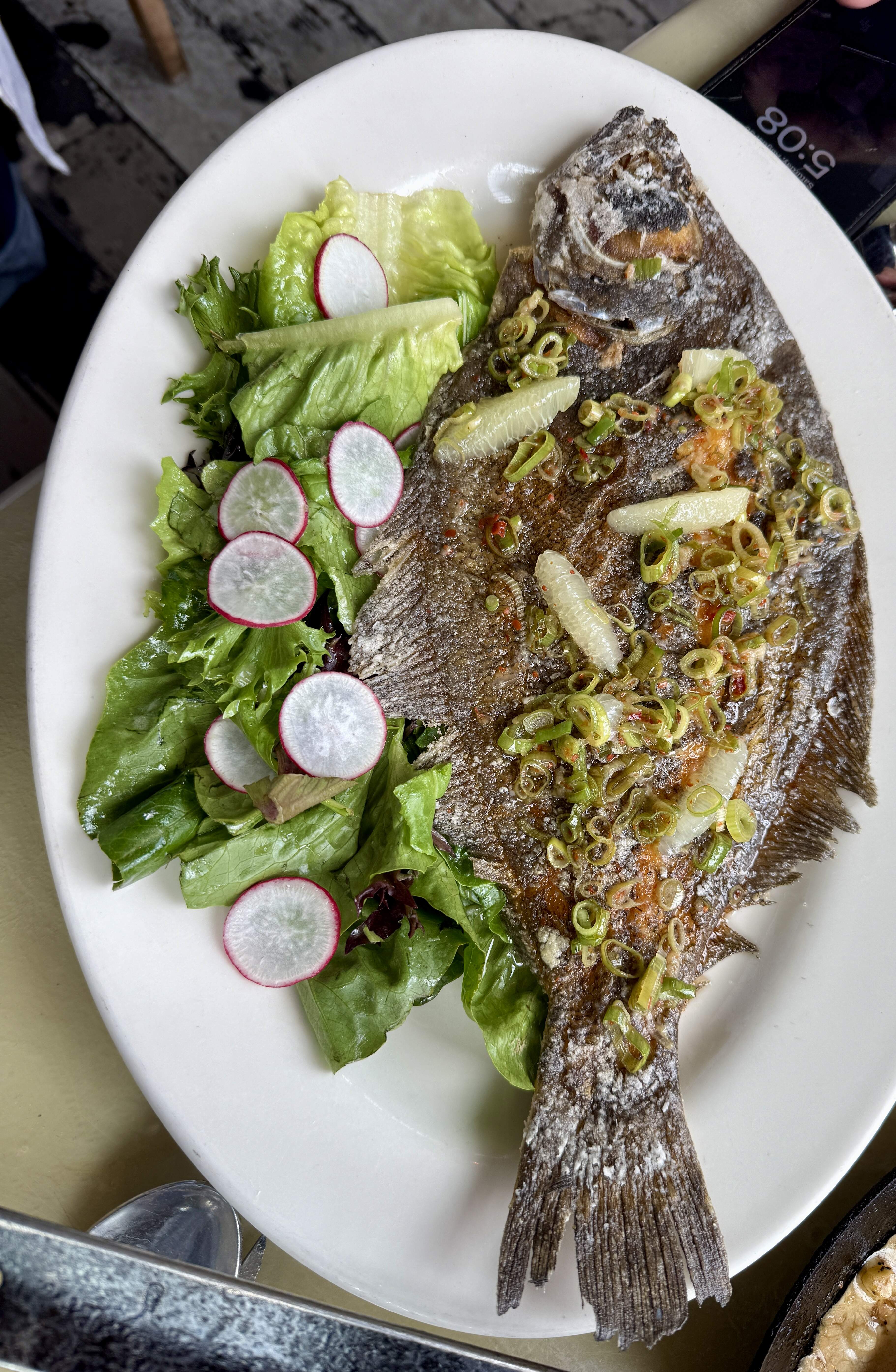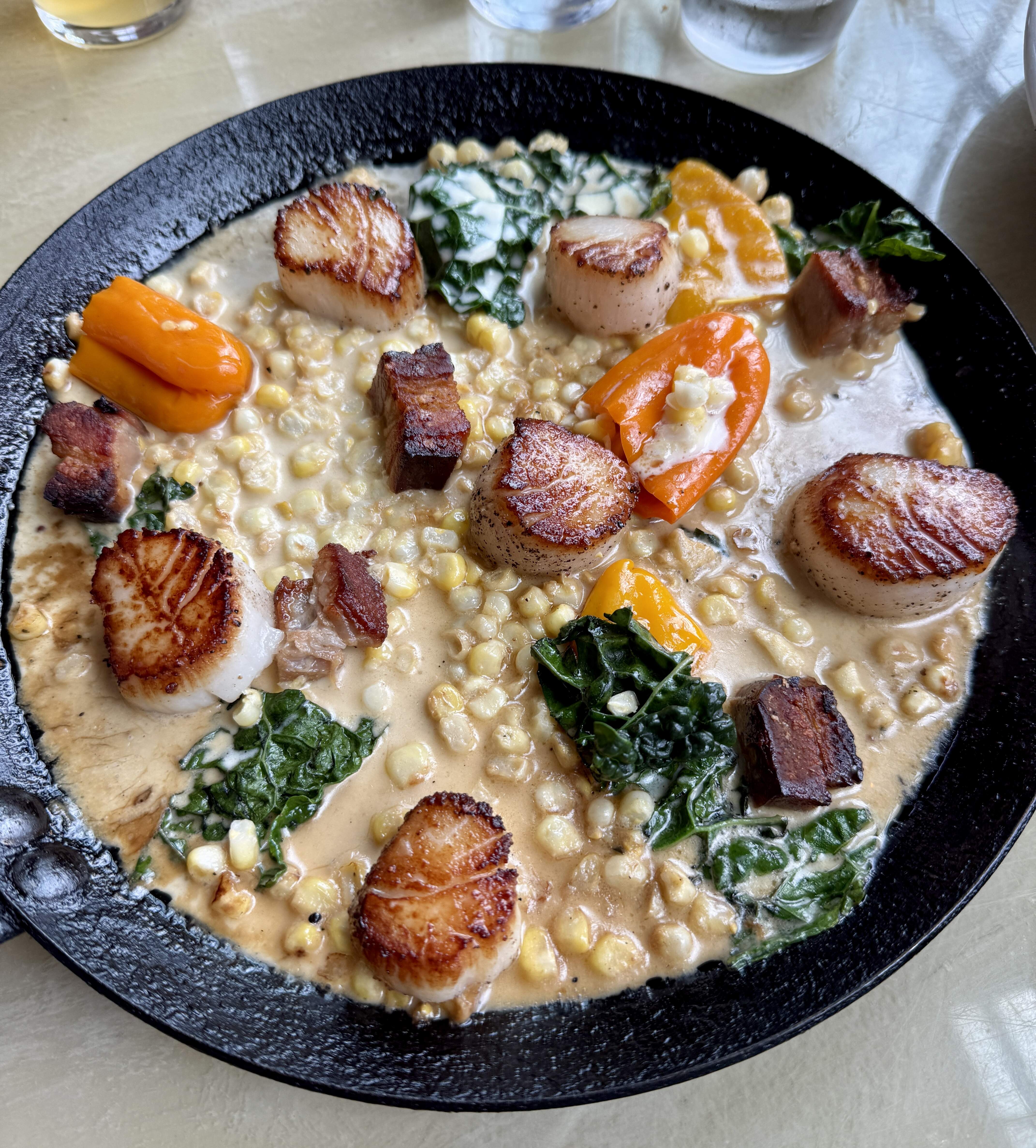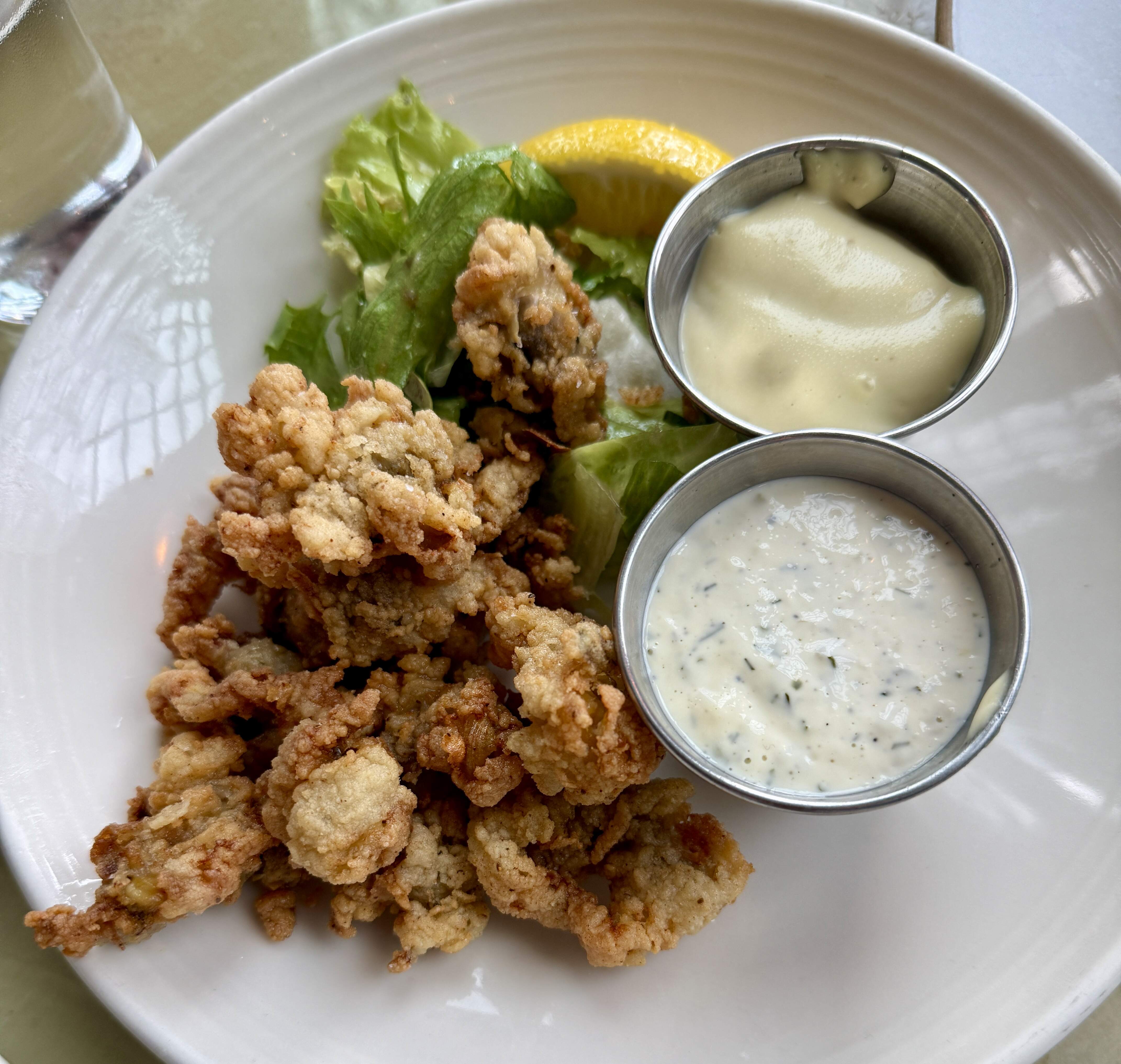 Meal-wise, we liked it very much, but the amount of salt in all the dishes was excessive. Crab fritters, deep fried clam belly, and octopus were delicious. Scallops, baked haddock and fluke. Almost every table abound us had mussels and clams in a heavy skillet. Would definitely come back. The price tag was very reasonable for the amount of food we got.