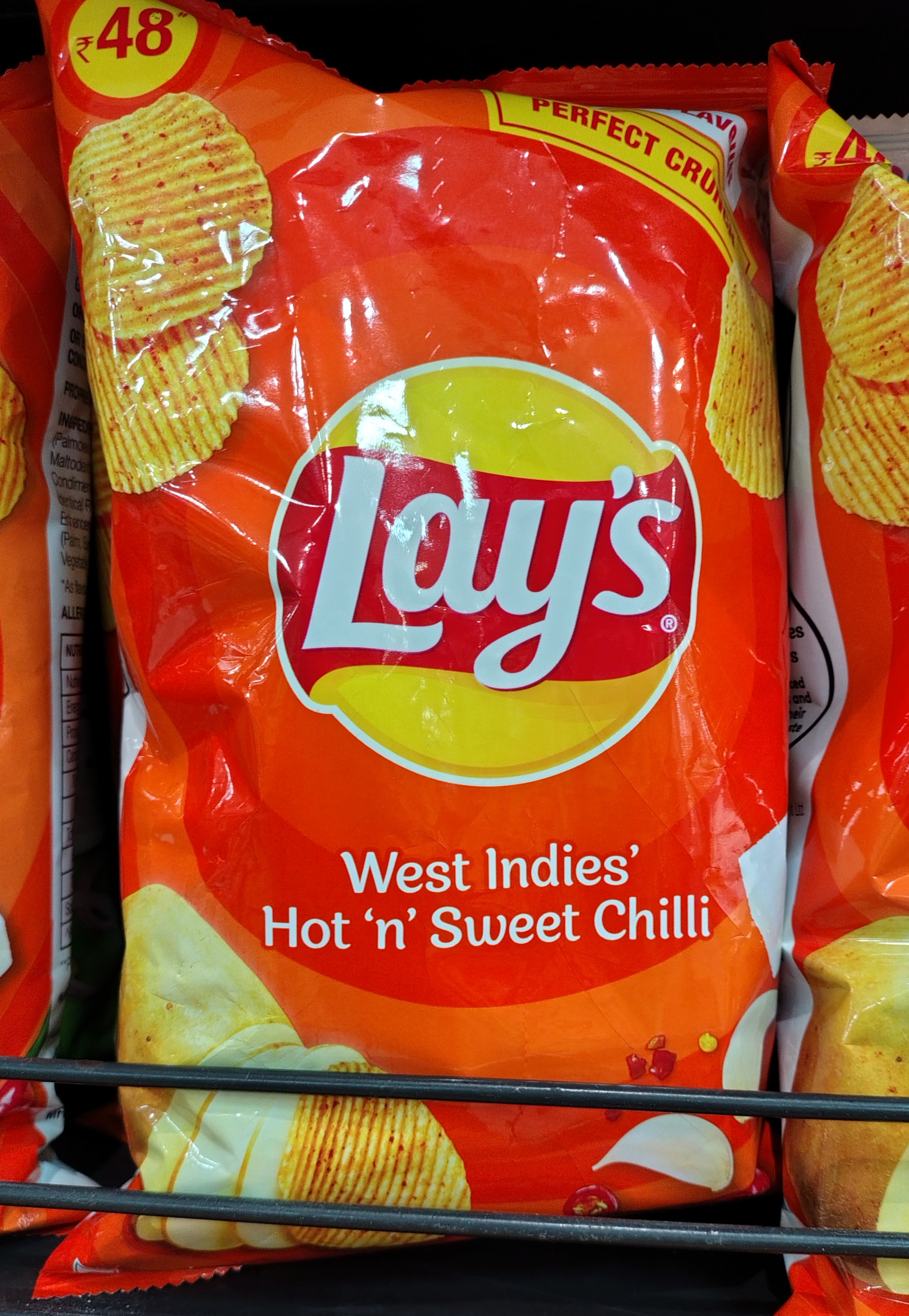That’s what I meant too - it says West Indies’ on the packet, so perhaps I should have said that too to avoid confusion! And I’m sure that’s what this flavour name means to convey. The West Indies is well known in India for its cricket team, so somehow tagging that name onto a hot and sweet flavour is meant to drawn in the Indian consumer?