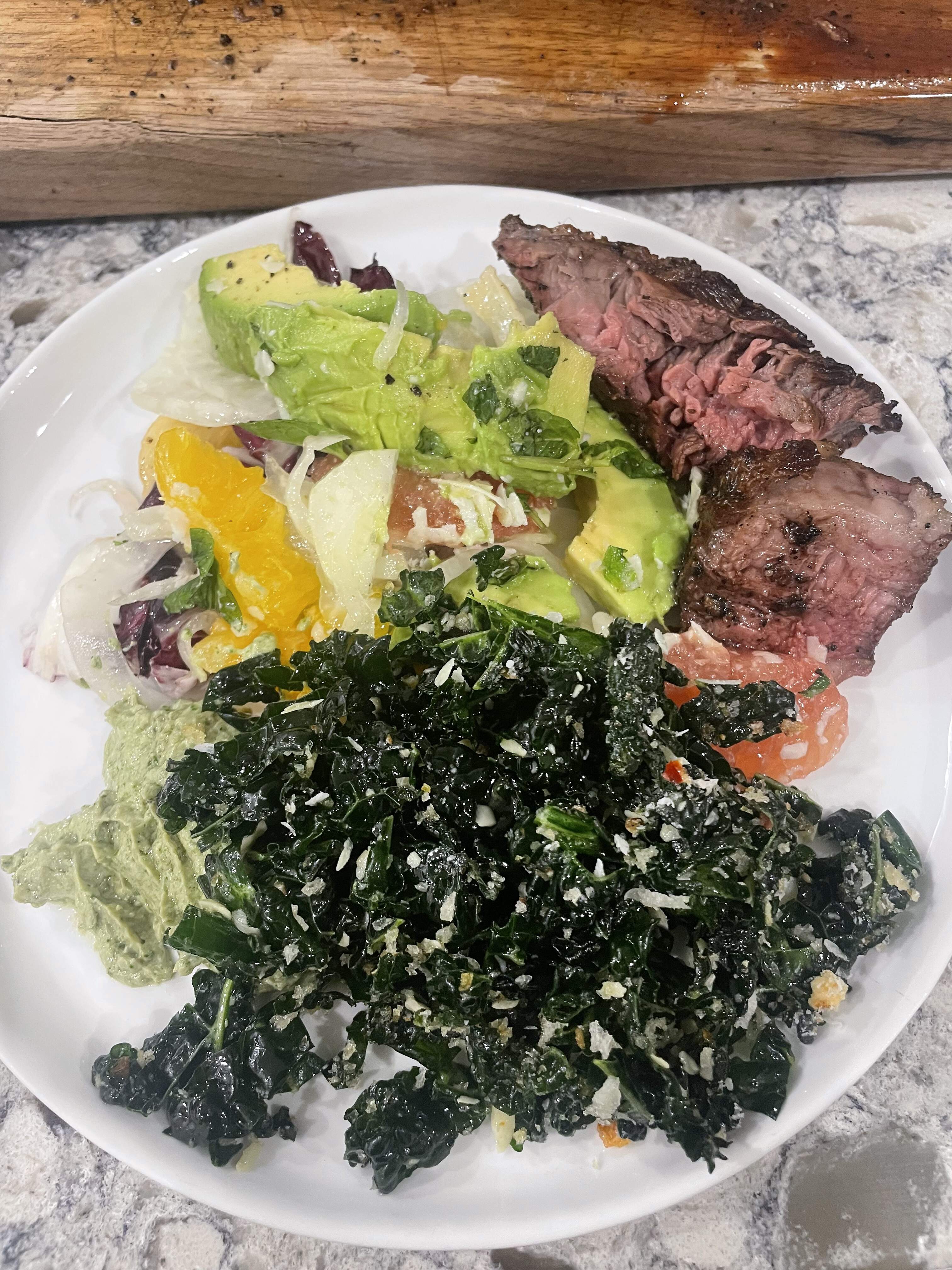 I will say I felt terrible for my brother, who is extremely sensitive to the cold (he actually has a medical condition related to this) but he volunteered to grill outside in January, so ultimately - this is on him. He obv didnāt know it would be almost record-setting cold this weekend. But more than that, itās a lot of pressure to prepare such a quantity of meat and to achieve different doneness, and to not āruinā expensive dry-aged meat - but he killed it on every level. It was delicious. I did my best to handle everything else, so that he could focus on that.