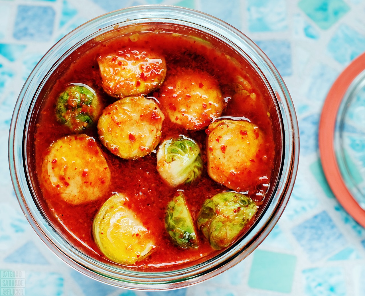 Some Asian pickles come with a plastic disc on top. Save it for this.