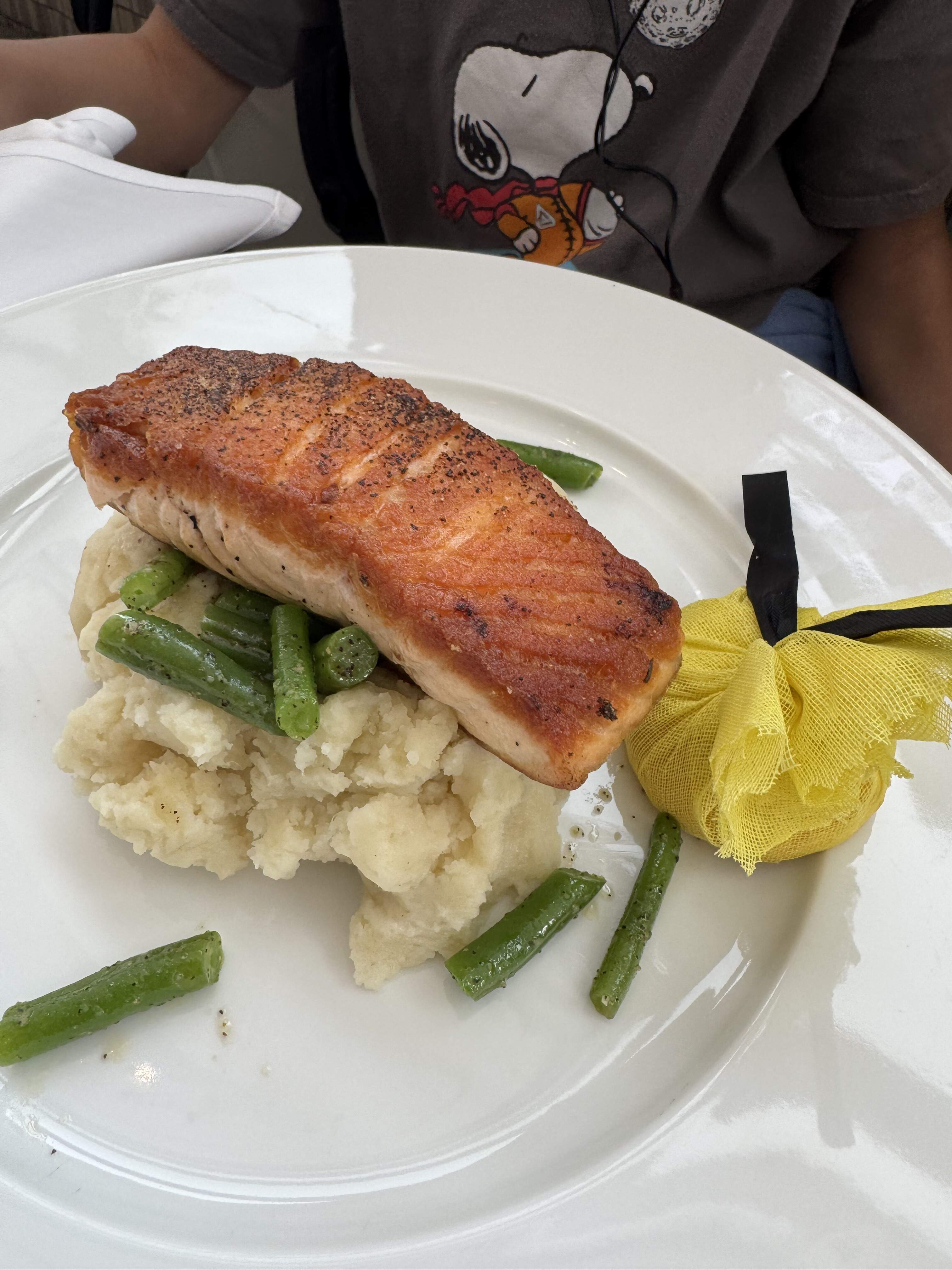 That salmon looks pretty tasty and $19 at an airport restaurant ain’t too shabby either.
