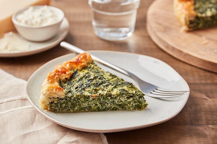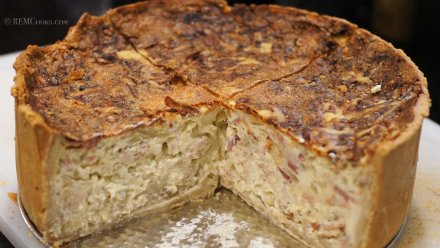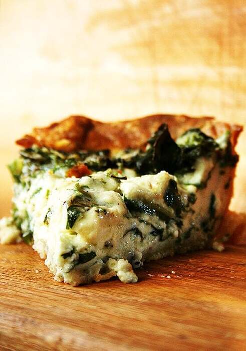 Hmm. The tall quiche is meant to be made ahead and chilled before slicing, then served at room temperature or reheated gently.