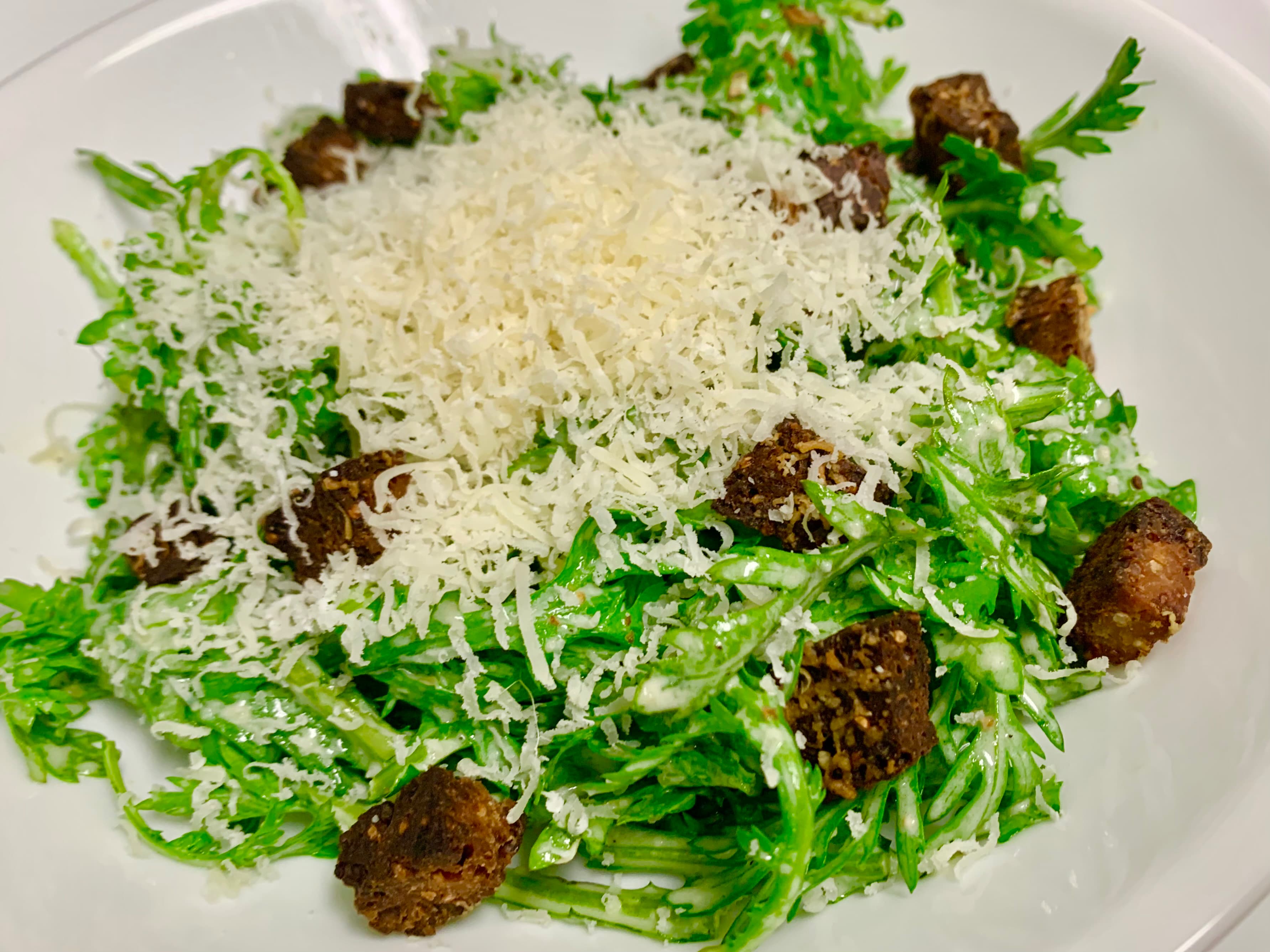 I ate this at a restaurant a few months ago, and it stuck in my mind, so I looked for the greens to try it out at home.