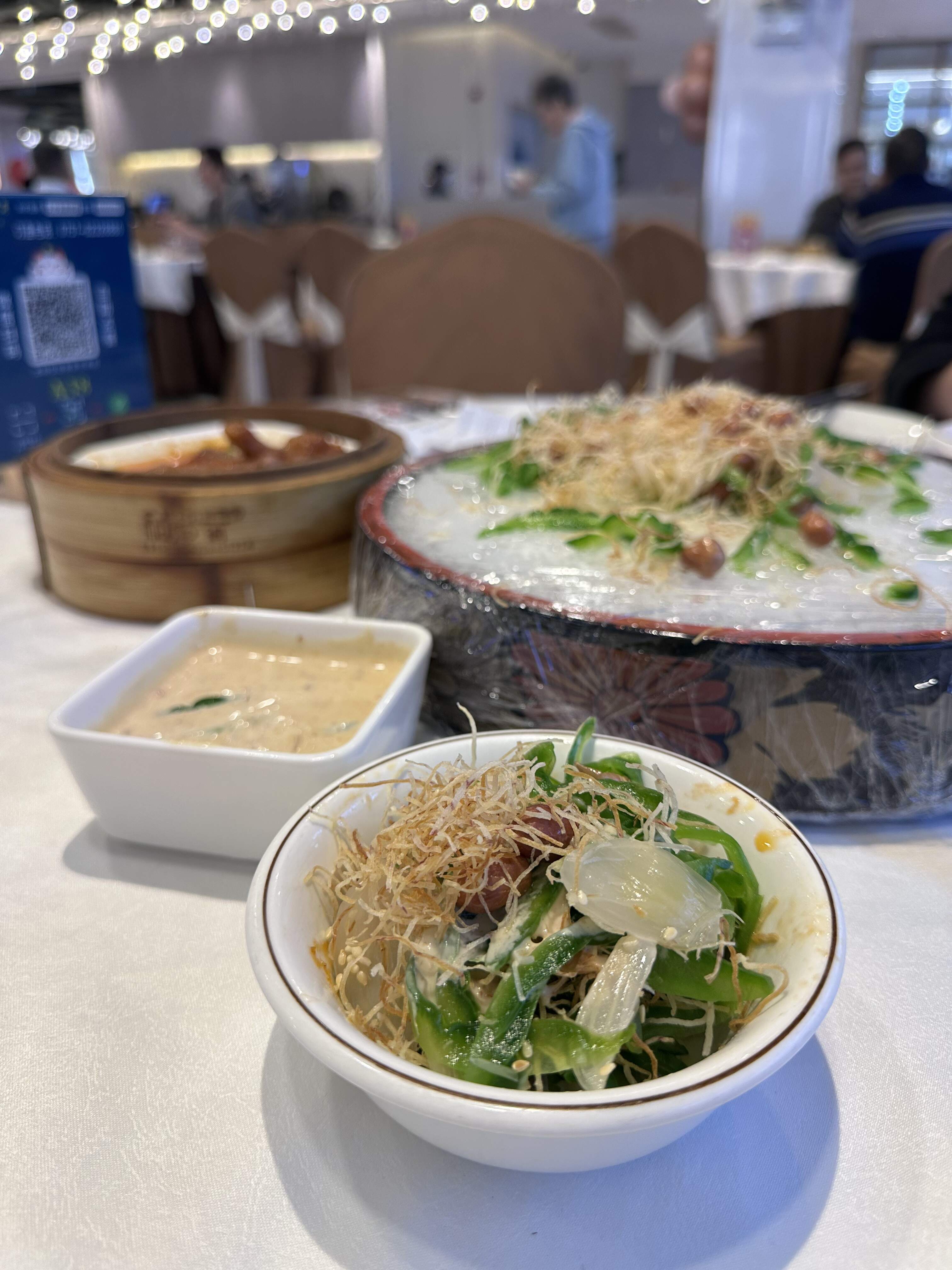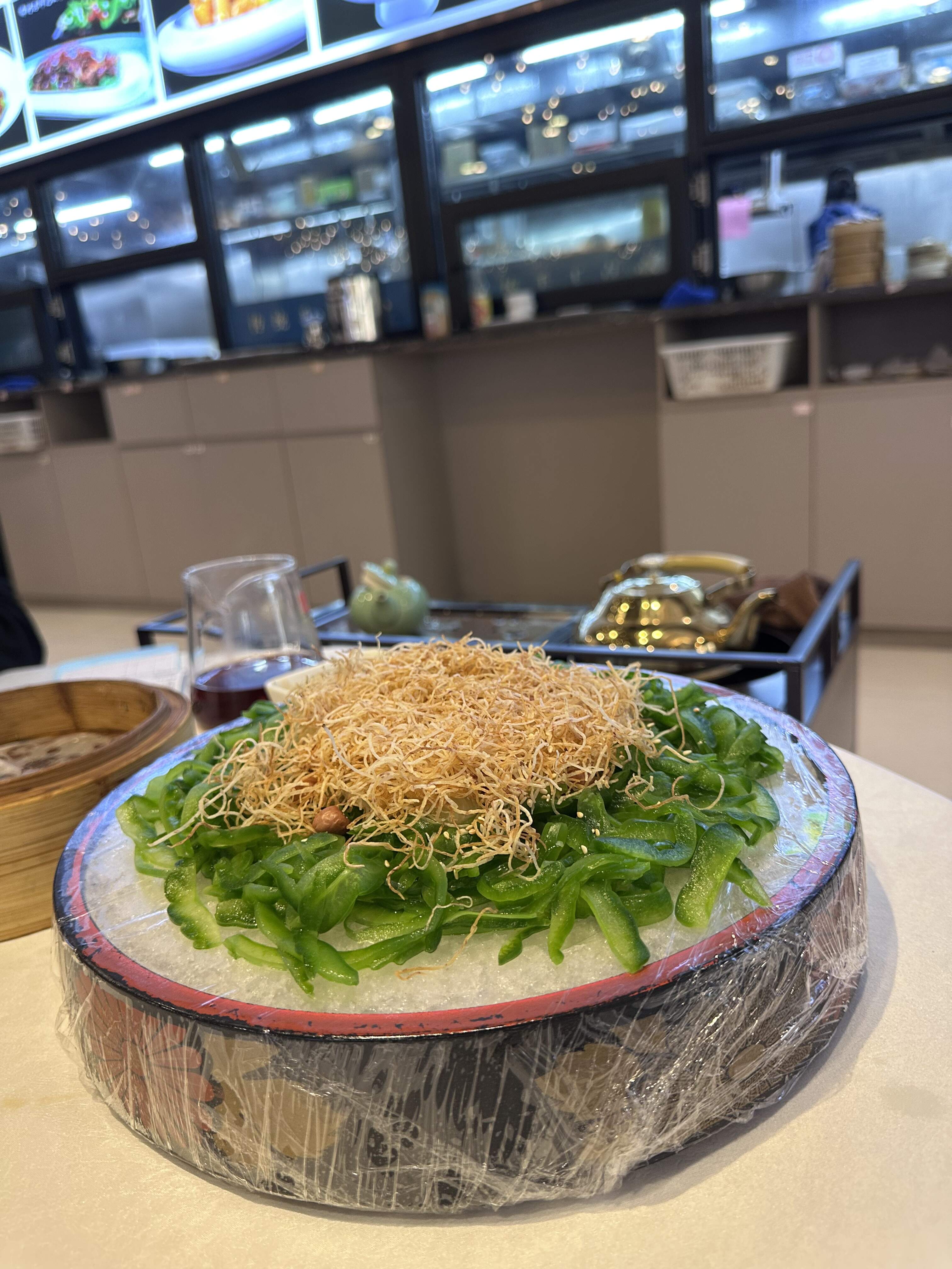 I’d done this totally raw bitter melon salad before. This restaurant’s version is much better. Much thinner sliced than my feeble attempt. Will definitely try again back home.