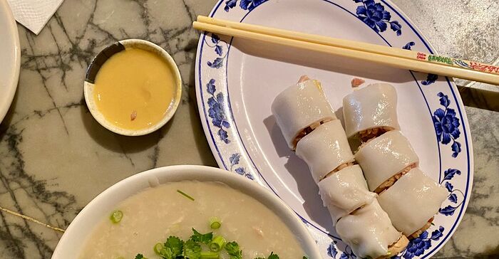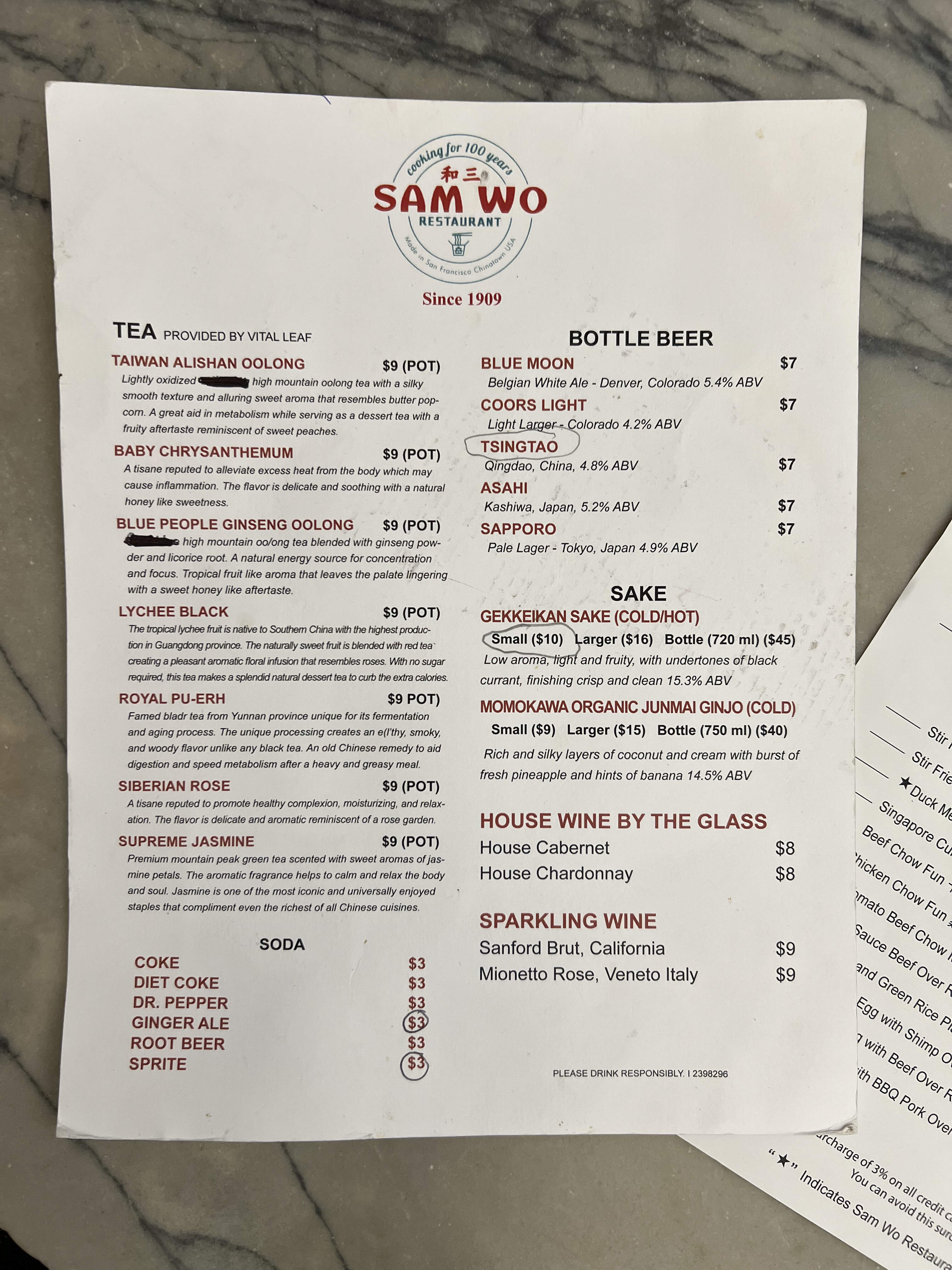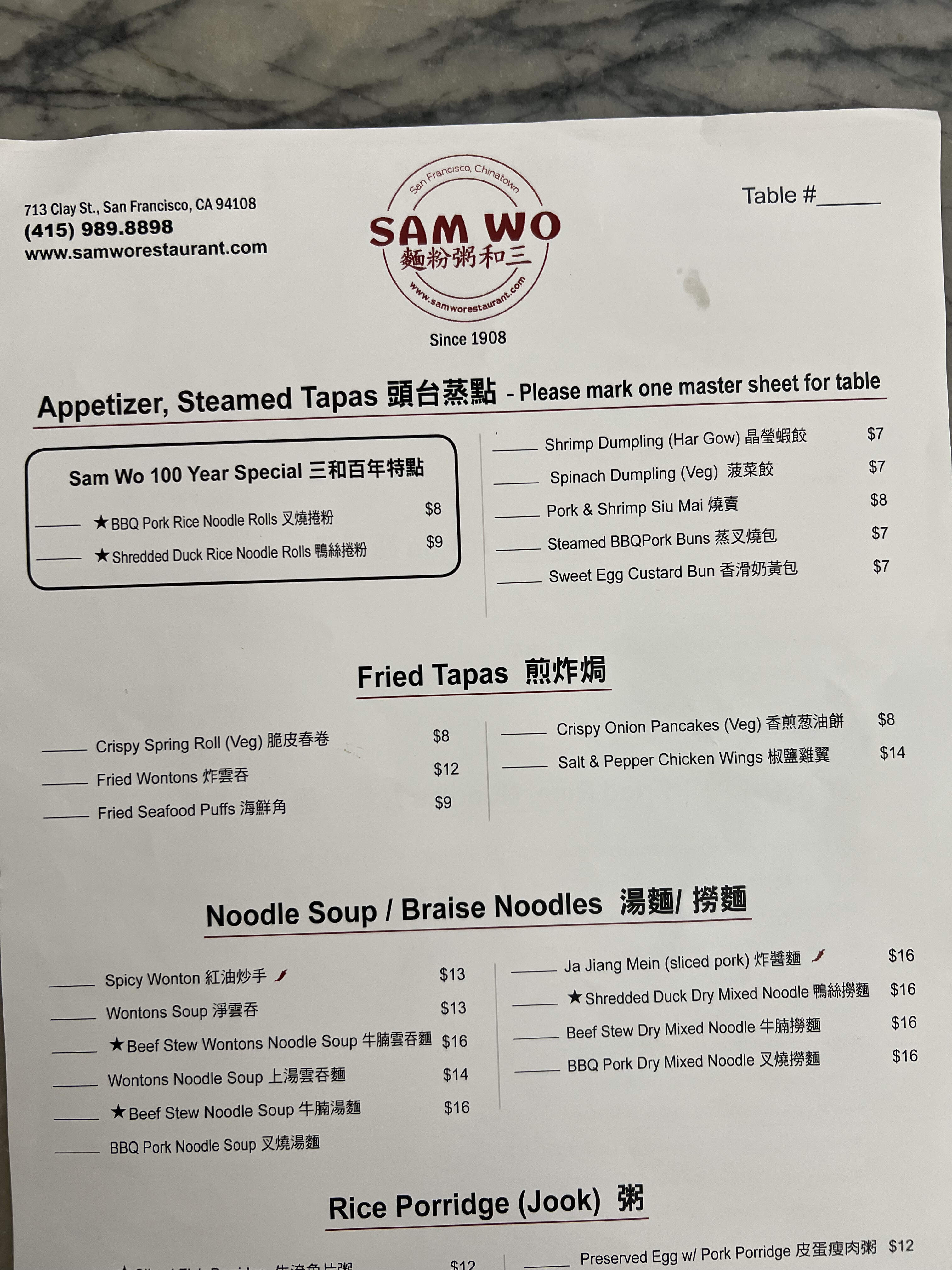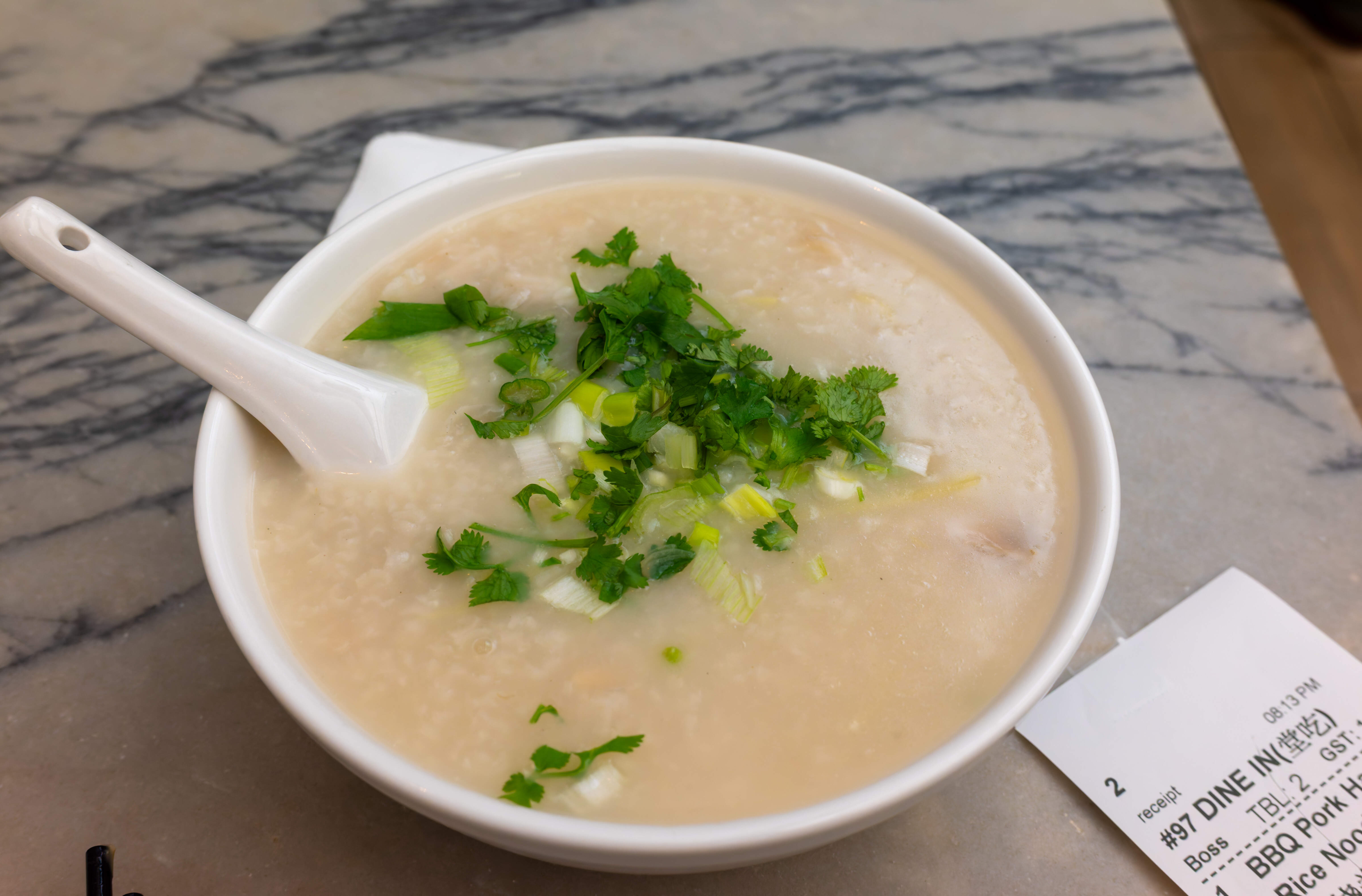 And I also had the Sliced Fish Porridge ($12), another Sam Wo classic. This was also quite good. There were lots of thin slices of a delicate white fish, cilantro, and ginger slivers in the rice congee.