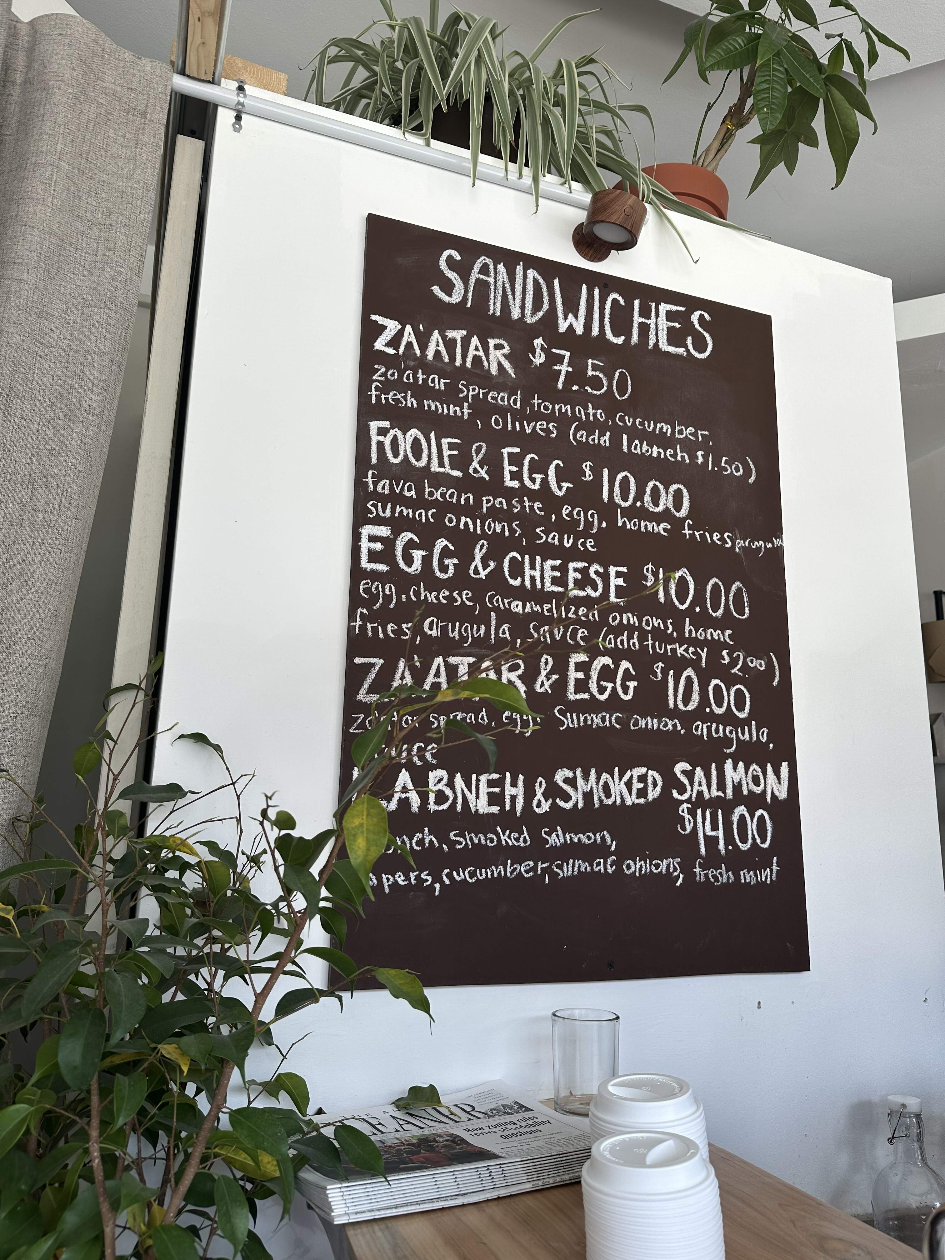 Palestinian breakfast sammies and small selection of drinks. (The specialty latte is halvah). I had the za’atar one without labneh. It was delicious. Will definitely have again next time i’m in the city.