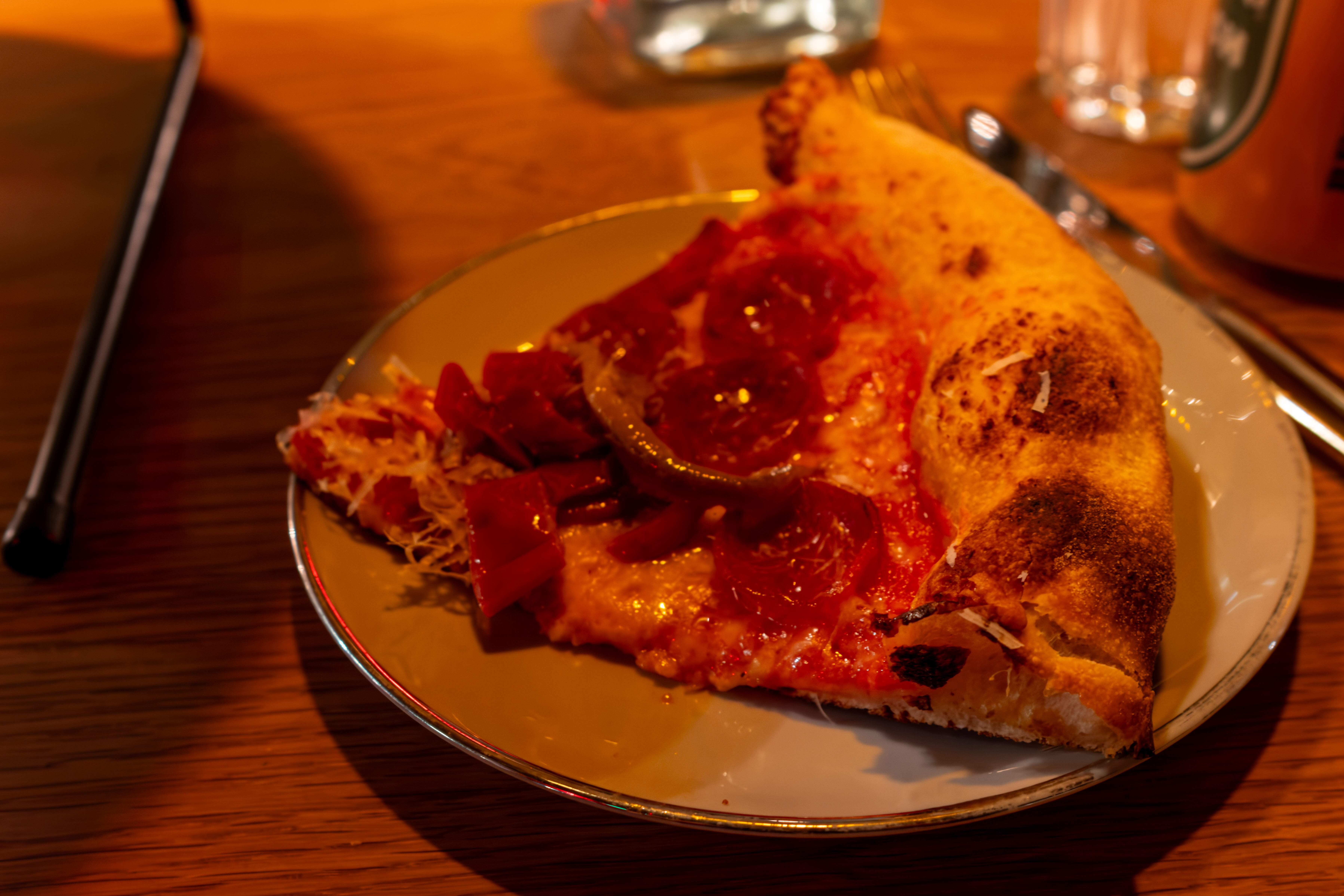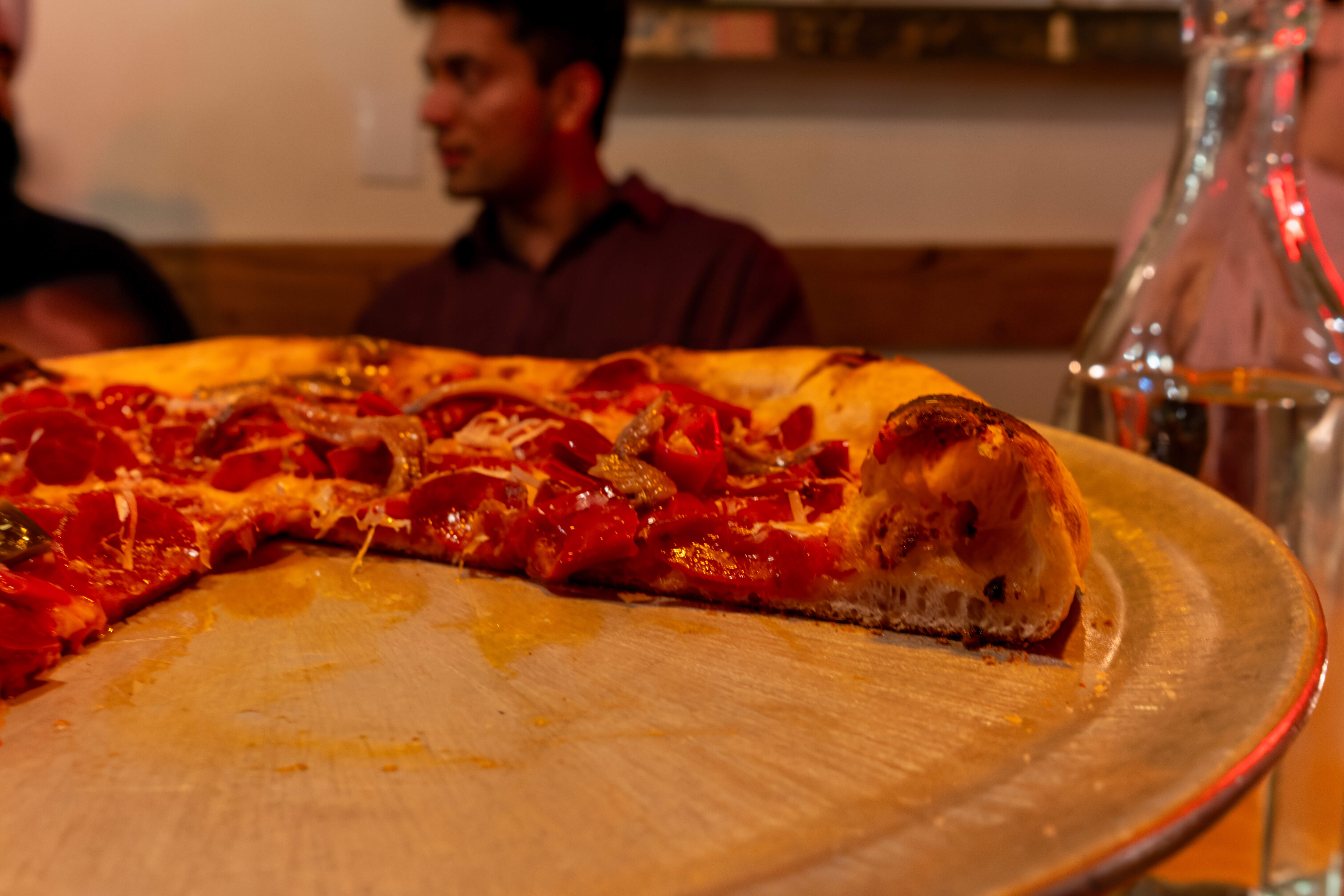 To me it tasted more like a NY pie texture wise - more crispy than a tender Neapolitan crust. But the sourdough taste was different from both NY and Neapolitan.
