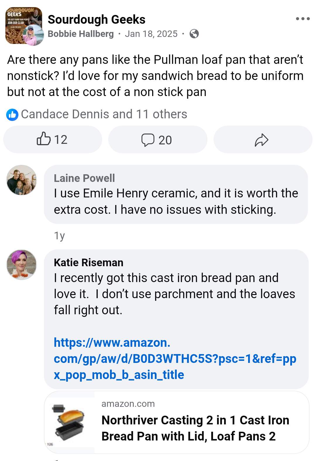 I am not keen on non stick or aluminum coatings, and I don’t love the shape of the Emile Henry ceramic bread baker.