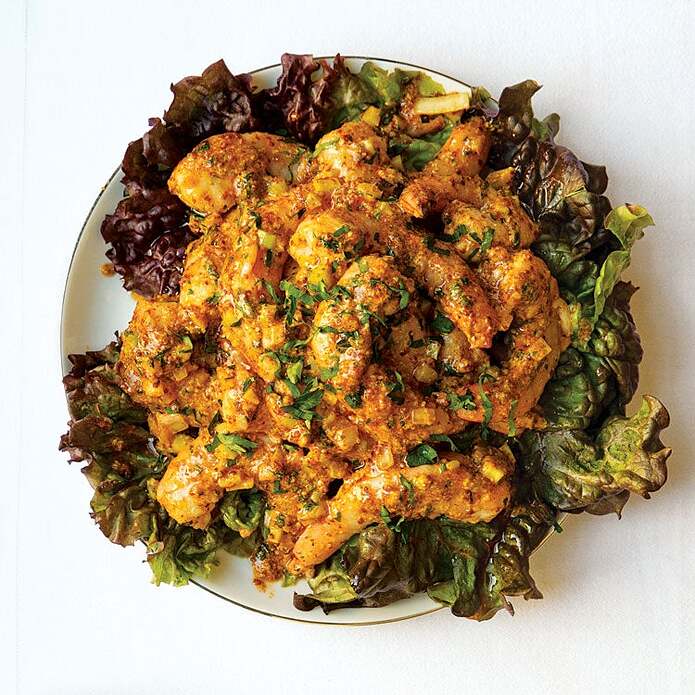 My favorite way with shrimp is to first make a broth with shrimp shells, dried red chillies, a bay leaf, some coriander seeds, some fennel seeds, onion, etc., then concentrate it.
