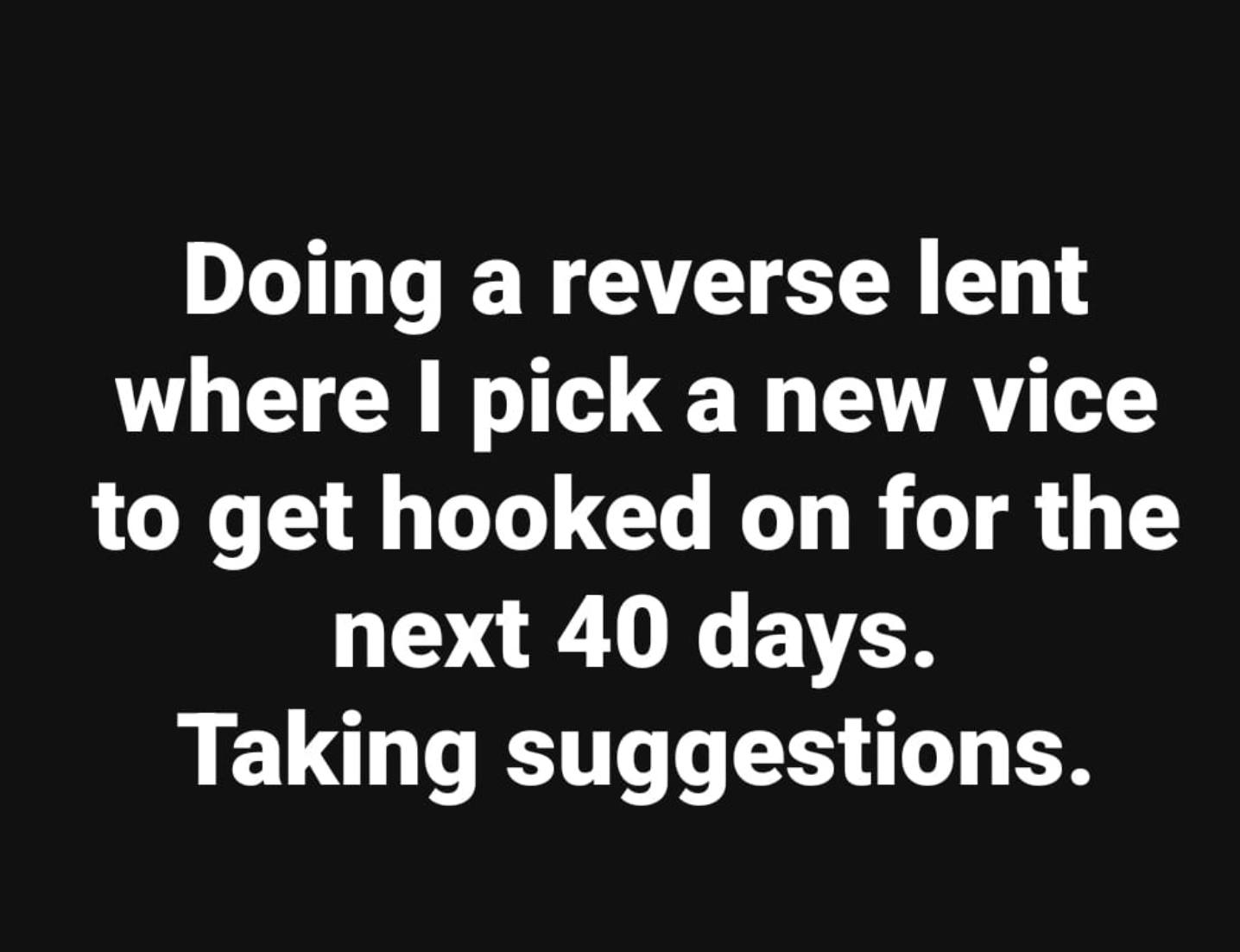 Or is that too tame a vice for the next 40 days??