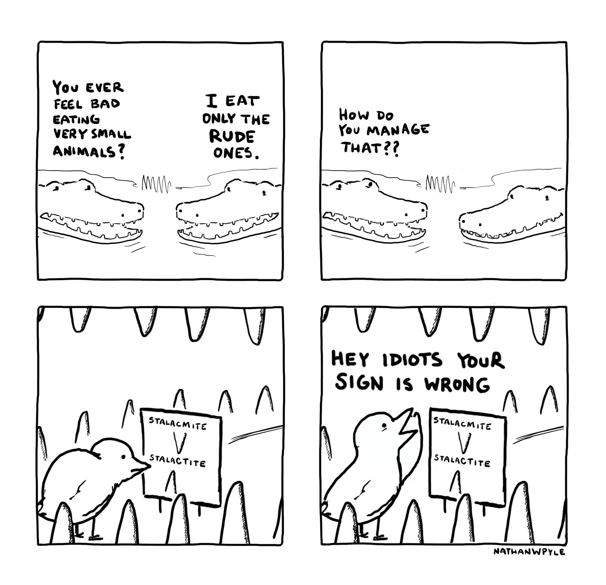 Wrong in more ways that one, but I spoze gators aren’t spelling bee champions. Or maybe the author isn’t. Still funny either way.