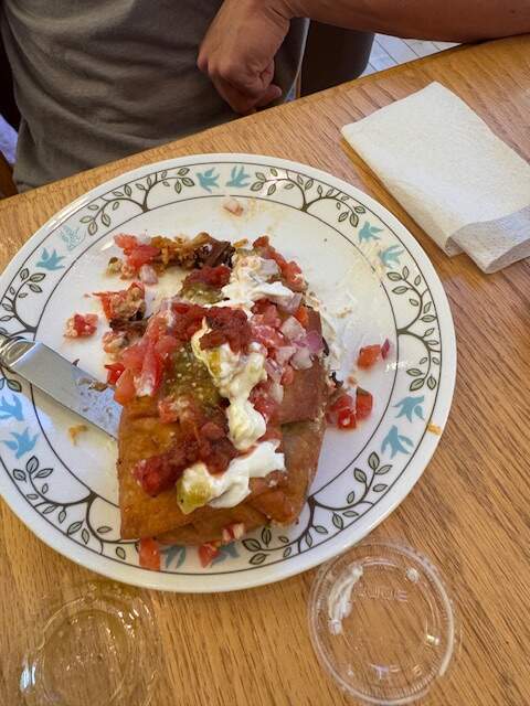 Friday dinner was takeout from a fun-looking Tex-Mex joint in nearby Stephentown, Norte Azul. Place was packed when we picked up just before 6 pm. No wonder, because there’s not much else around. I think in the warmer months, this place would be a great place to hang. Beef, chicken, veggie quesadillas for the kids and for me, respectively; beef chimichanga for my bro; shrimp and chicken fajitas for my SIL and B, respectively,