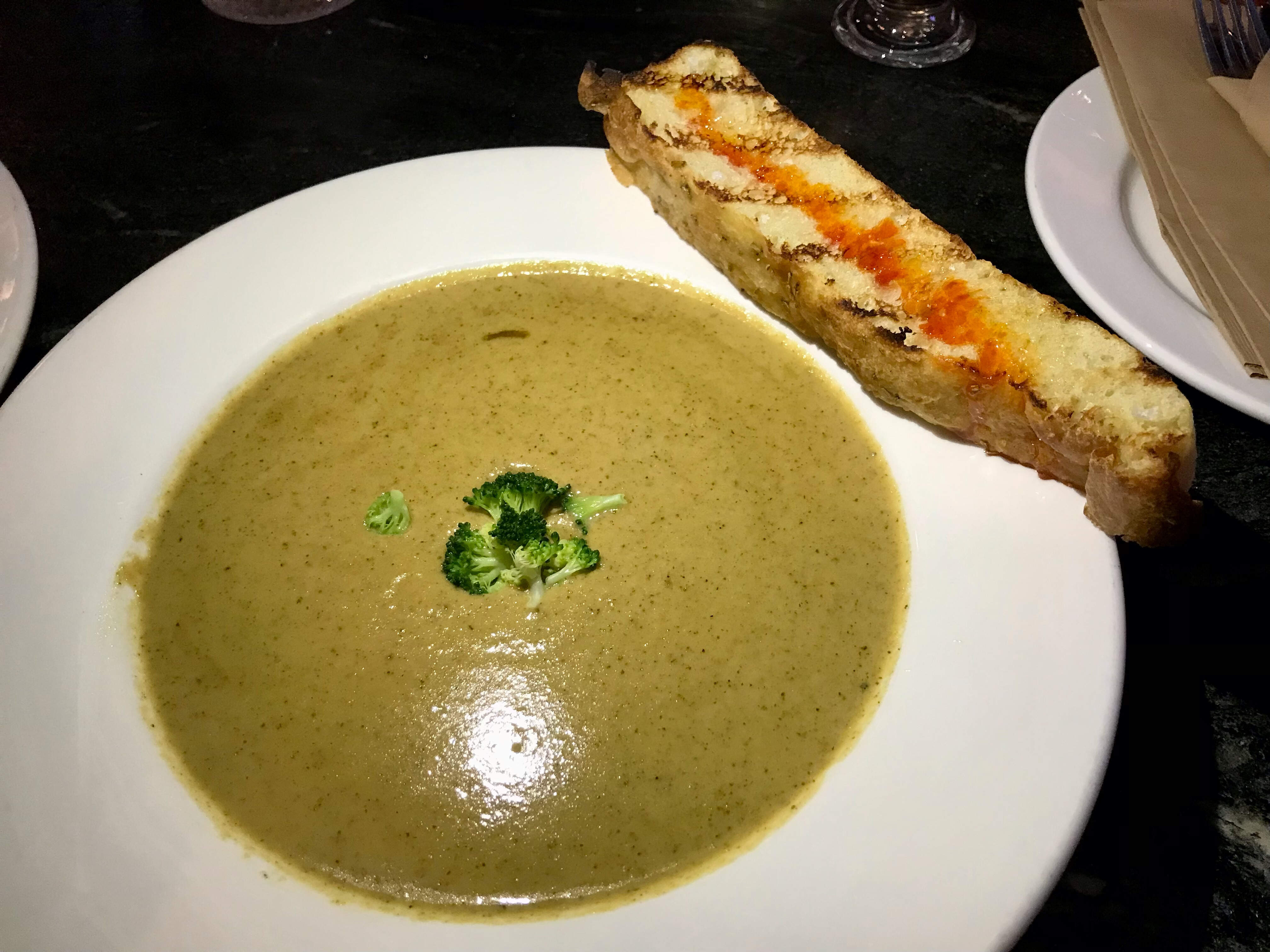 Soup of the day was broccoli cheddar - very good, with lots of broccoli flavour. We added Lakefield Bakery focaccia-like bread with paprika oil, which helped to mop up the dregs.