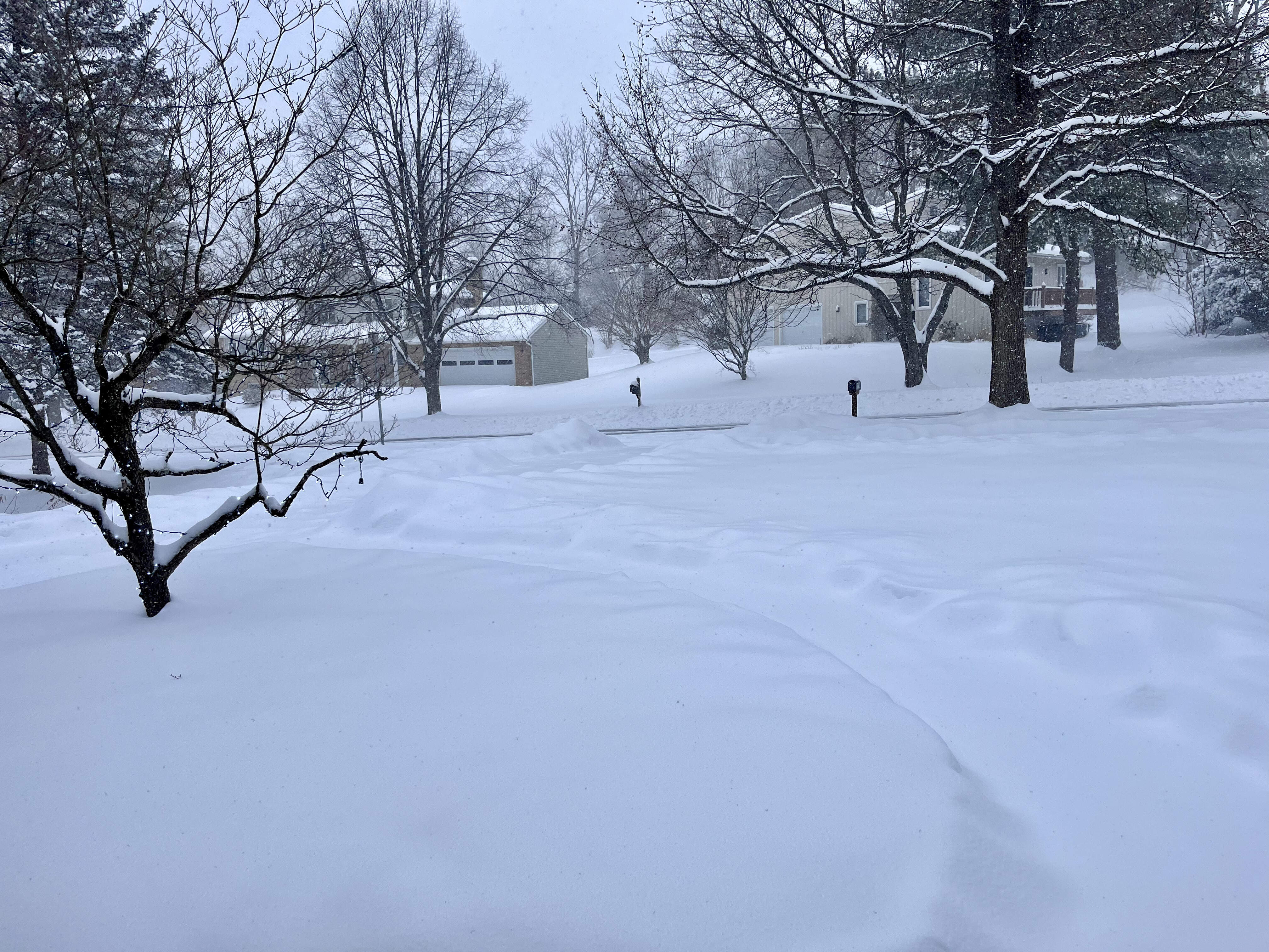 We’re at a foot and counting and it’s still coming down. (That’s a ruler buried in the snow, lol.)