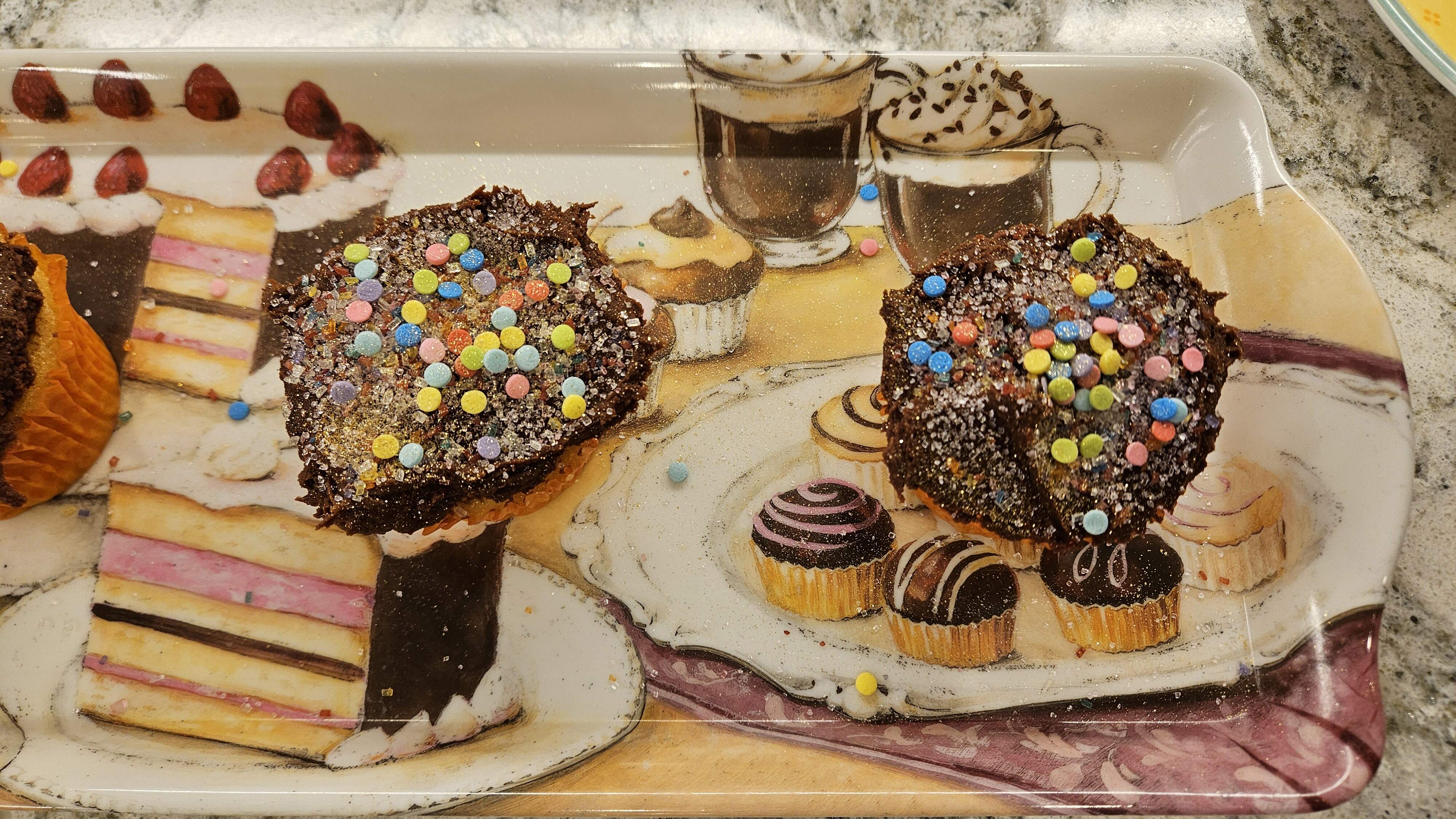 We frosted cupcakes and decorated them (cupcakes and frosting were both freezer dives).