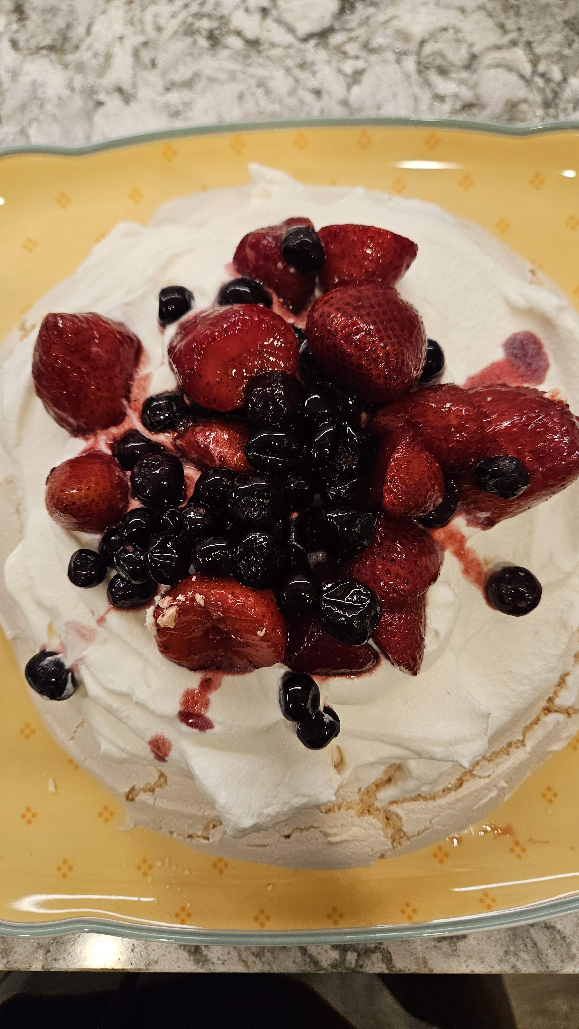 Snow day here in NY. We were going to make ice cream but ran out of egg yolks and ended up with a ton of egg whites instead. So we are making a pavlova, which, as any of you with a kid in your life knows, is a featured dessert on Bluey. Nigella’s recipe from the NYT is in the oven and we’re about to make the strawberry topping. Seems like a fitting white fluffy mountainous dessert for the mountain of snow in our yard.