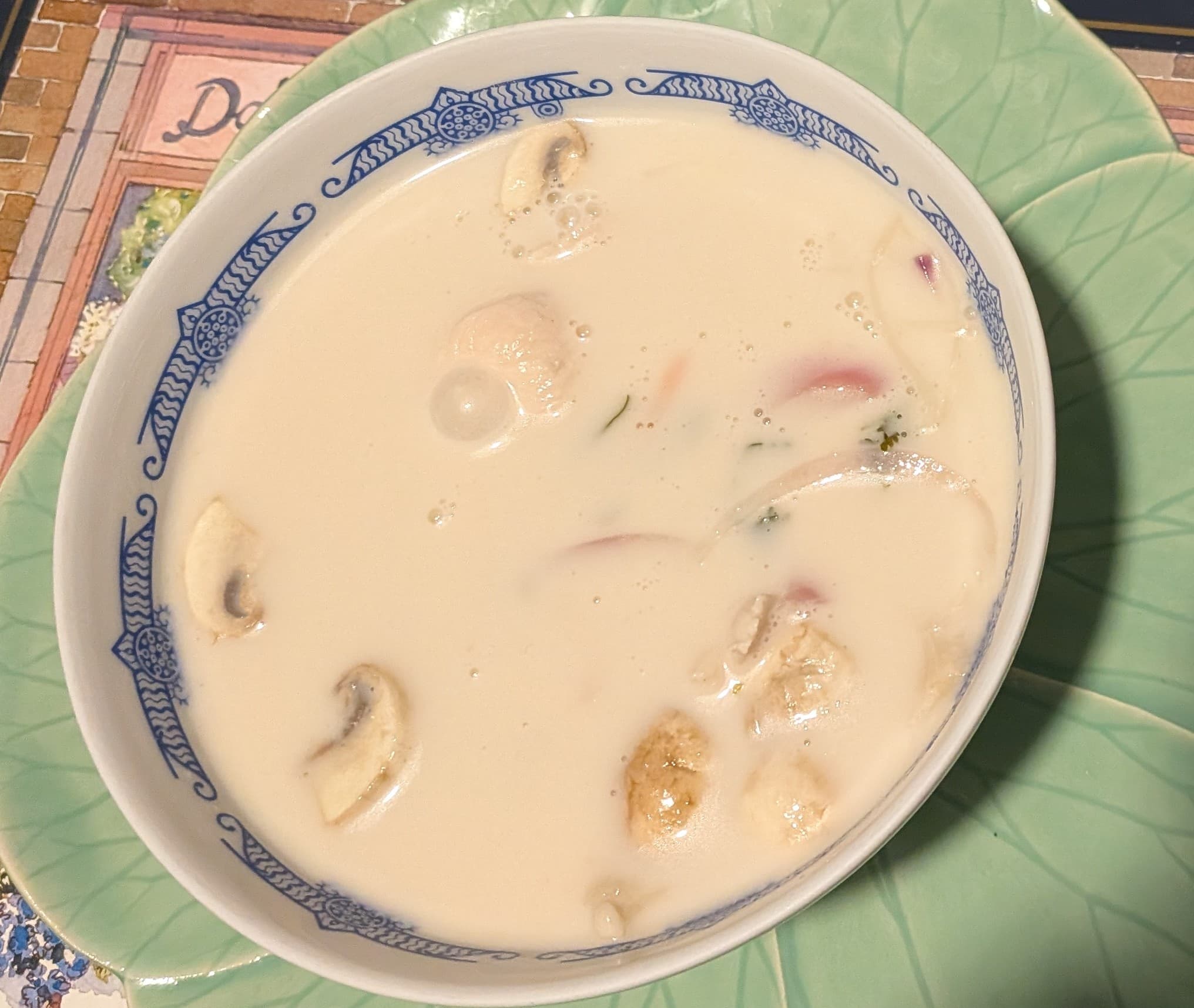 I had soup today: a can of Amy’s Chunky Vegetable, to which I added a small can(8 oz) of corn, some nutmeg, and some heavy cream. That was my lunch. I ate it all.