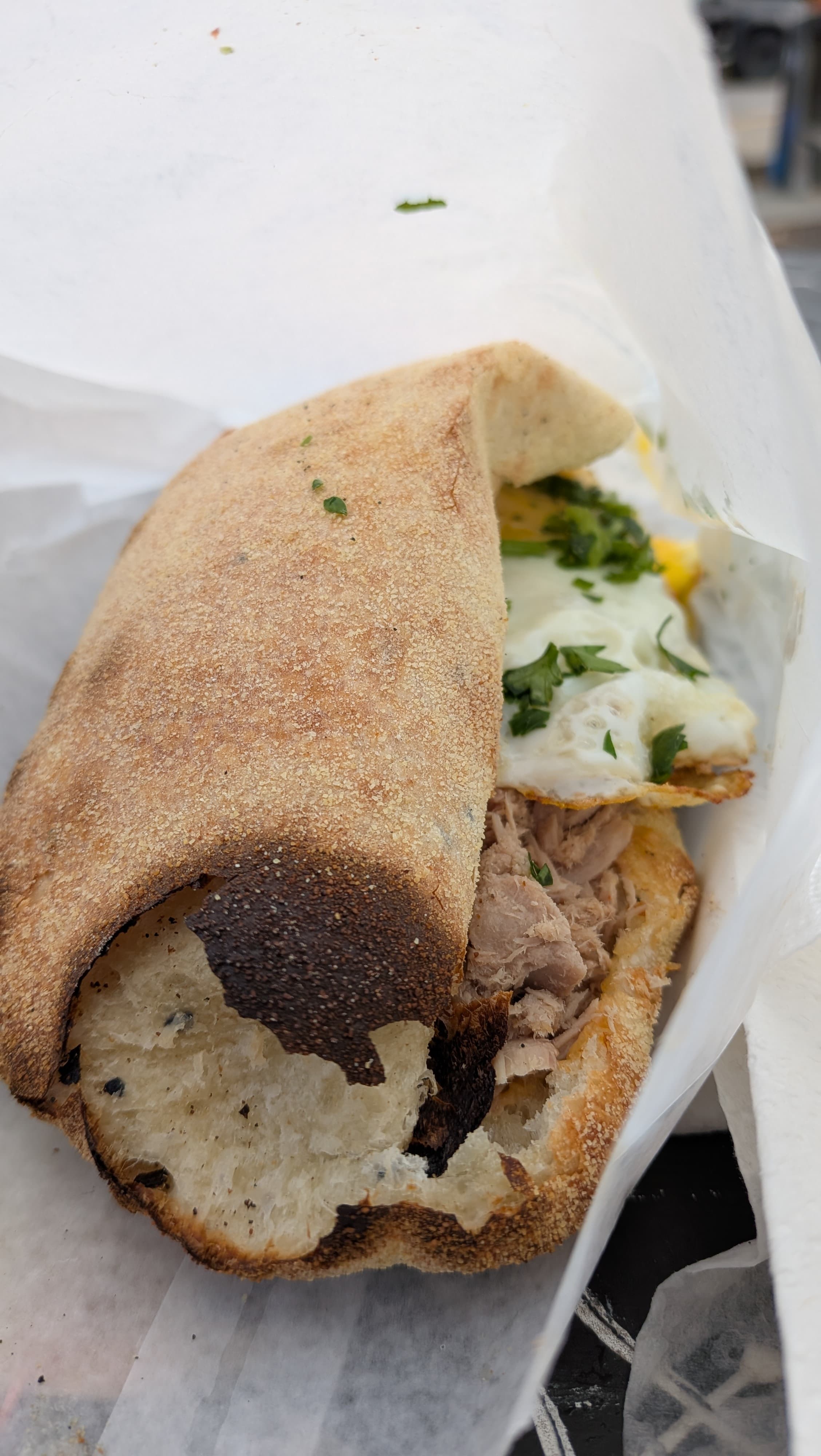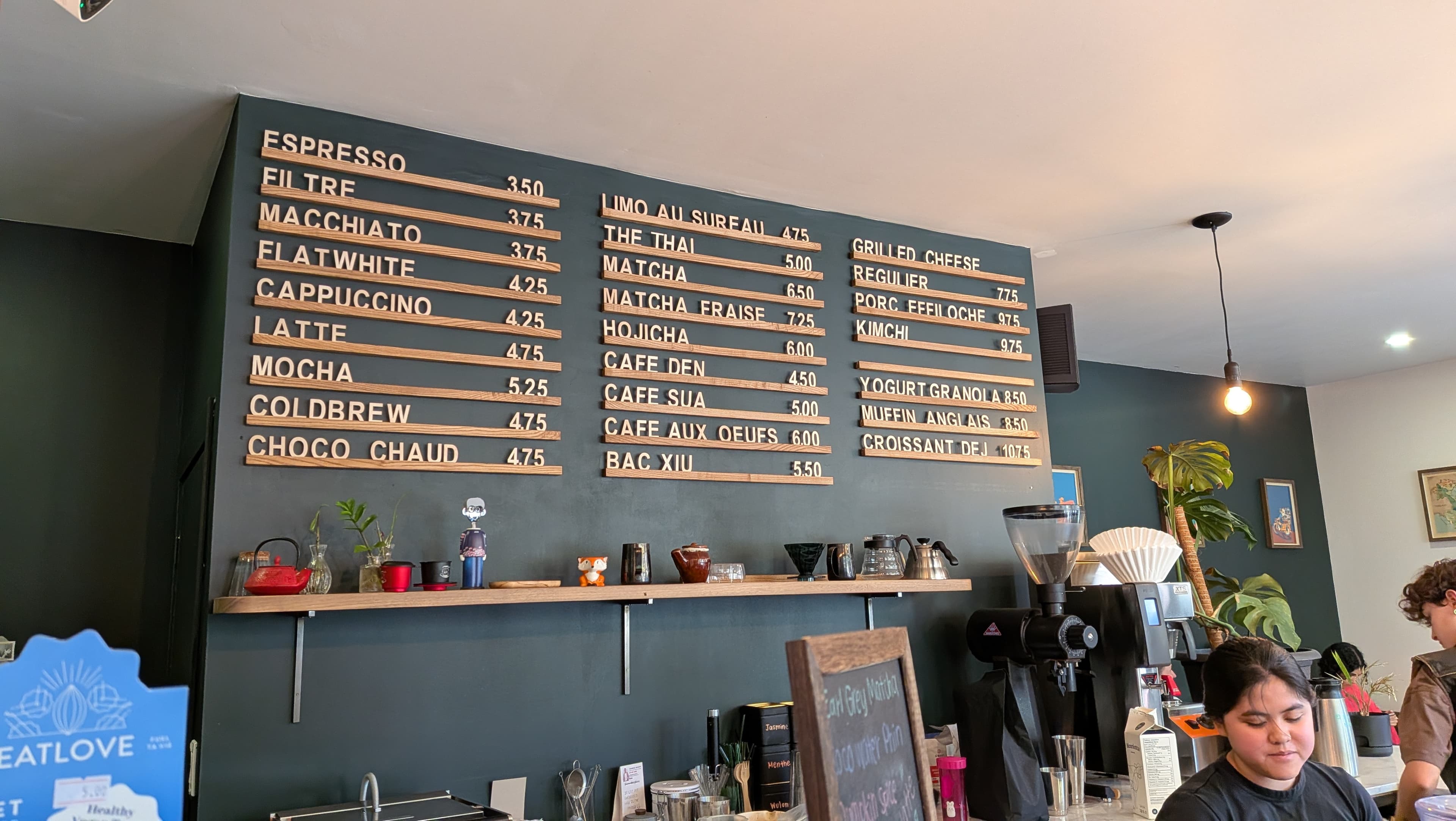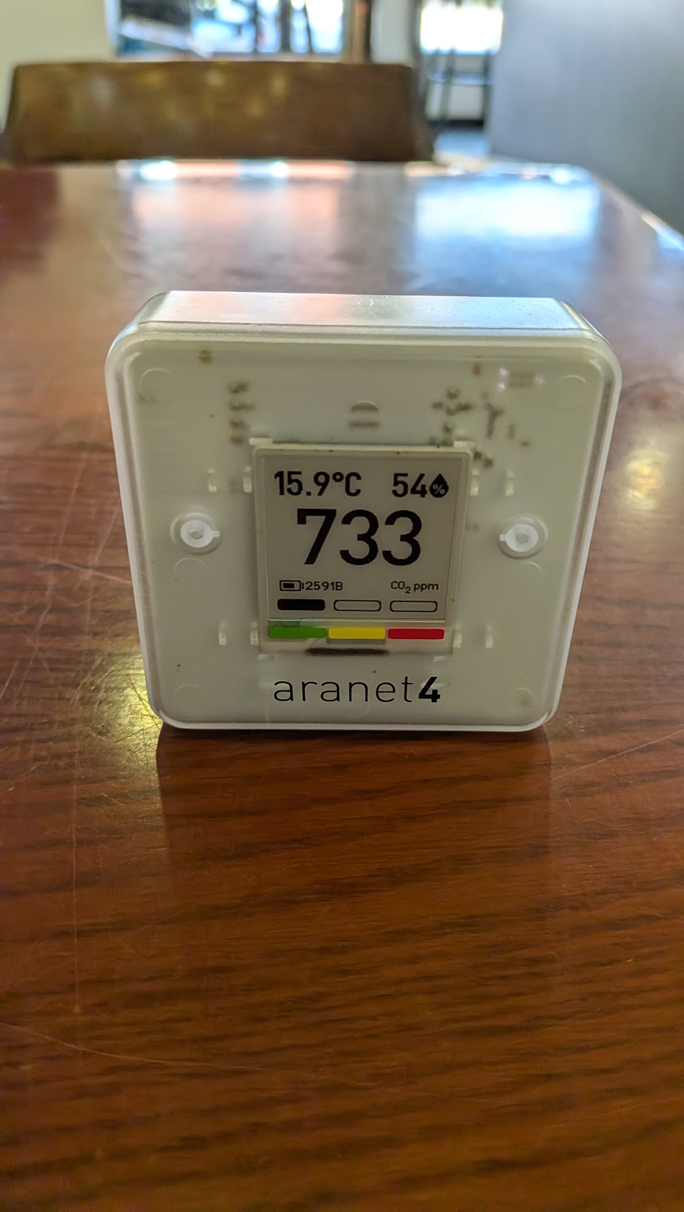 Kahwa on Rachel E was not especially spacious inside but the CO2 was nice and low for an indoors. The goal is to be under 800 indoors. CO2 is around 550 outside. Nice Tunisian Tuna sandwich.