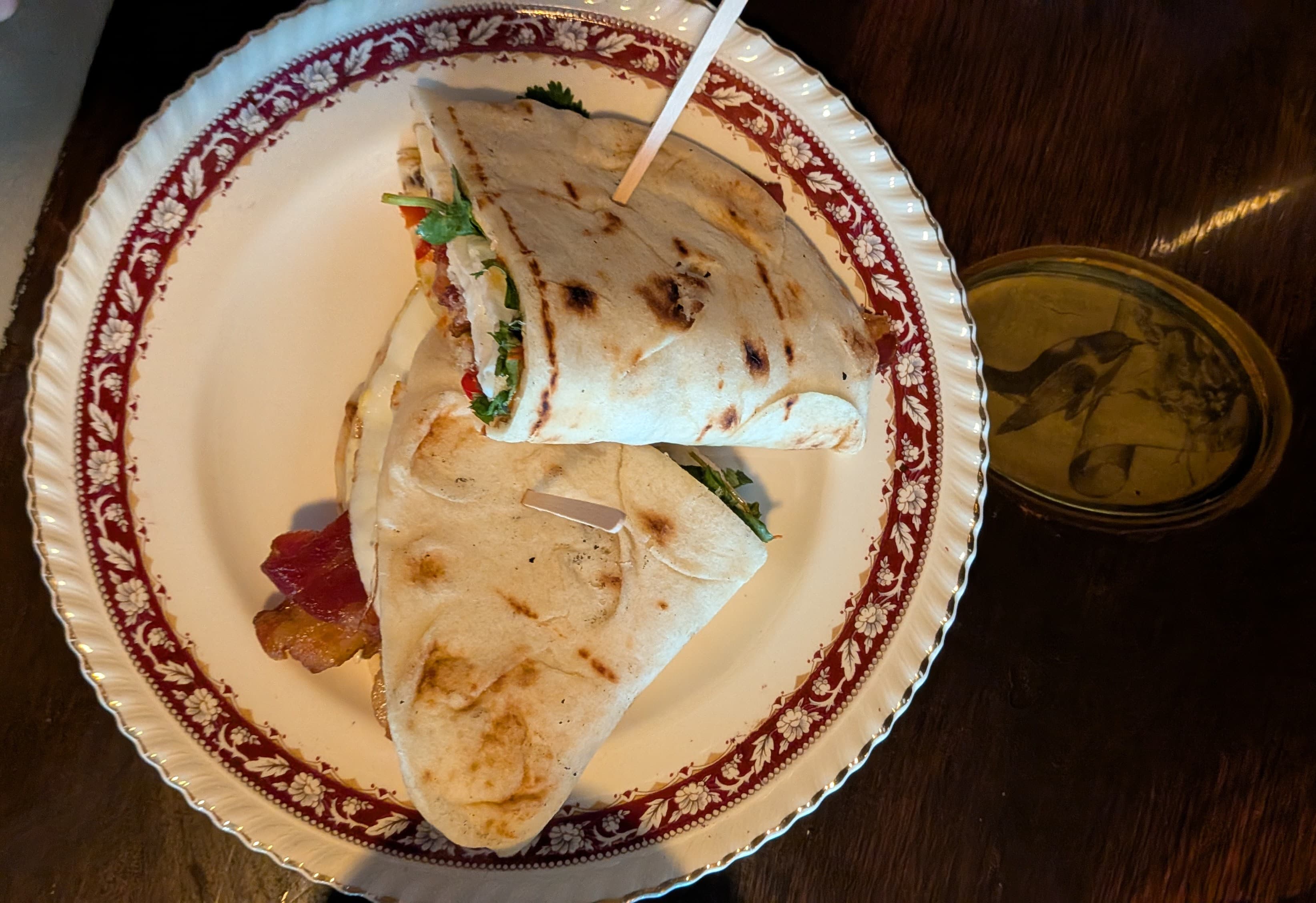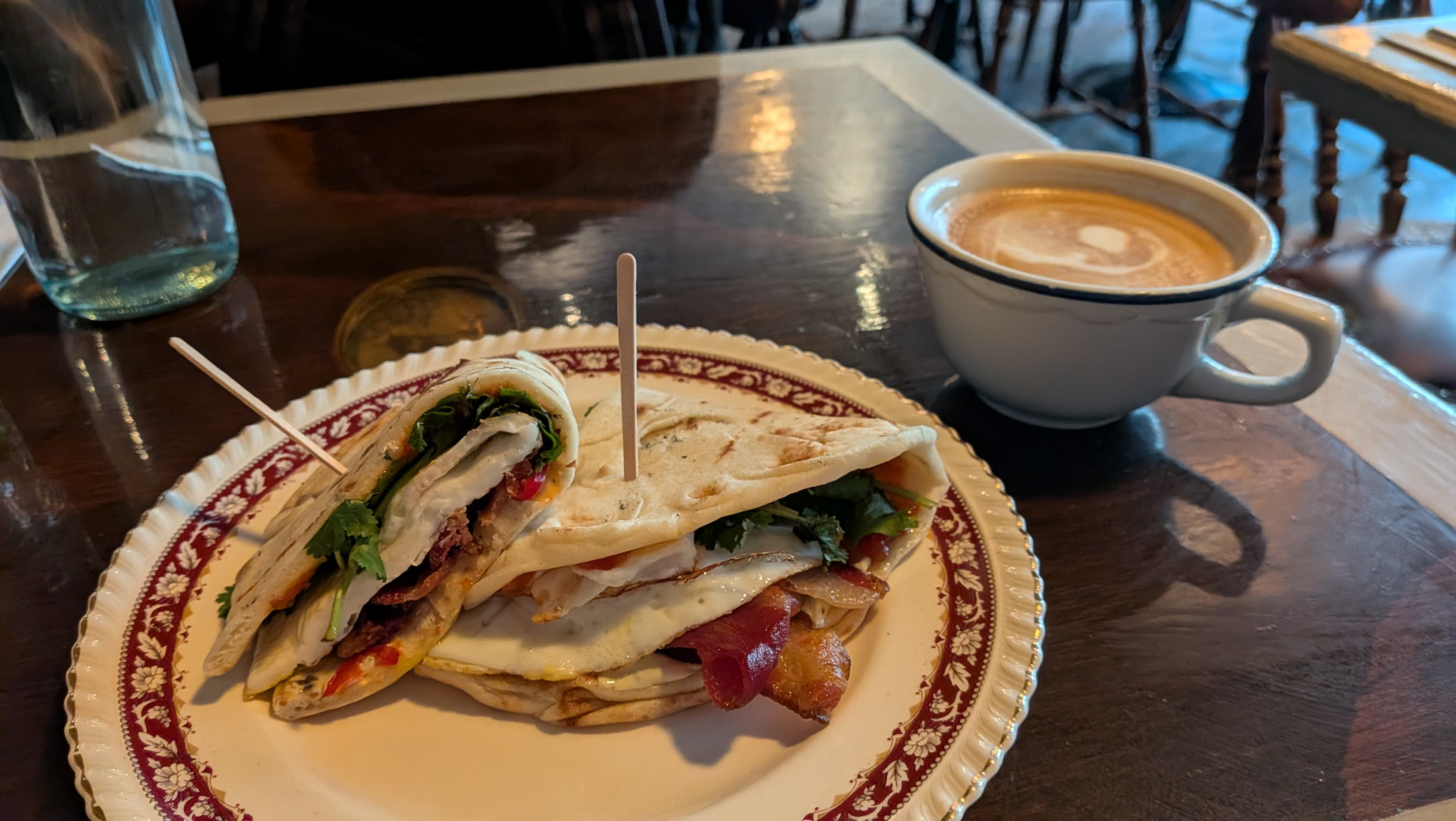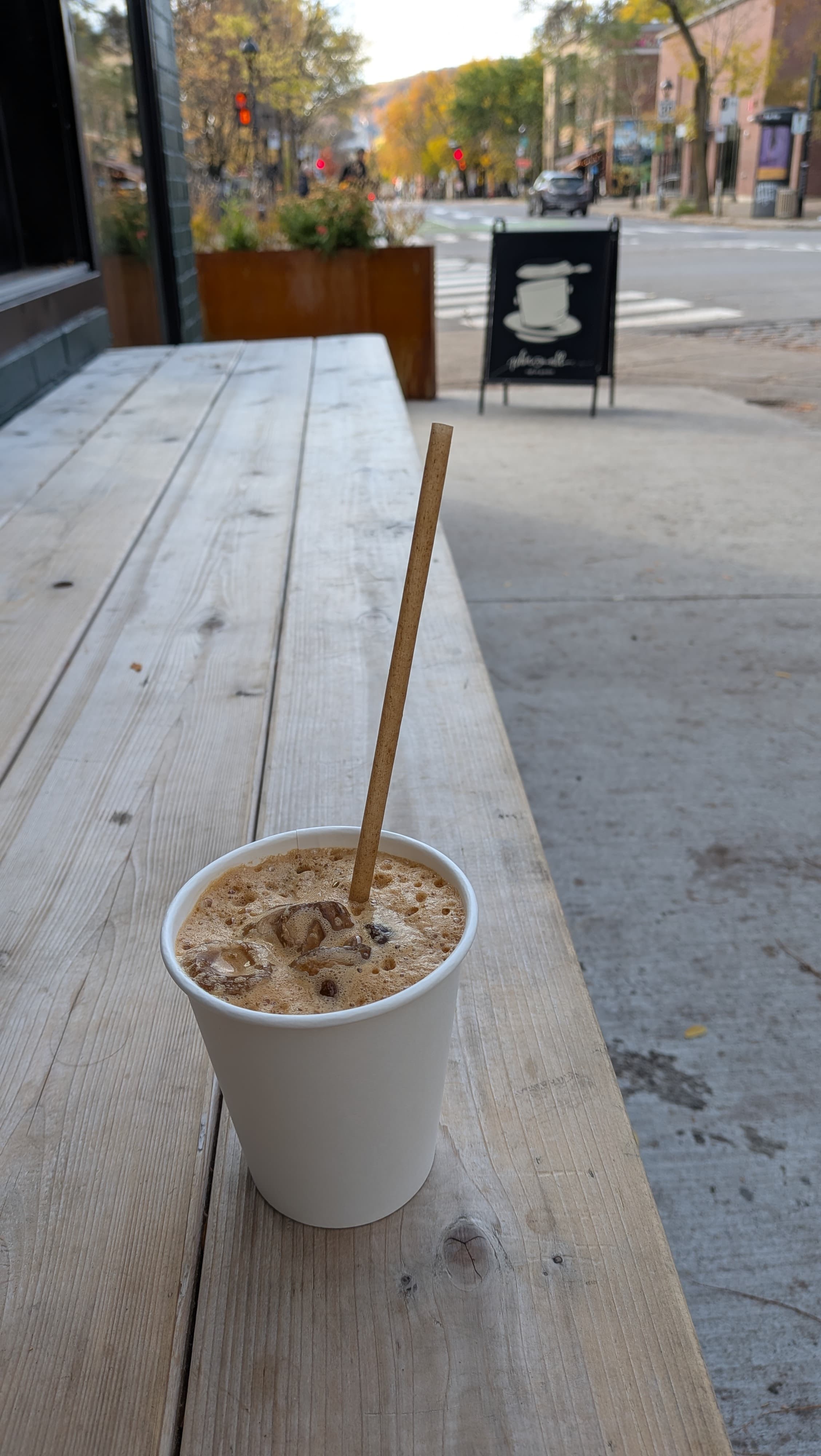 Kahwa on Rachel E was not especially spacious inside but the CO2 was nice and low for an indoors. The goal is to be under 800 indoors. CO2 is around 550 outside. Nice Tunisian Tuna sandwich.