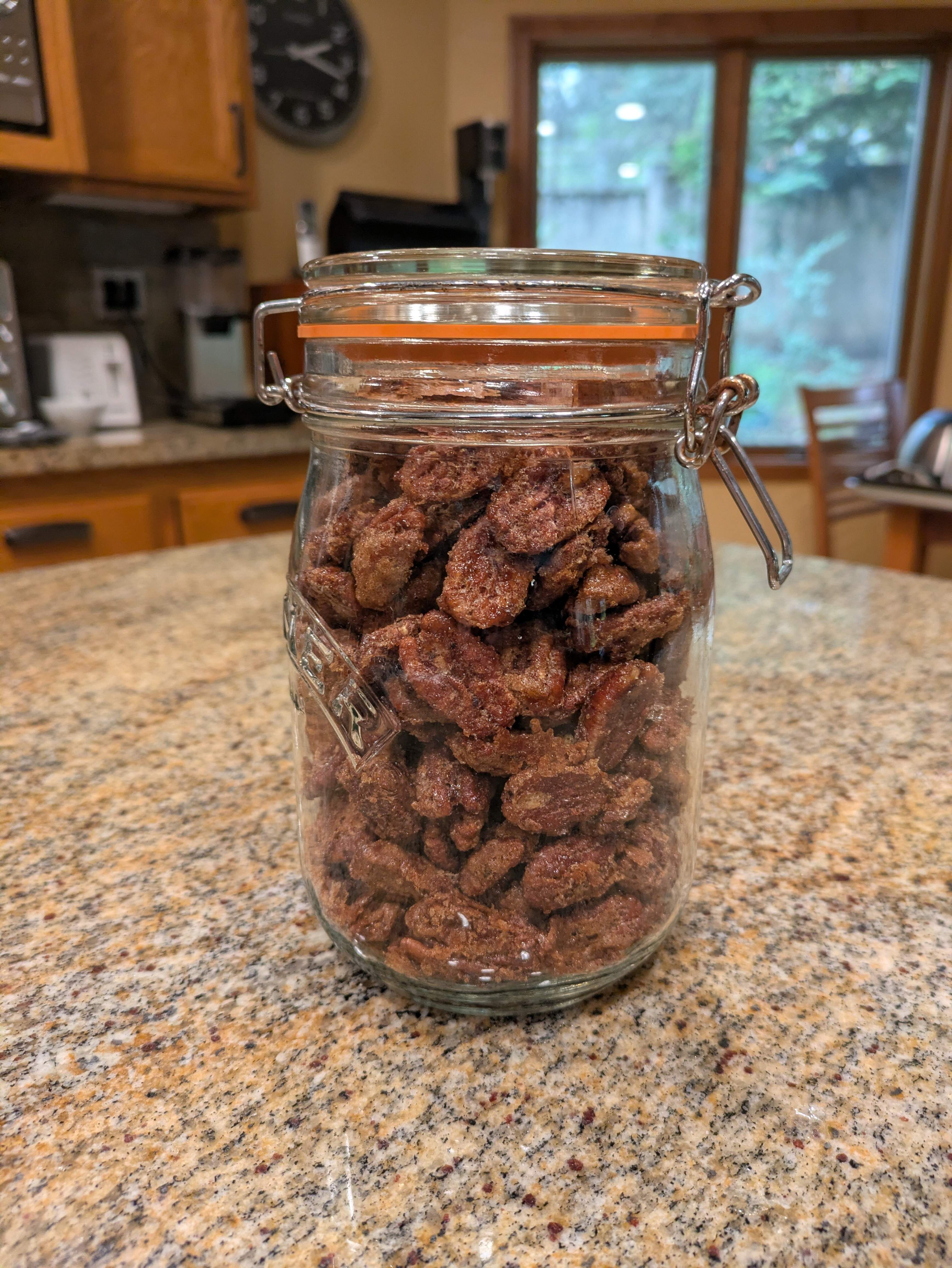 After reviewing no fewer than 15 recipes, with vastly differing amounts of sugar, I used something close to the Smitten Kitchen formula for this batch, but with a nod to the Saveur spices. Espelette for warmth; favorite batch I in my memory.