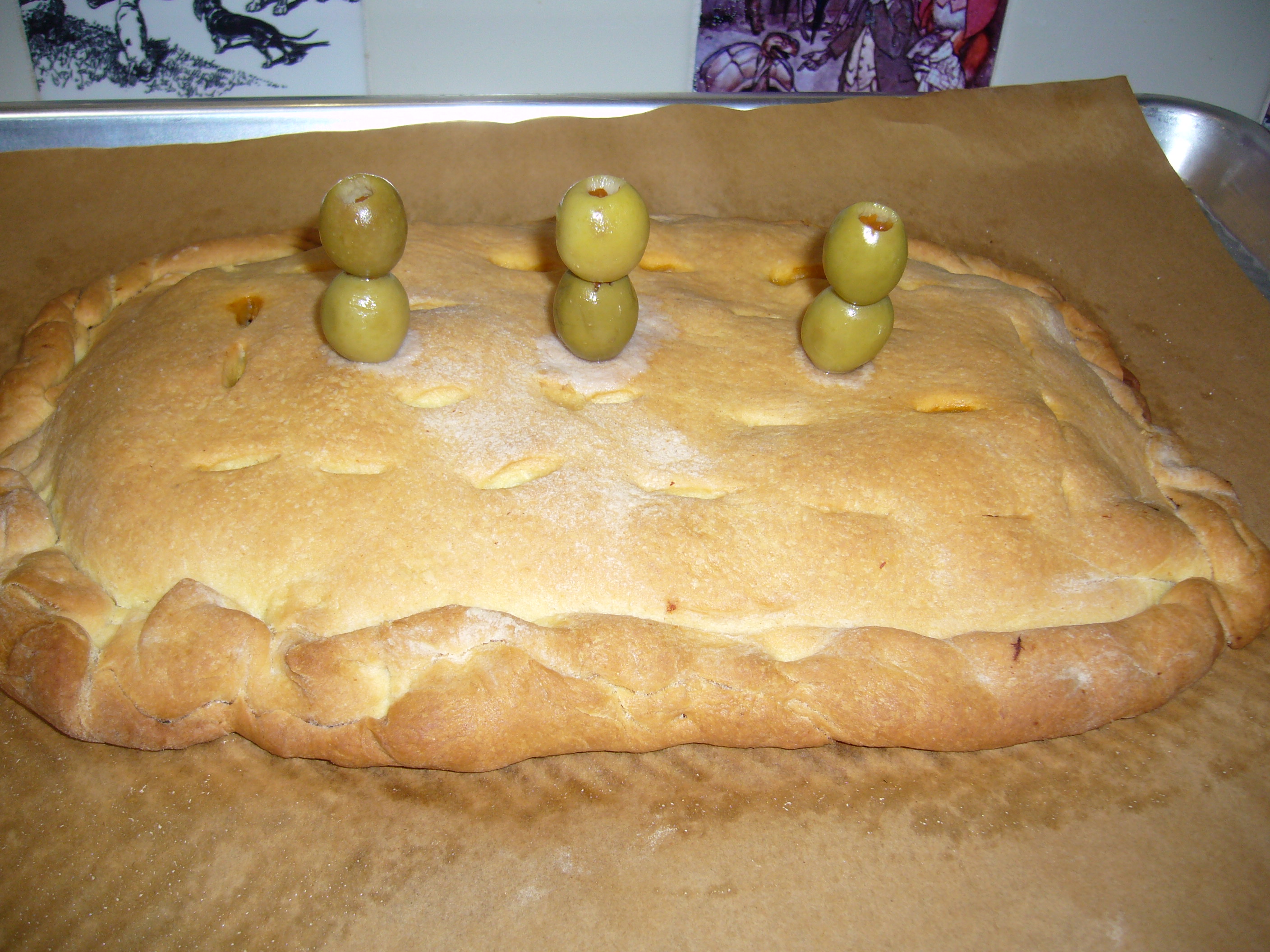 JOSE A. filled puff pastry packets with this tuna and olive, egg and onion mixture. I used his recipe for the filling, but mine are enclosed in an olive oil pastry crust from a long ago COTM Chowhound book called “The New Spanish Table”.