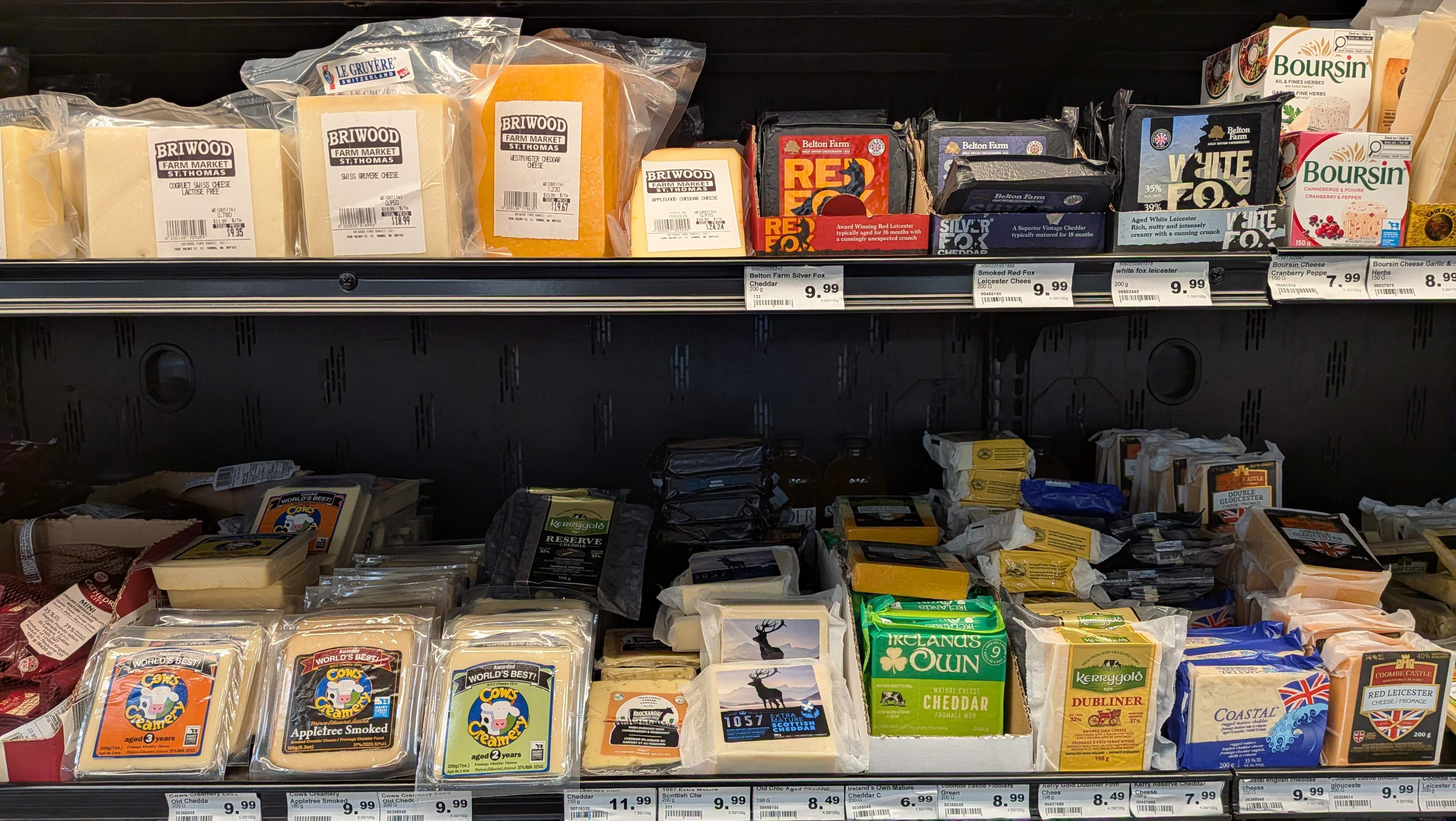 Pretty good cheddar selection at tiny Briwood Market in St Thomas, at better prices than one finds in LdnOnt.